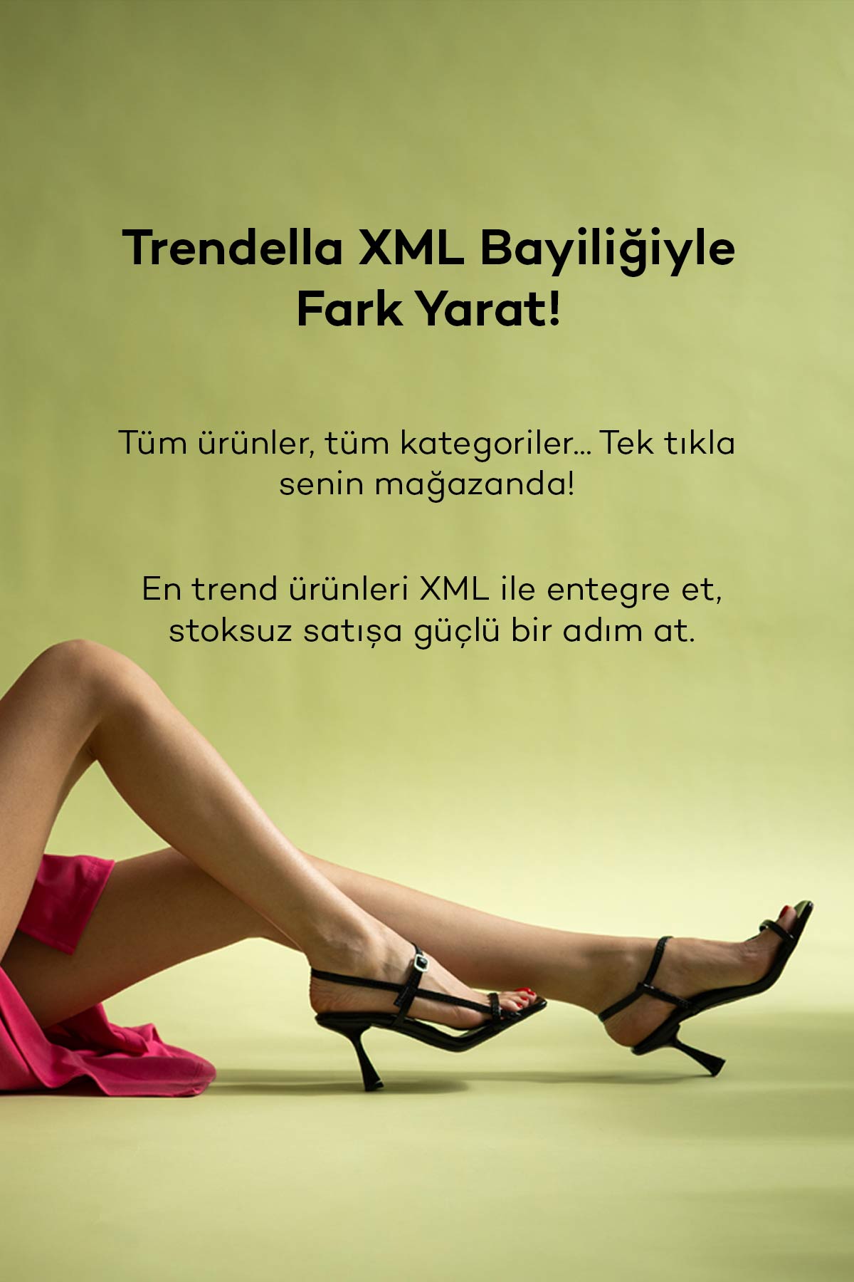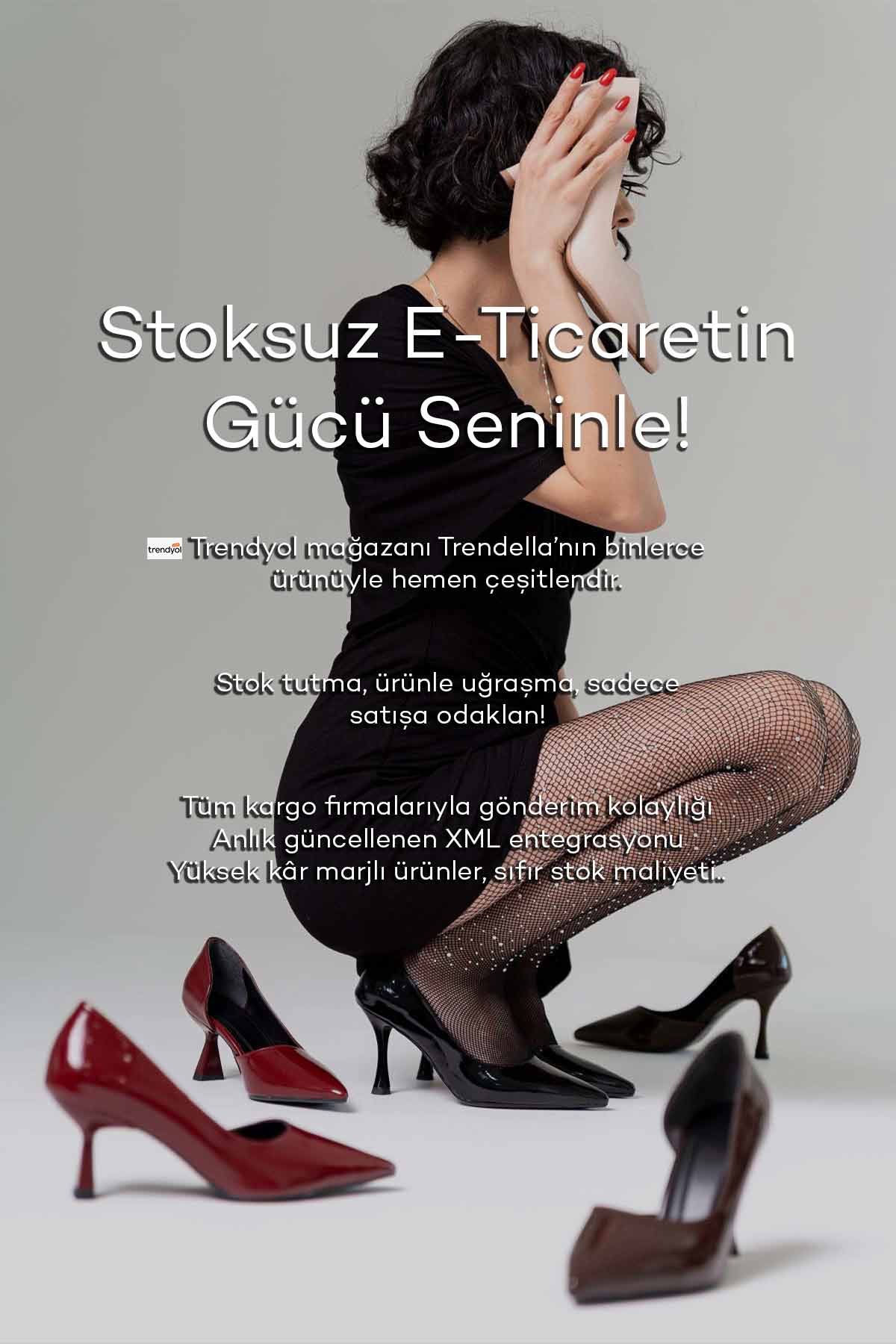 Kadın ayakkabı sektöründe fark yaratmak, stok maliyetine girmeden e-ticaret yapmak isteyen girişimciler için Trendella XML bayiliği, yeni nesil satış modelidir. XML bayilik sistemimiz sayesinde binlerce güncel ürün, senkronize stoklarla sitene otomatik olarak aktarılır. Üstelik hiçbir depo yatırımı yapmadan satış yapar, sadece kazanca odaklanırsın.
