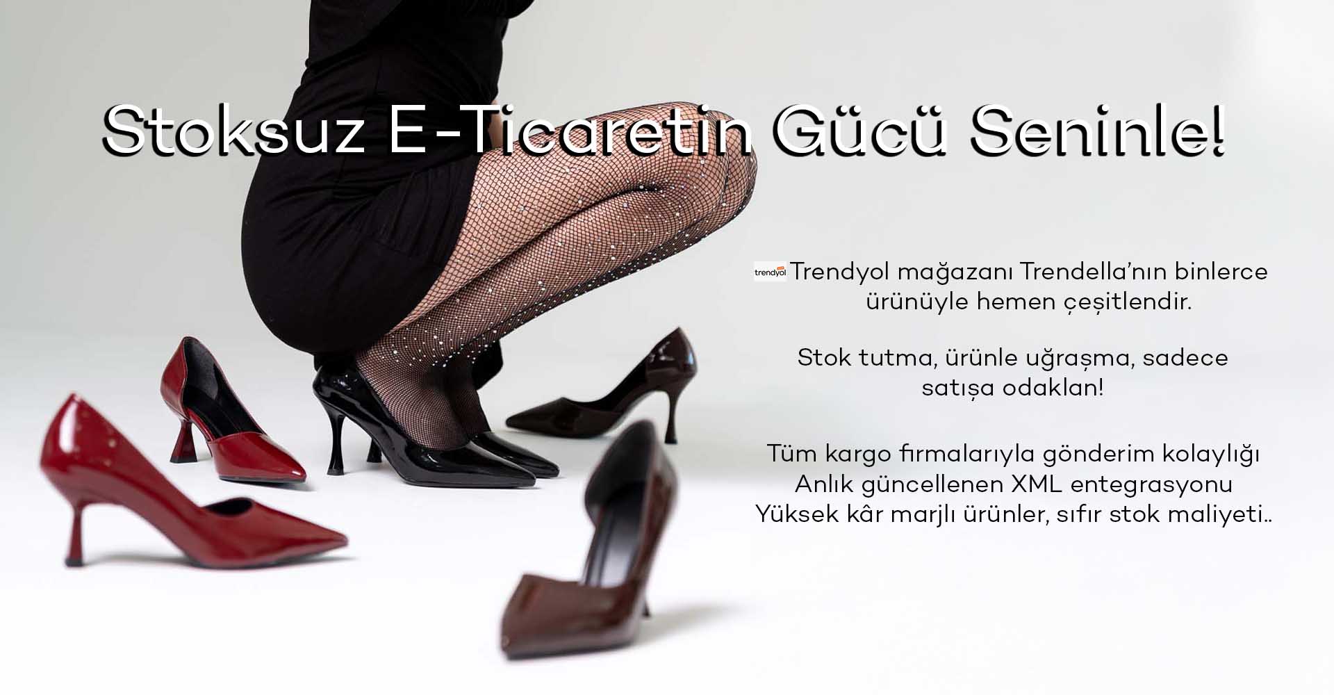 Bugün yüzlerce girişimci kadın ayakkabı XML bayiliği ile e-ticarete başladı. Sen de stoksuz e-ticaret ile risk almadan, yatırımını sıfırlayarak satışa başlamak istiyorsan doğru yerdesin.