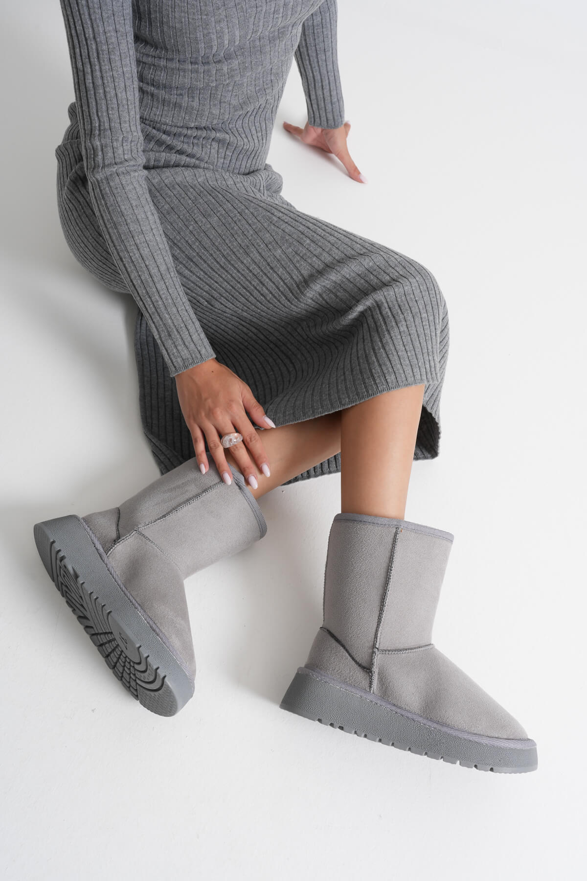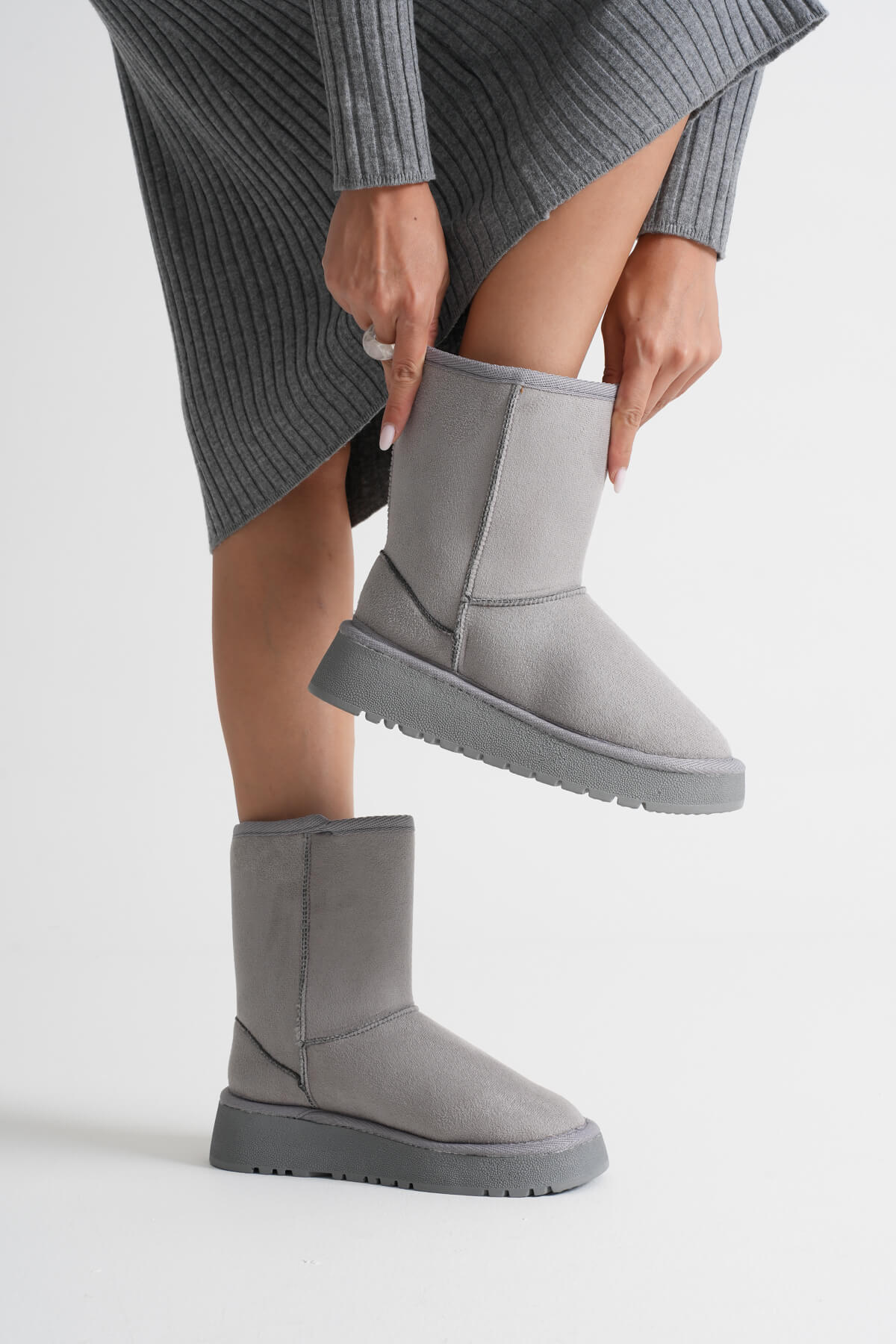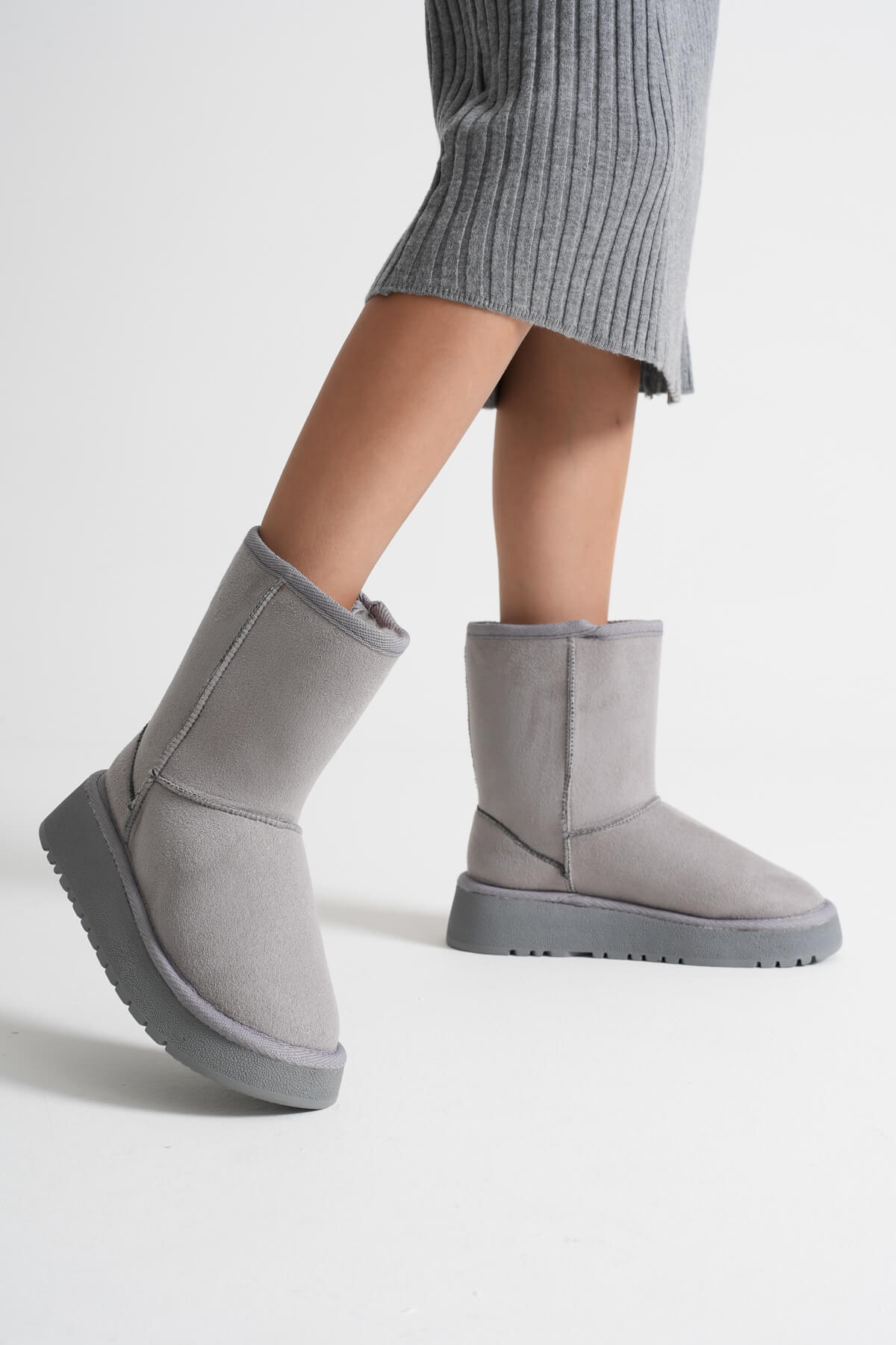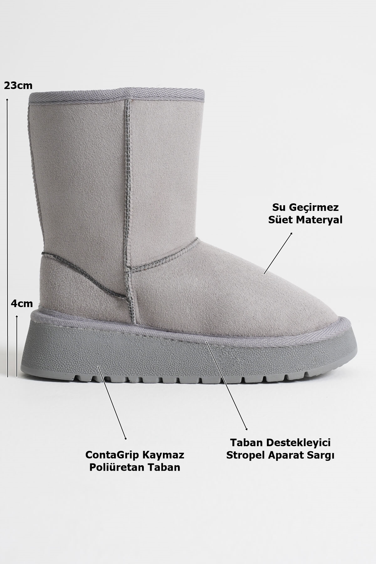 Anisa Kadın Gri Kışlık Kürklü Bot