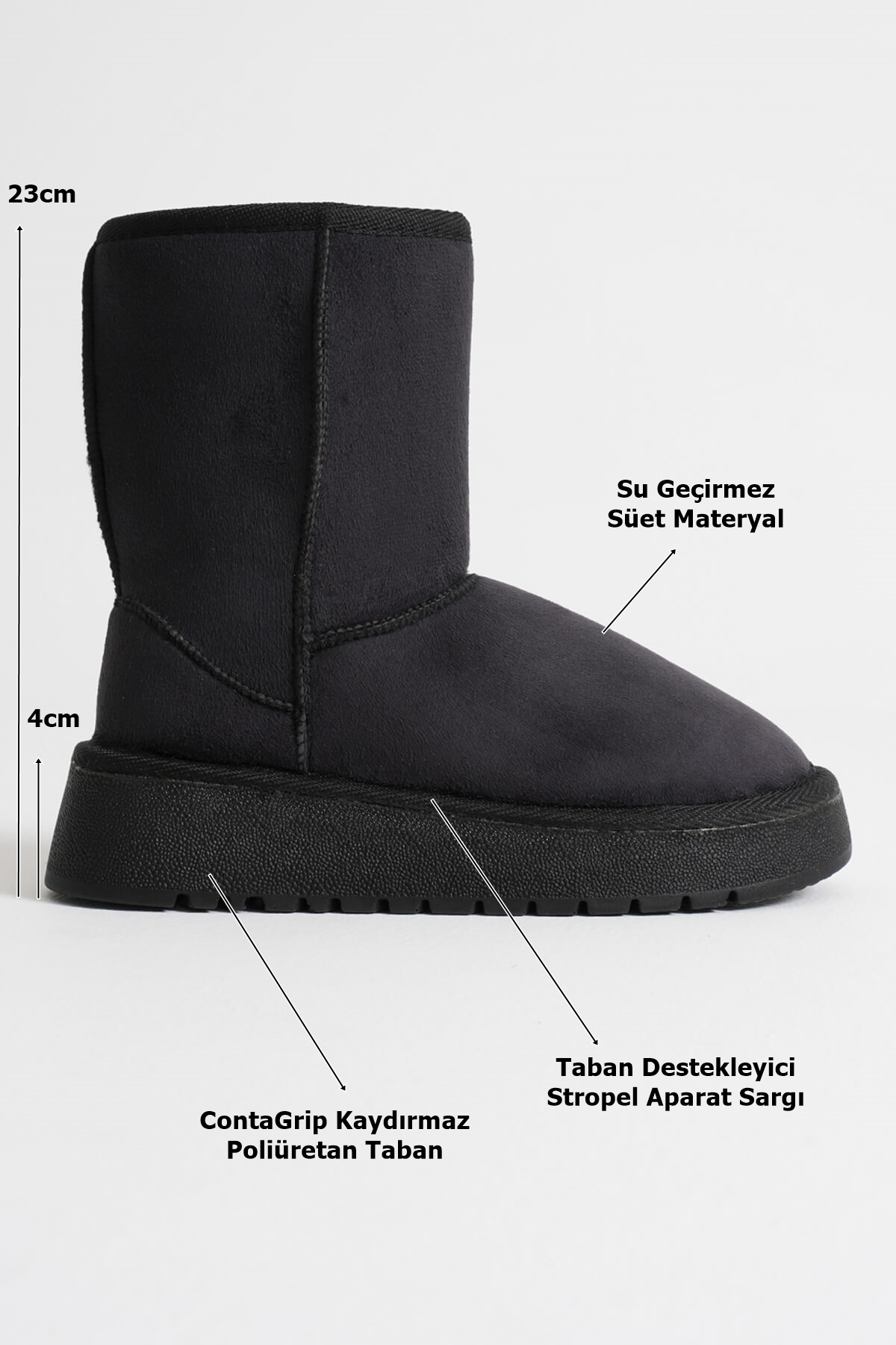 Anisa Kadın Siyah Kışlık Kürklü Bot