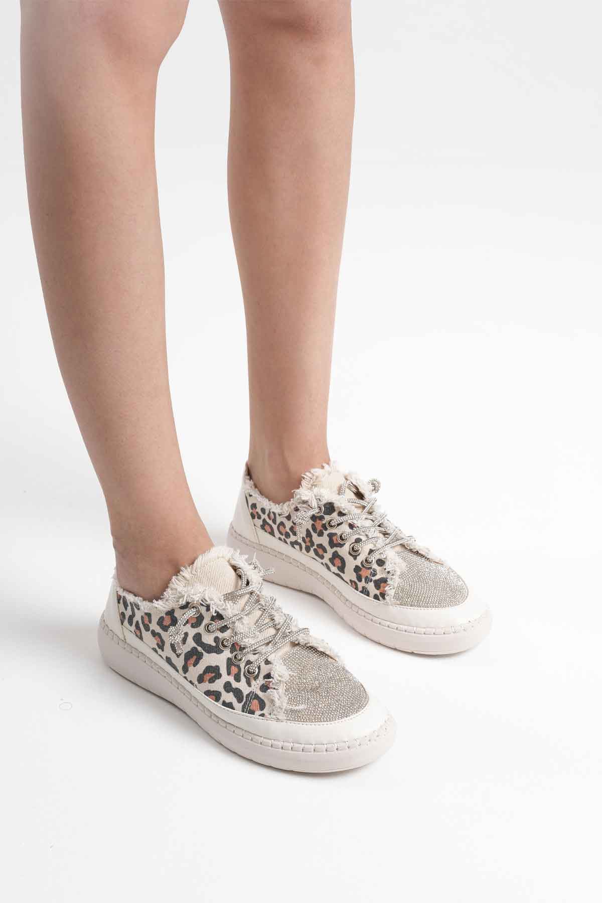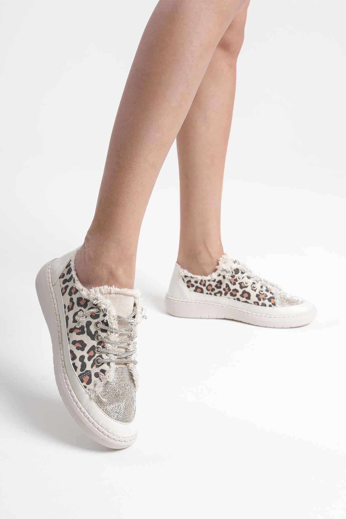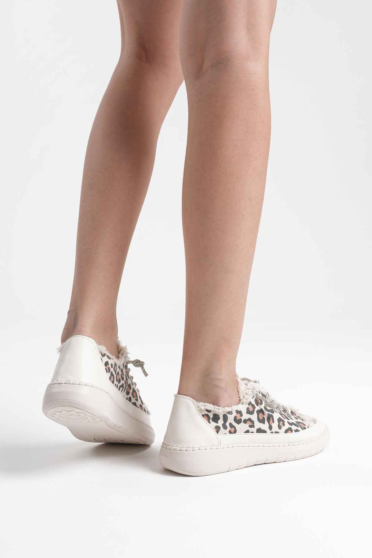 Vega Leopar Detaylı Beyaz Kadın Spor Ayakkabı