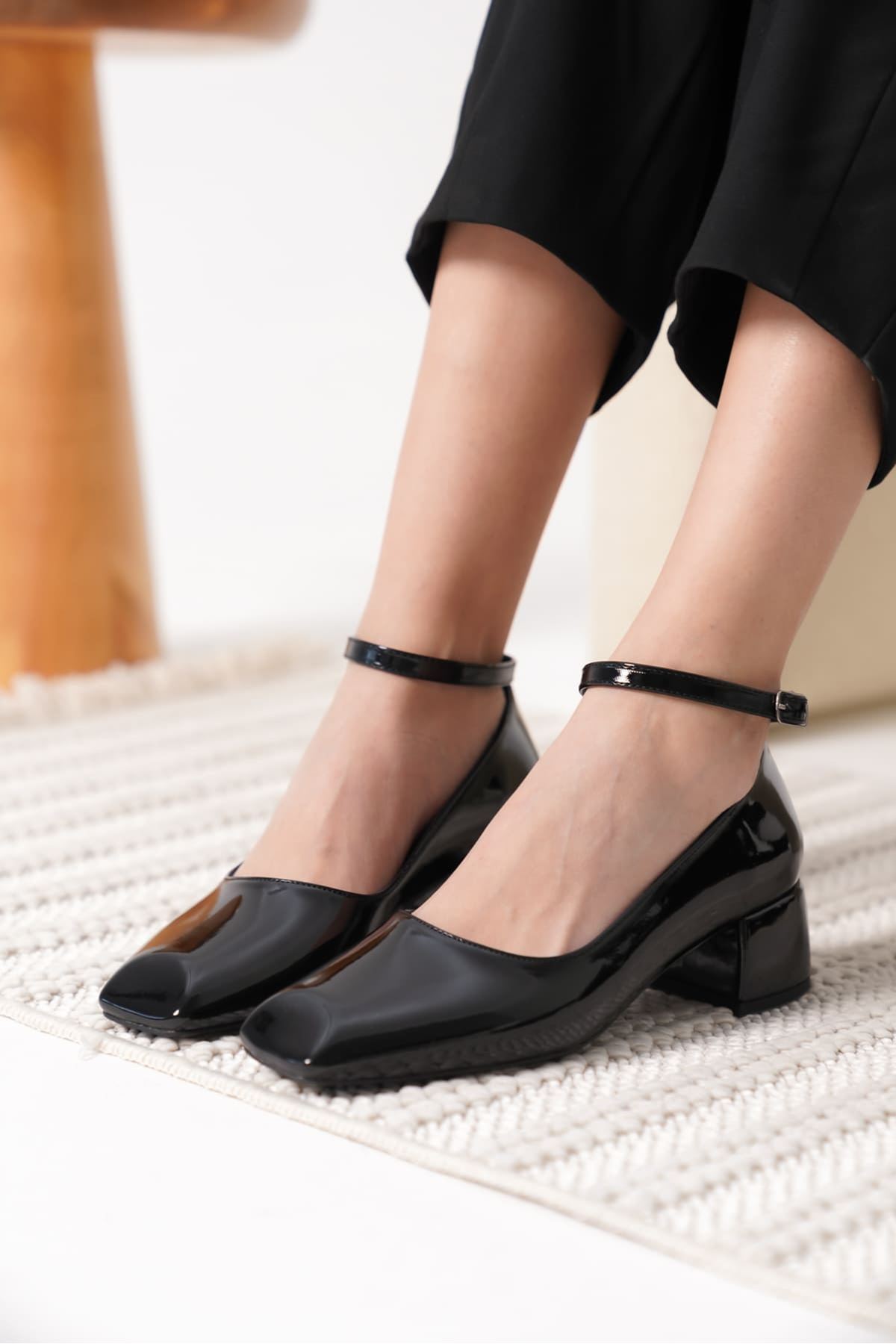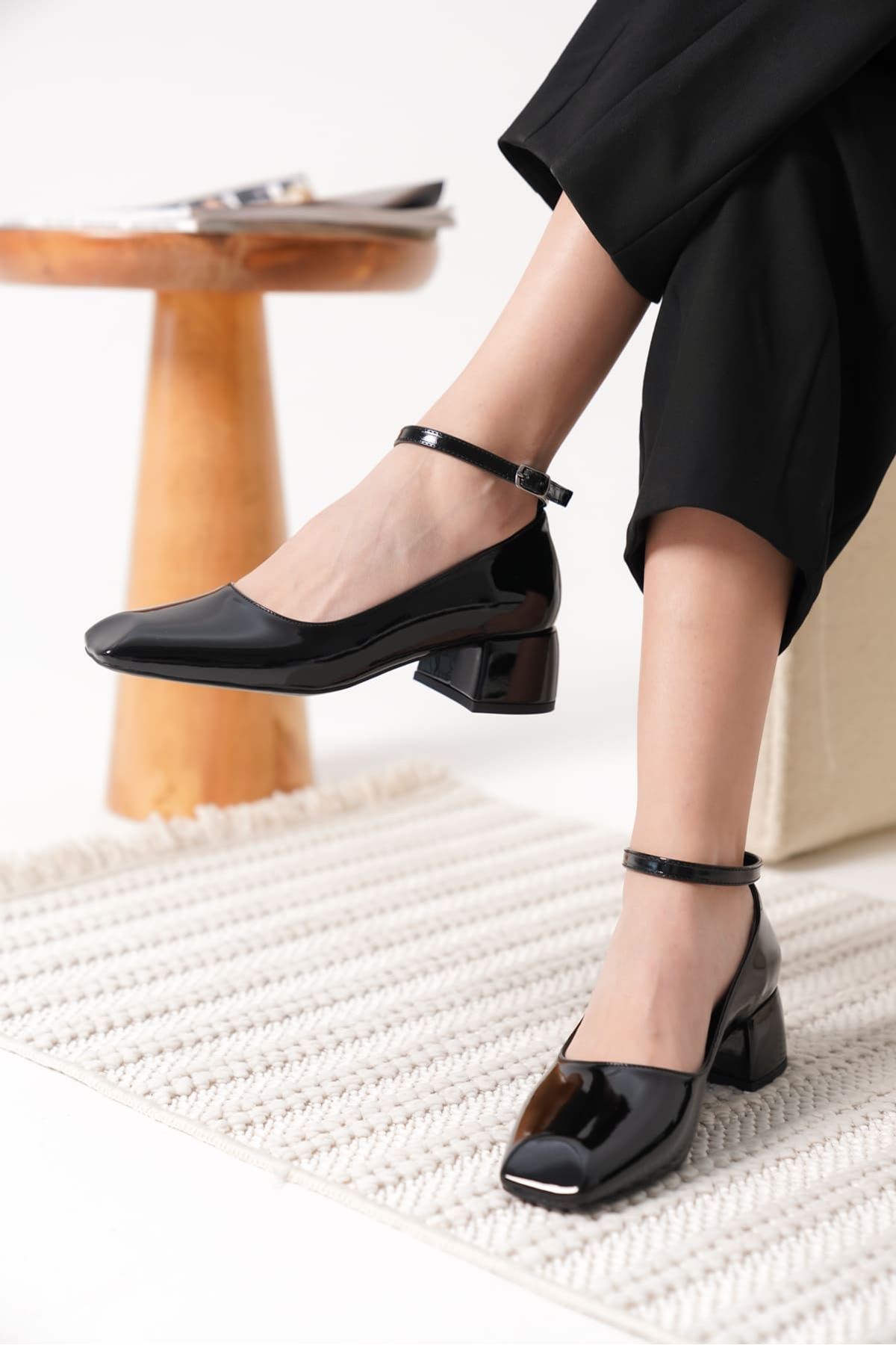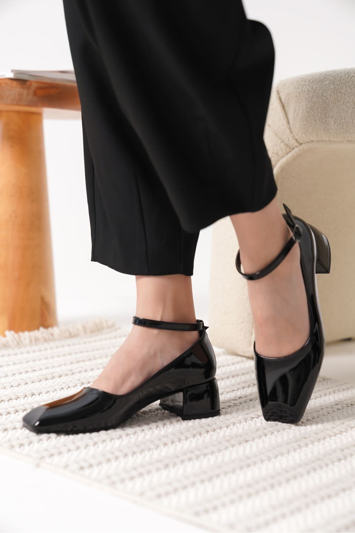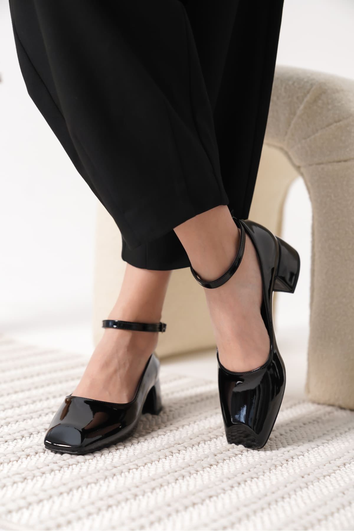 Arilla Siyah Rugan Kadın Topuklu Ayakkabı