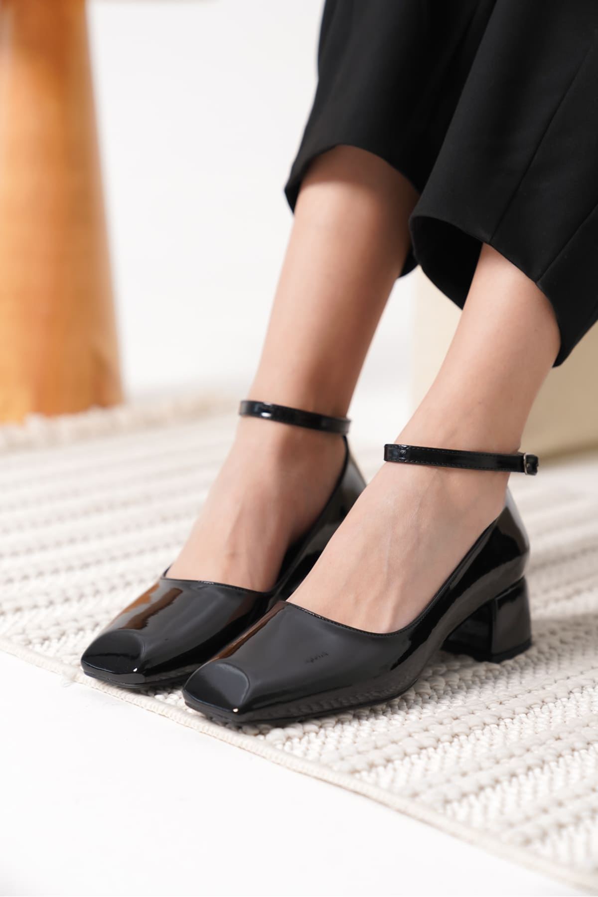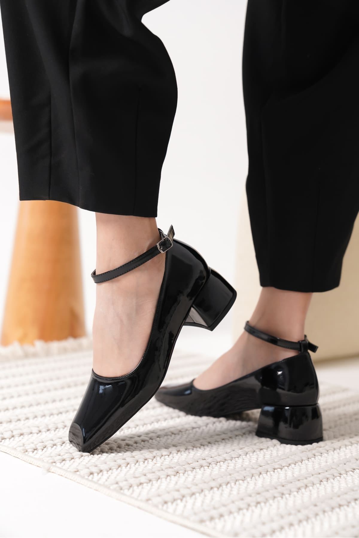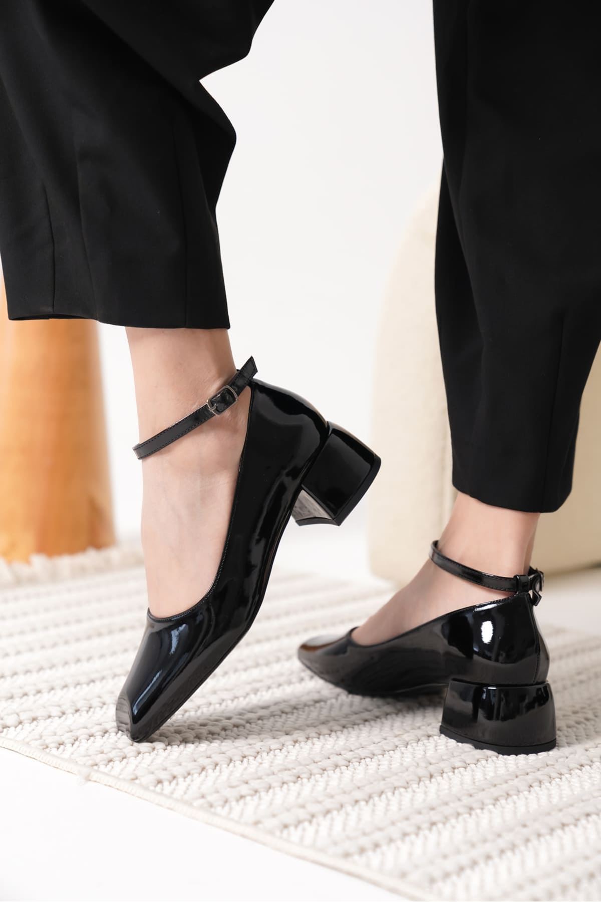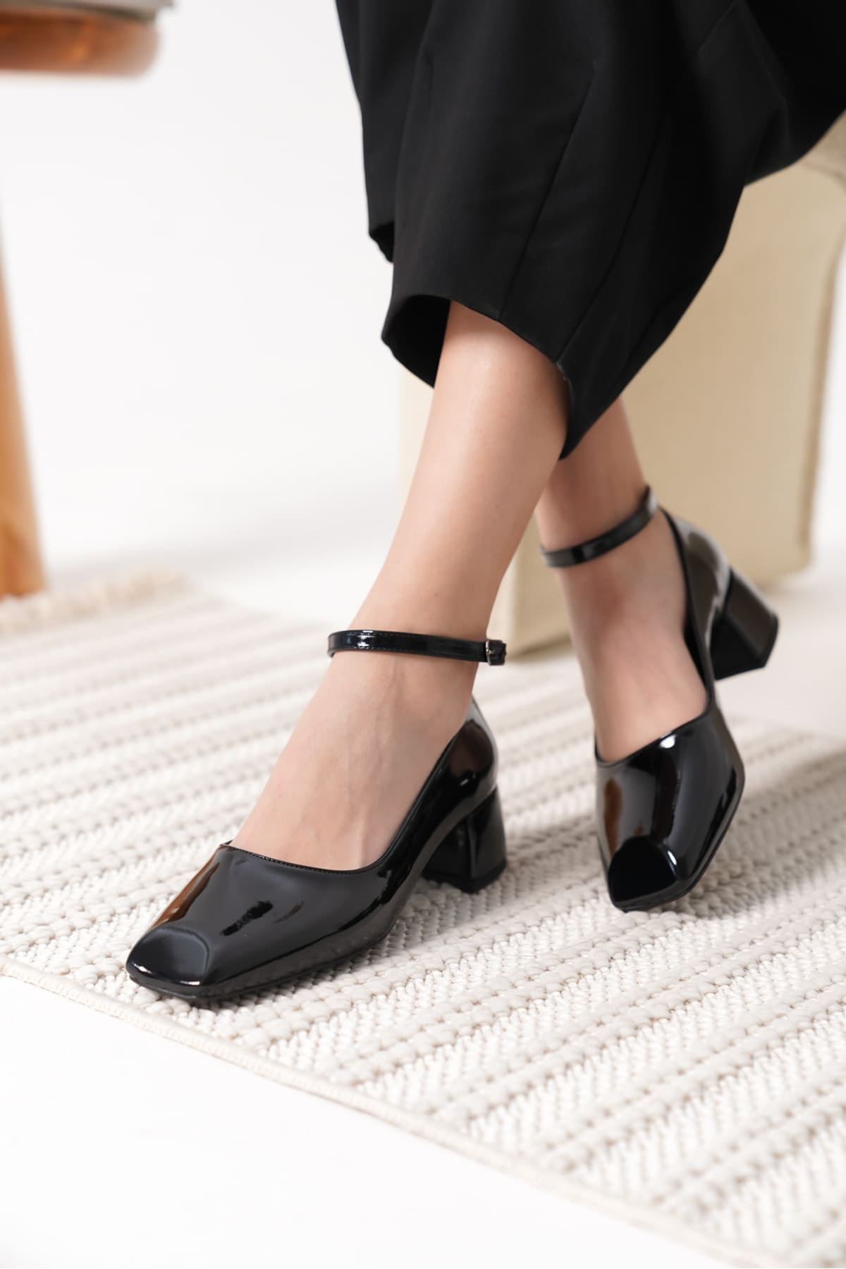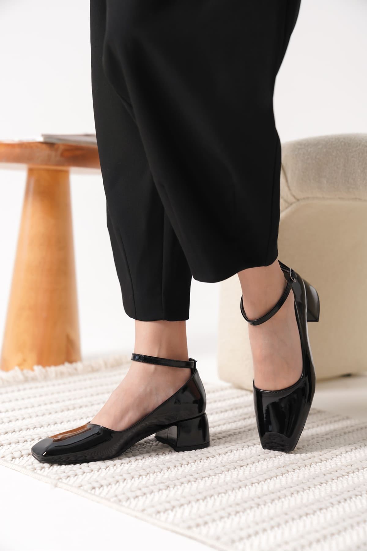 Arilla Siyah Rugan Kadın Topuklu Ayakkabı