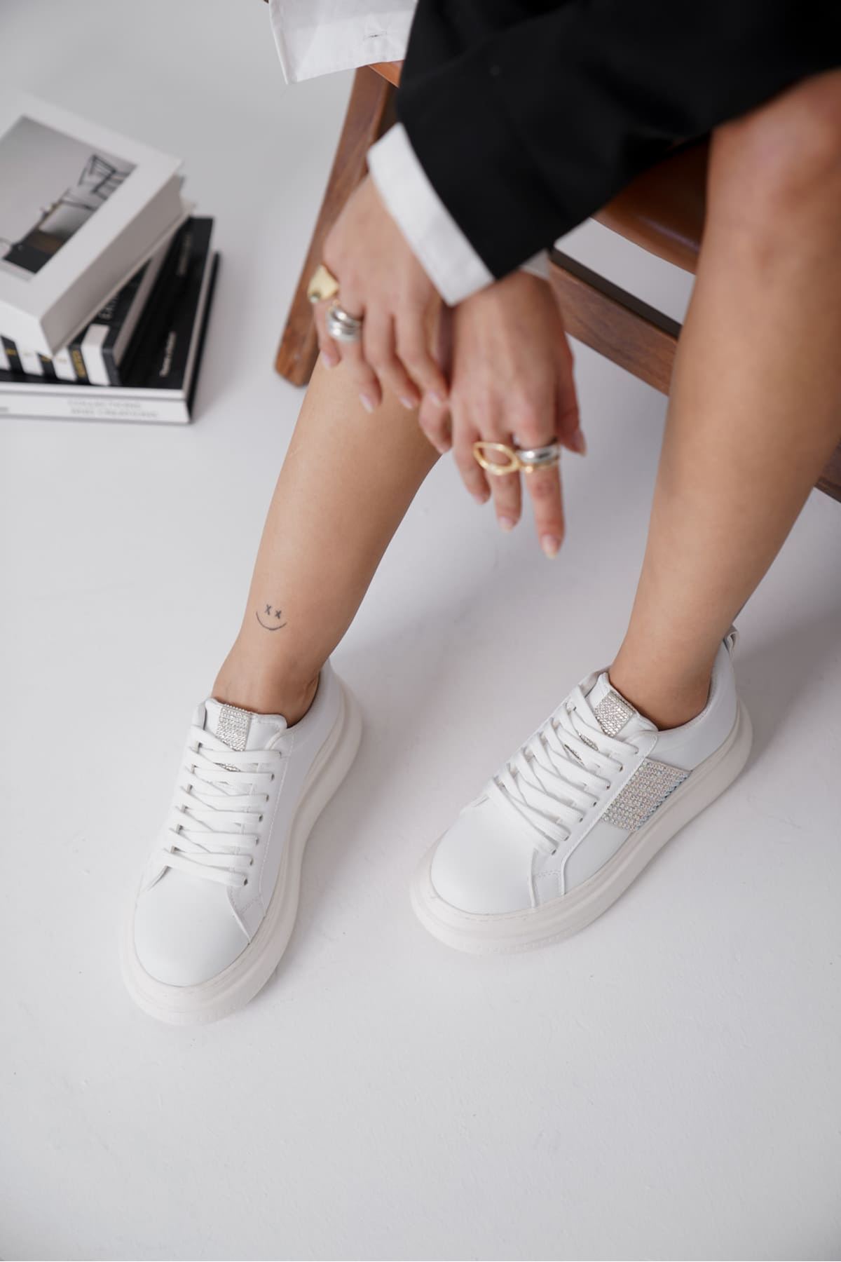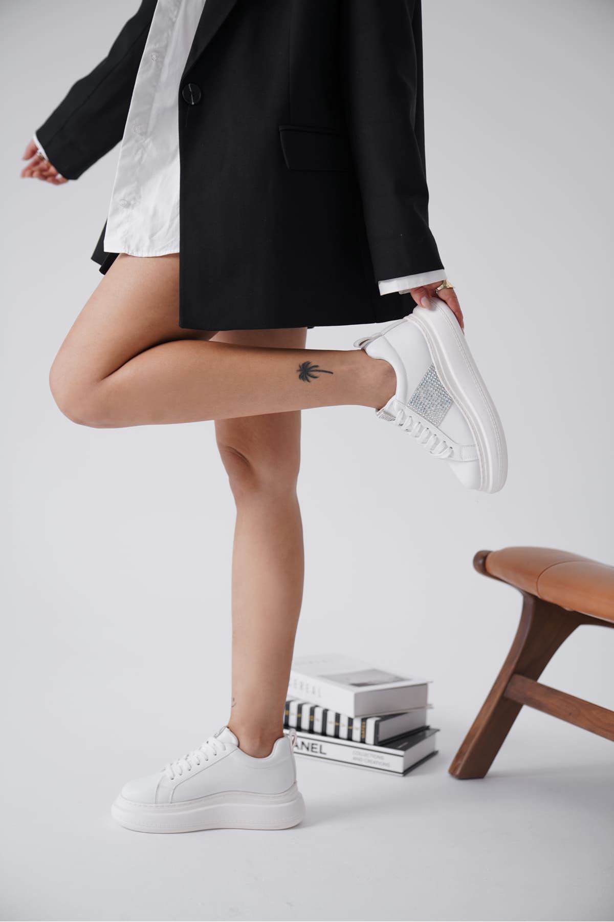 Vega Gümüş Detaylı Beyaz Kadın Spor Ayakkabı