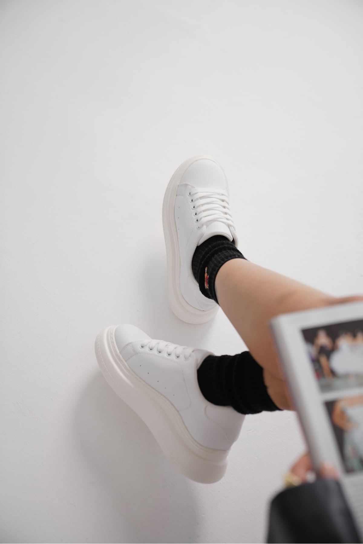 Lauren Kadın Gizli Topuk Mat Beyaz Spor Ayakkabı