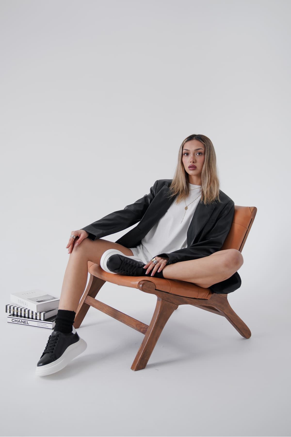 Samira Beyaz Detaylı Siyah Spor Ayakkabı