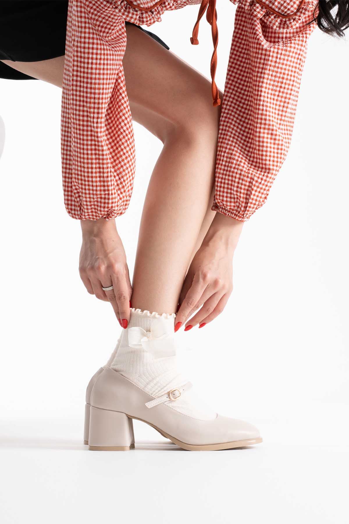 Blown Bej Cilt Kadın Topuklu Ayakkabı
