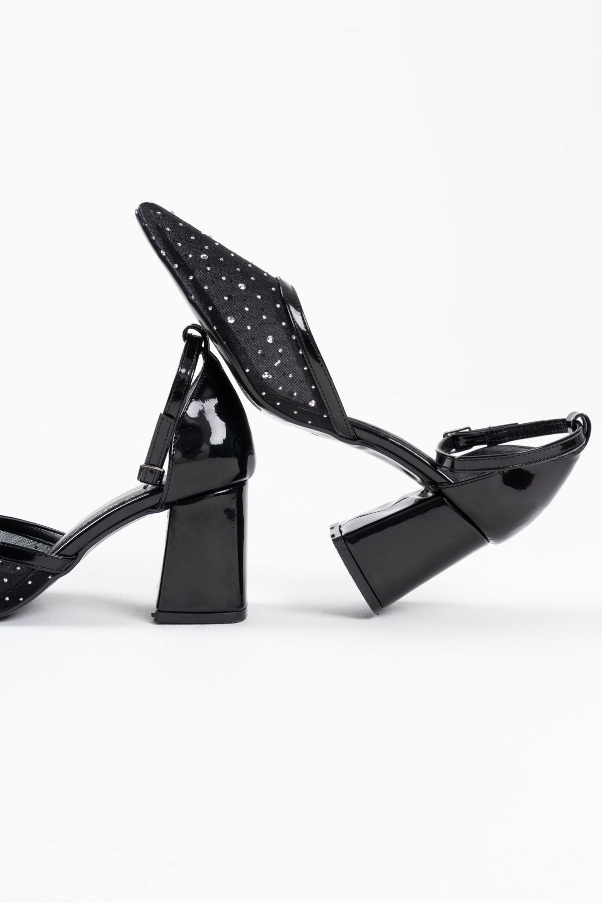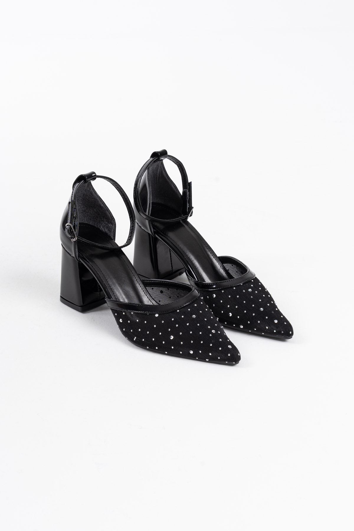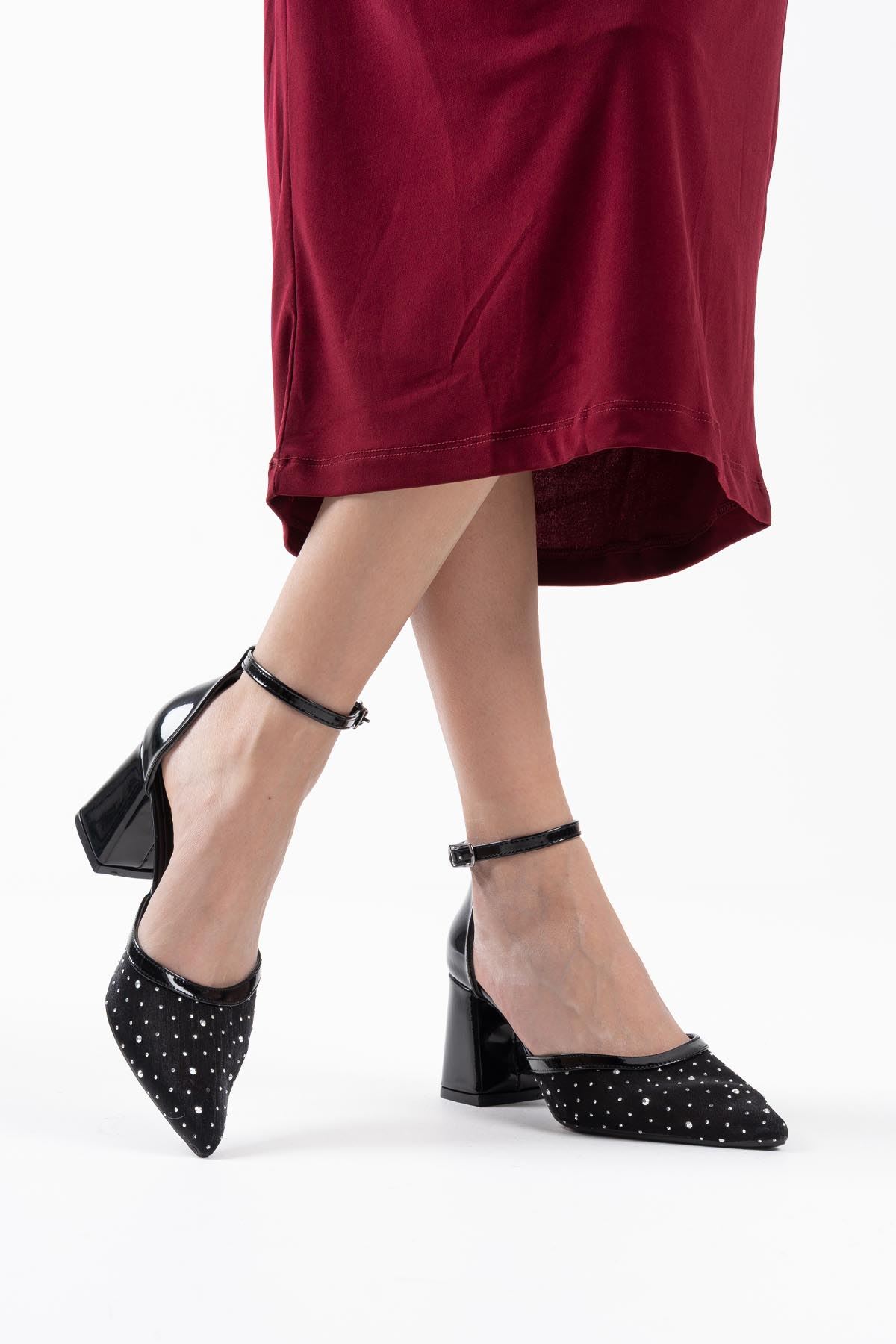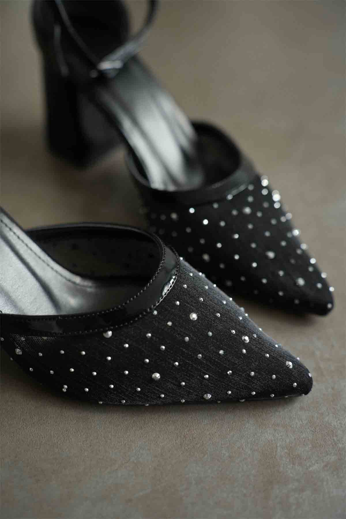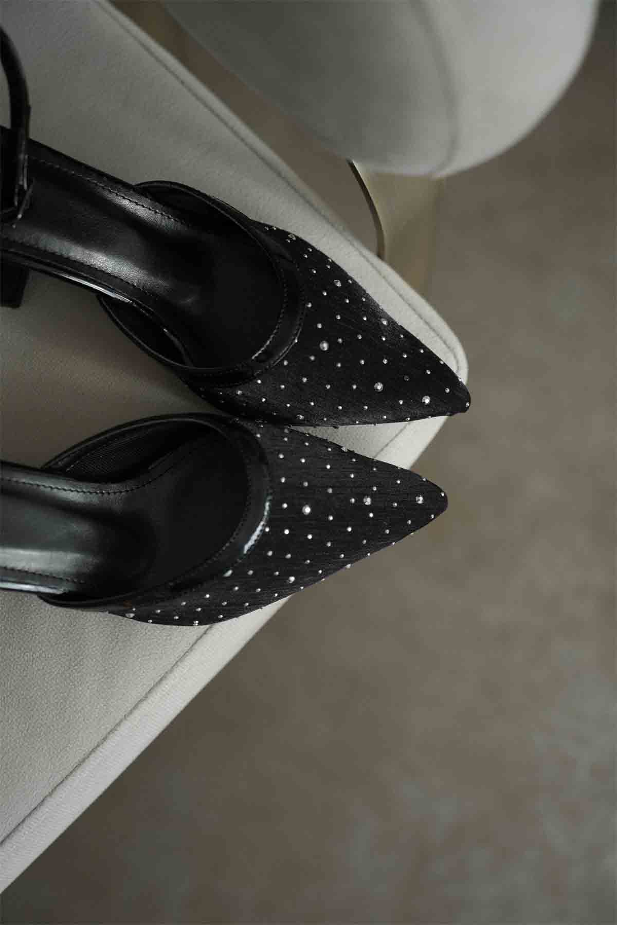 Borie Siyah Tekstil Kumaş Taşlı Kadın Topuklu Ayakkabı