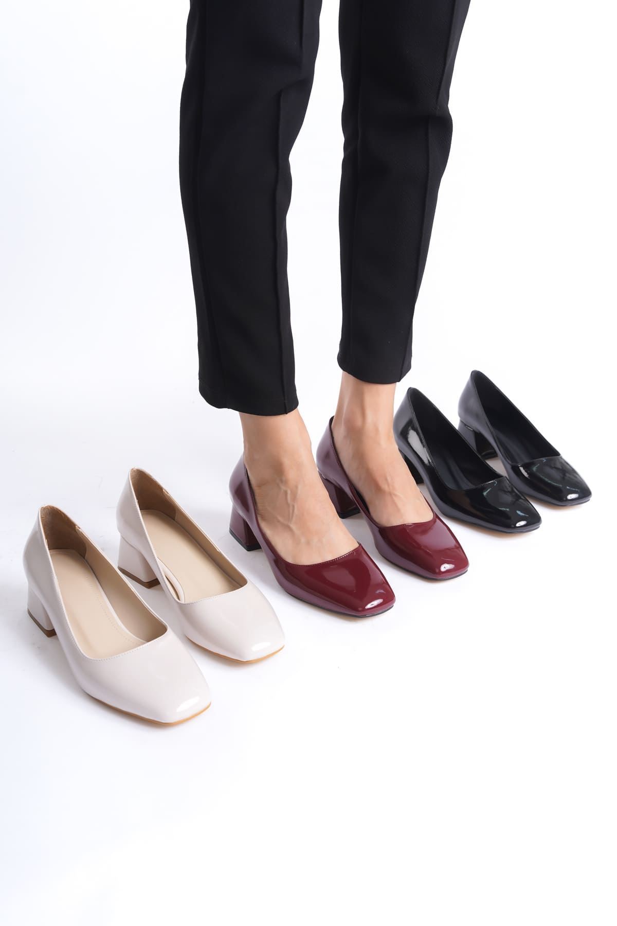 Doren Bordo Rugan Kadın Topuklu Ayakkabı