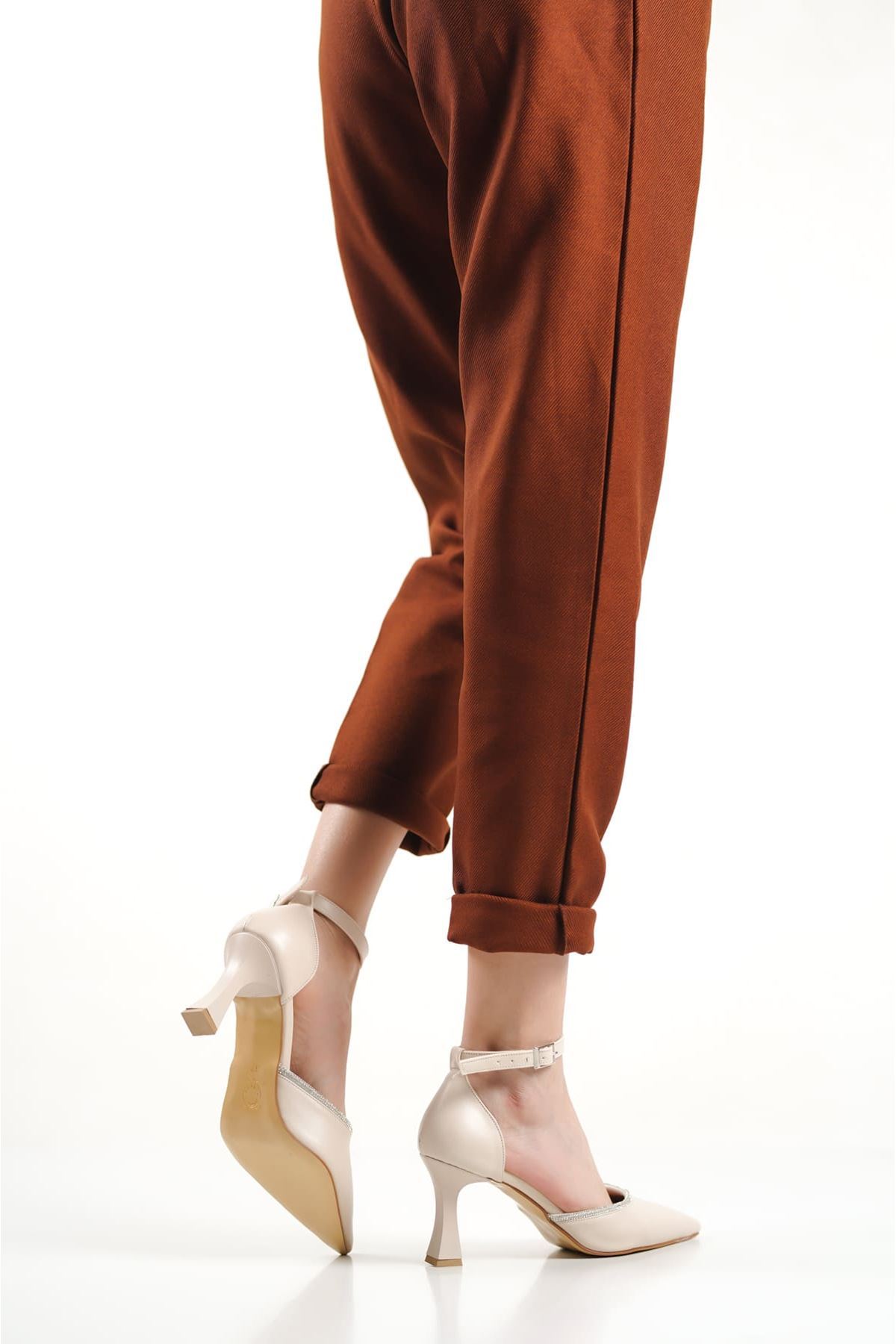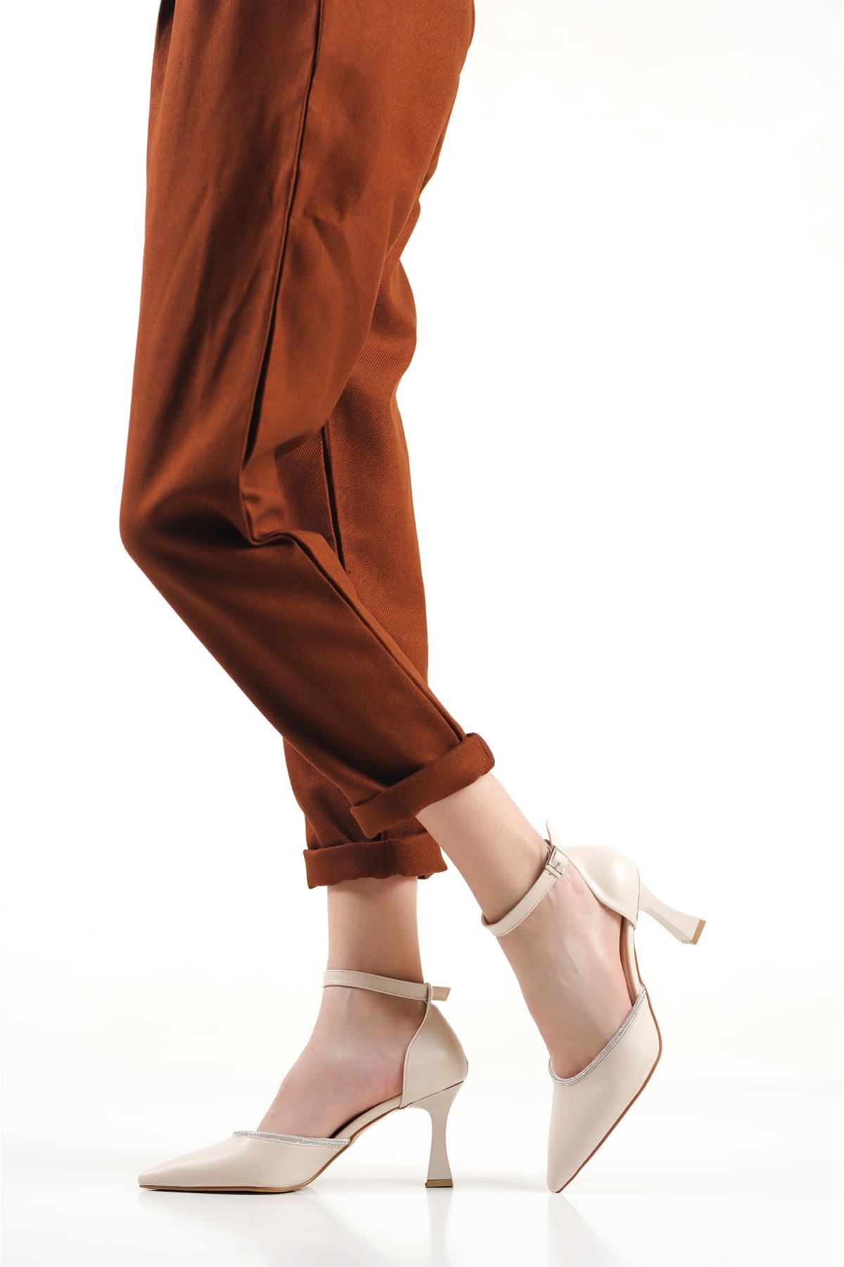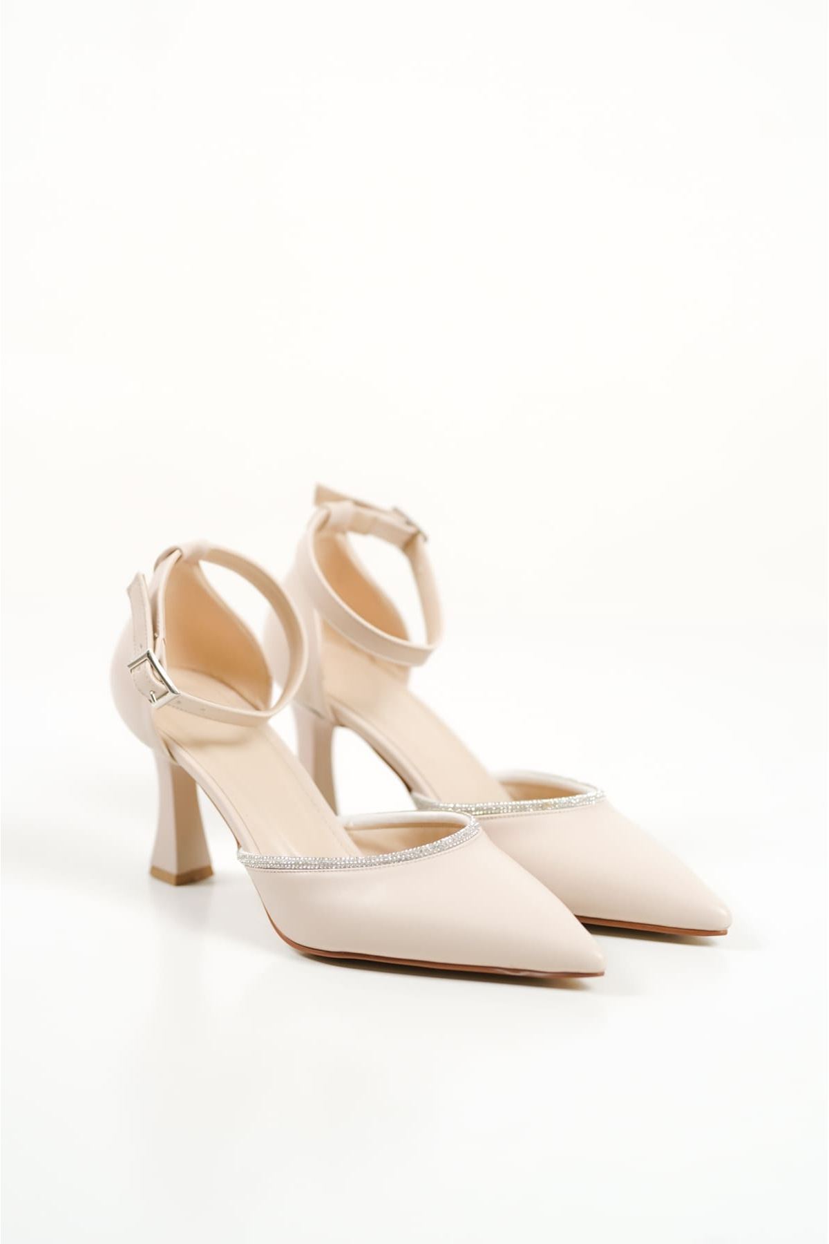 Darla Taşlı Kadın Bej Topuklu Ayakkabı