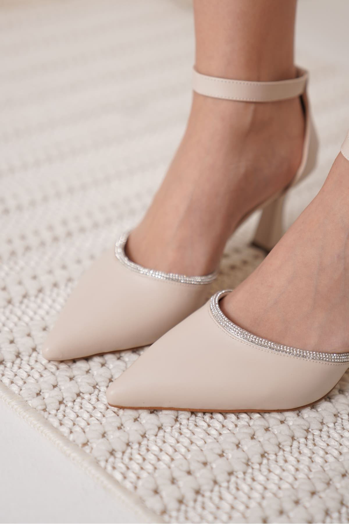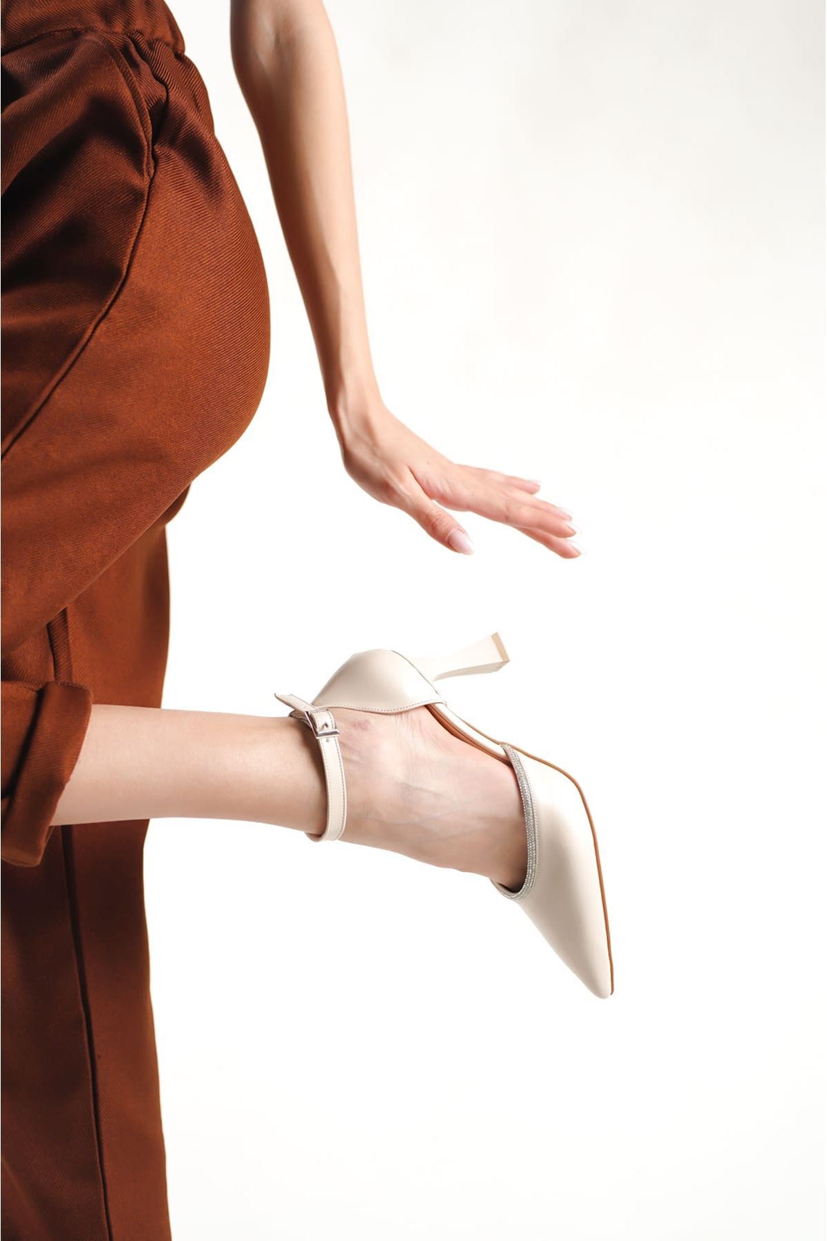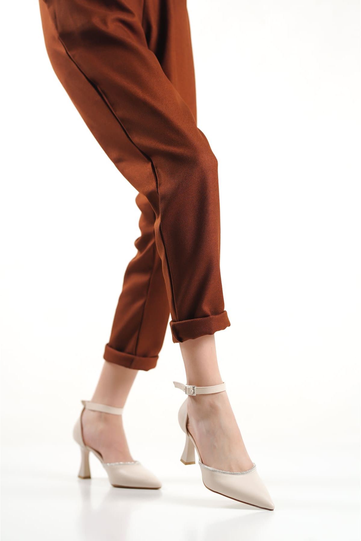Darla Taşlı Kadın Bej Topuklu Ayakkabı