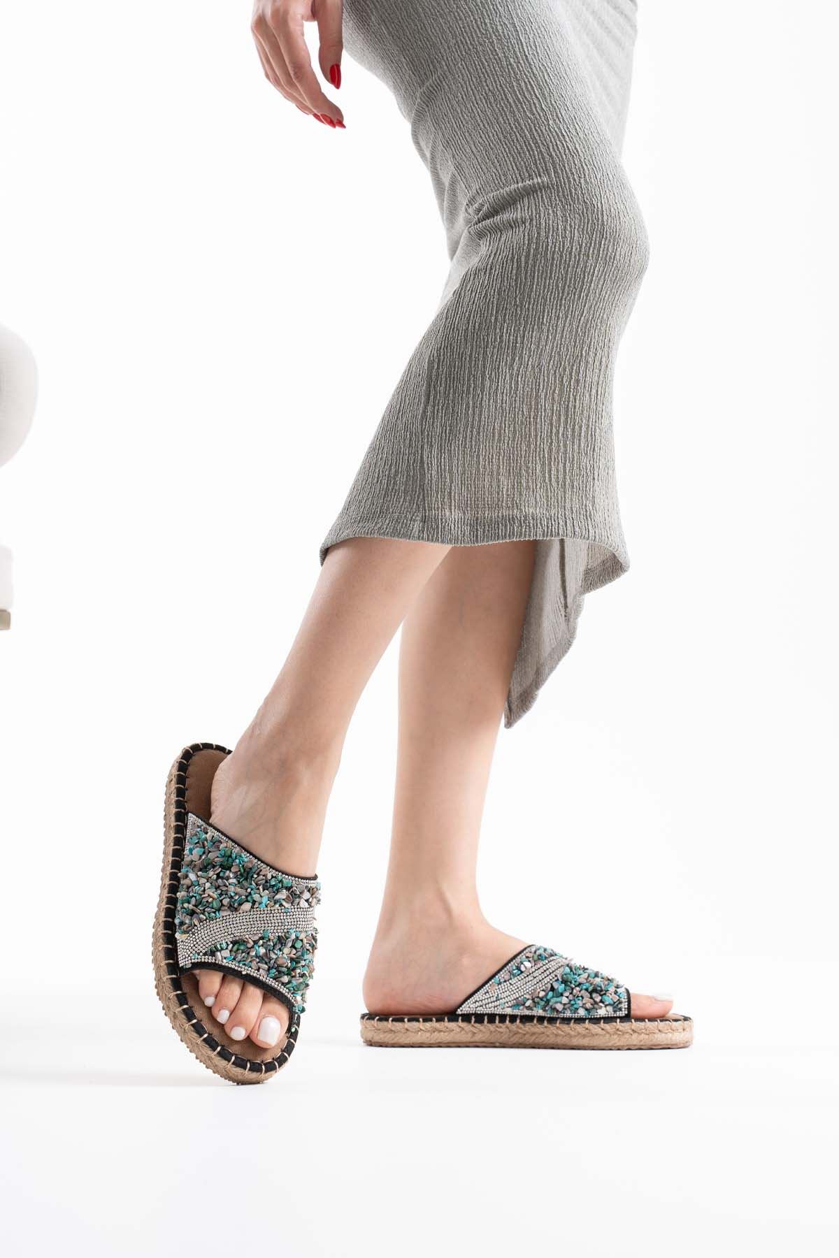 Dennis Kadın Siyah Taş İşlemeli Terlik