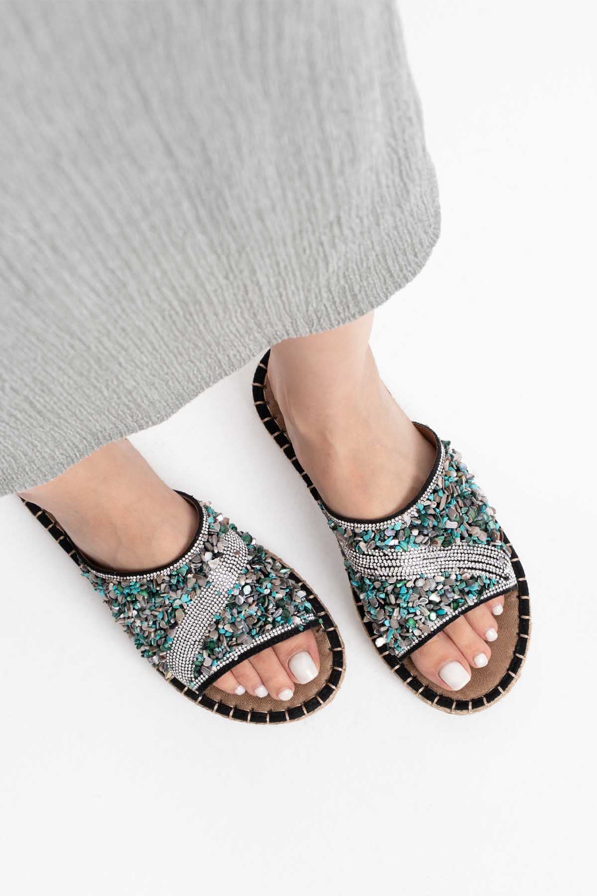 Dennis Kadın Bej Taş İşlemeli Terlik