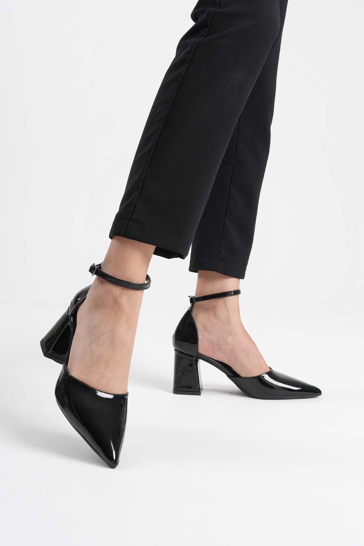 Doren Siyah Rugan Kadın Topuklu Ayakkabı
