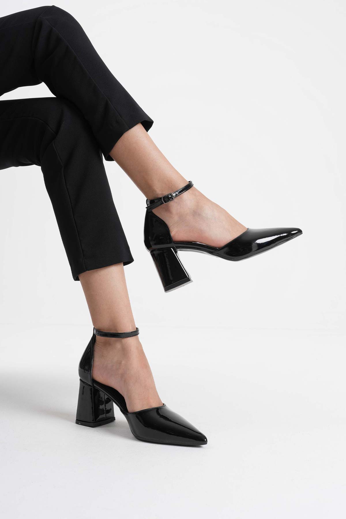 Slay Siyah Cilt Kadın Topuklu Ayakkabı