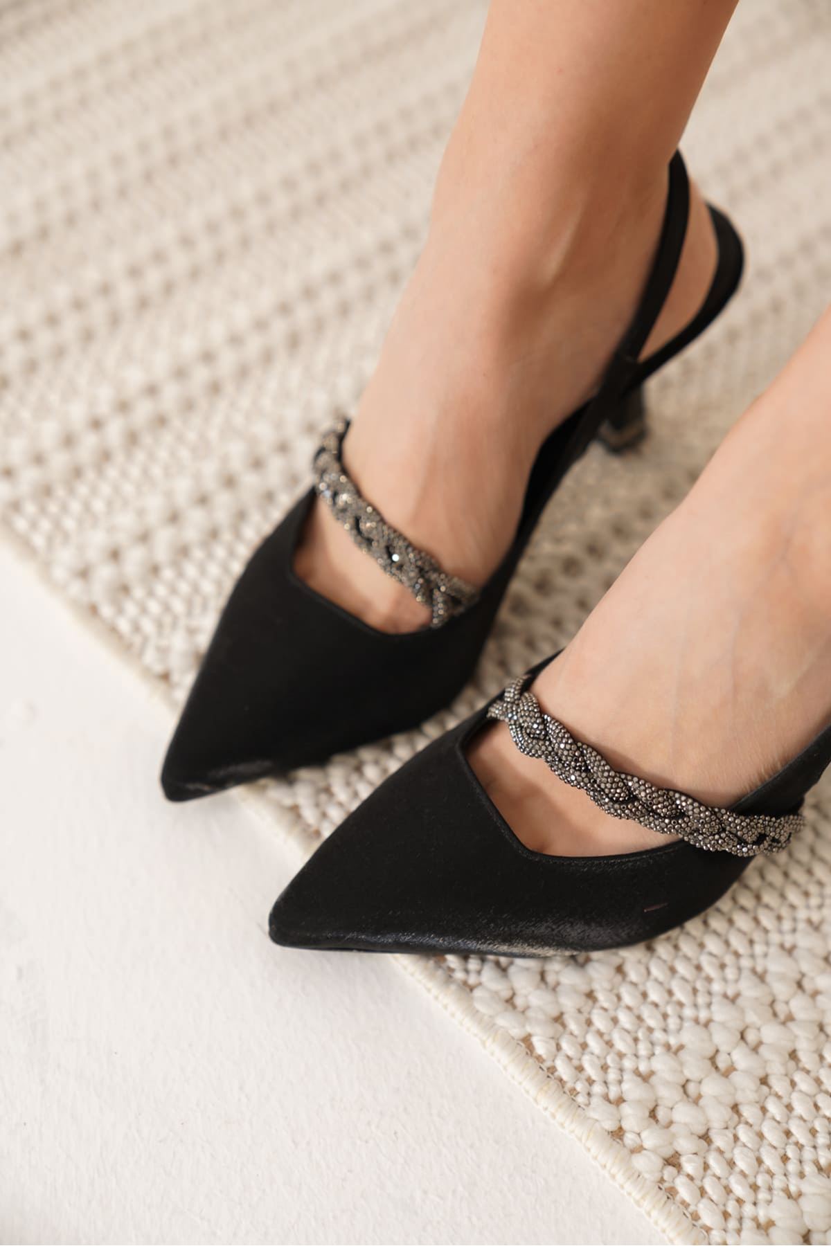 İrina Kadın Siyah Taşlı Topuklu Ayakkabı
