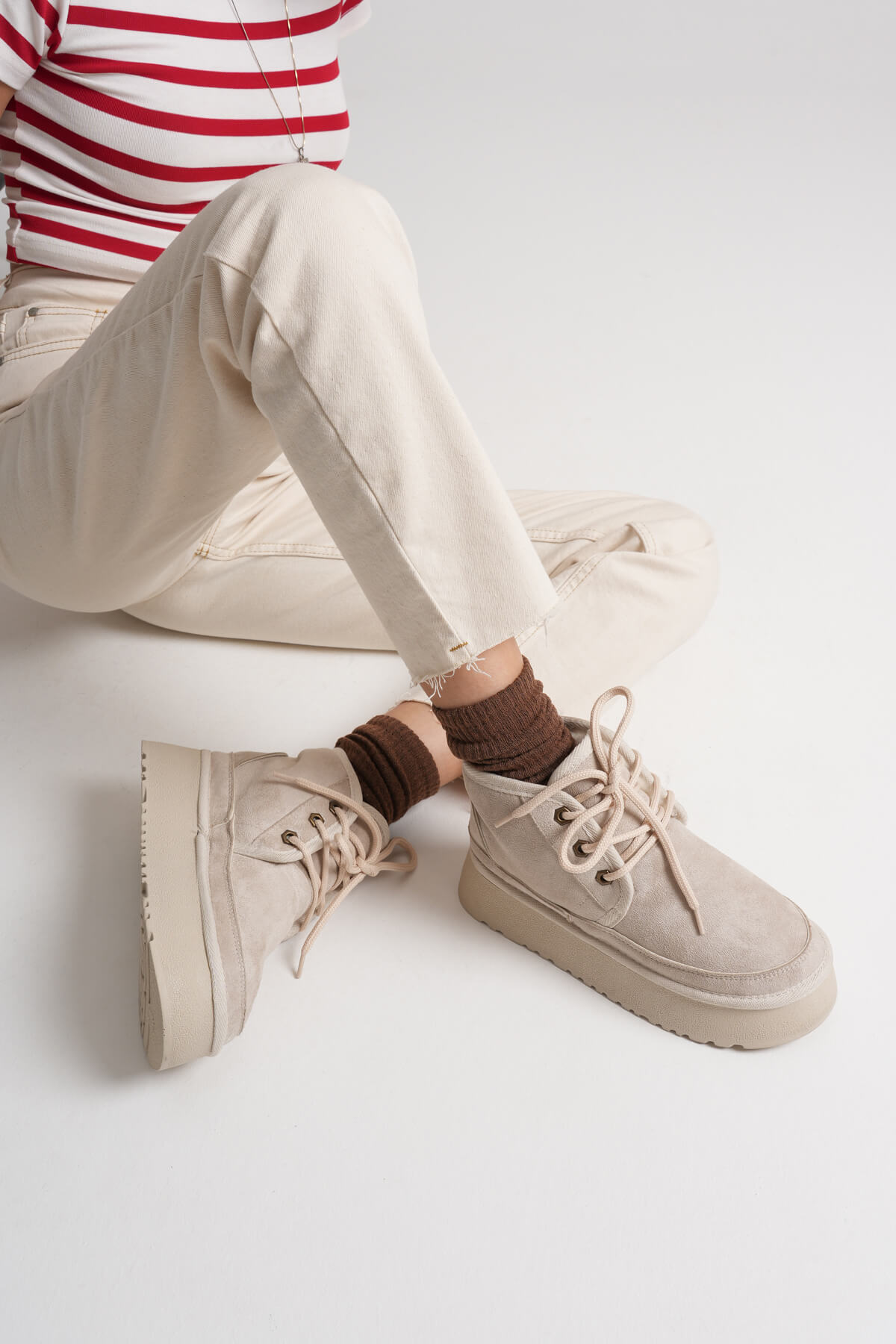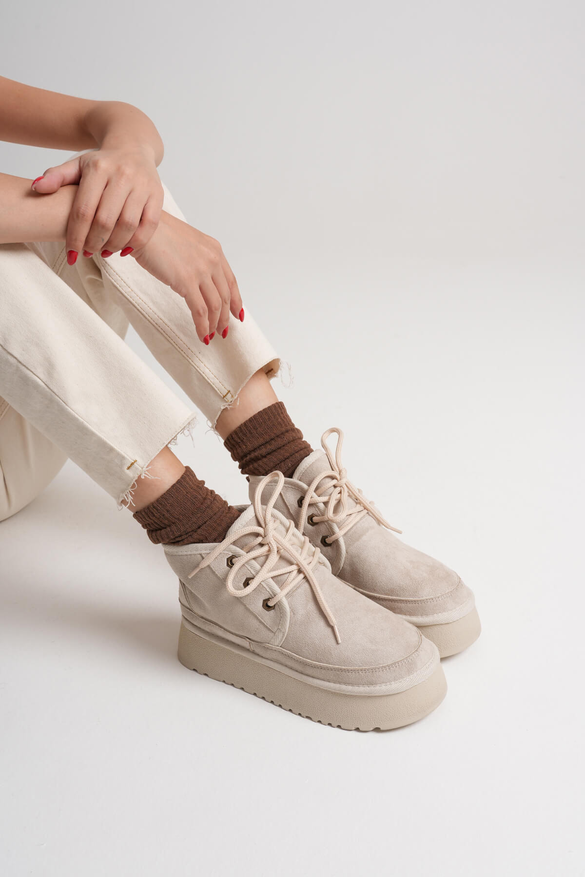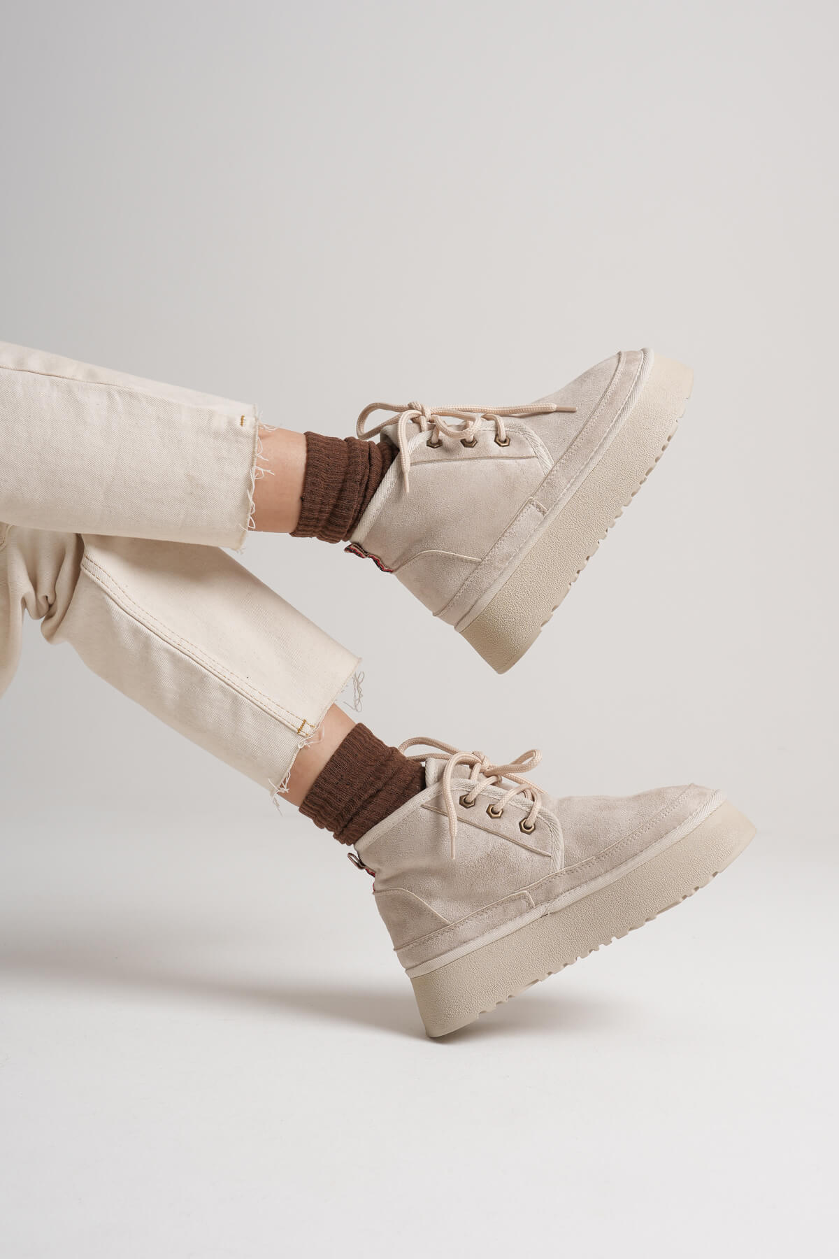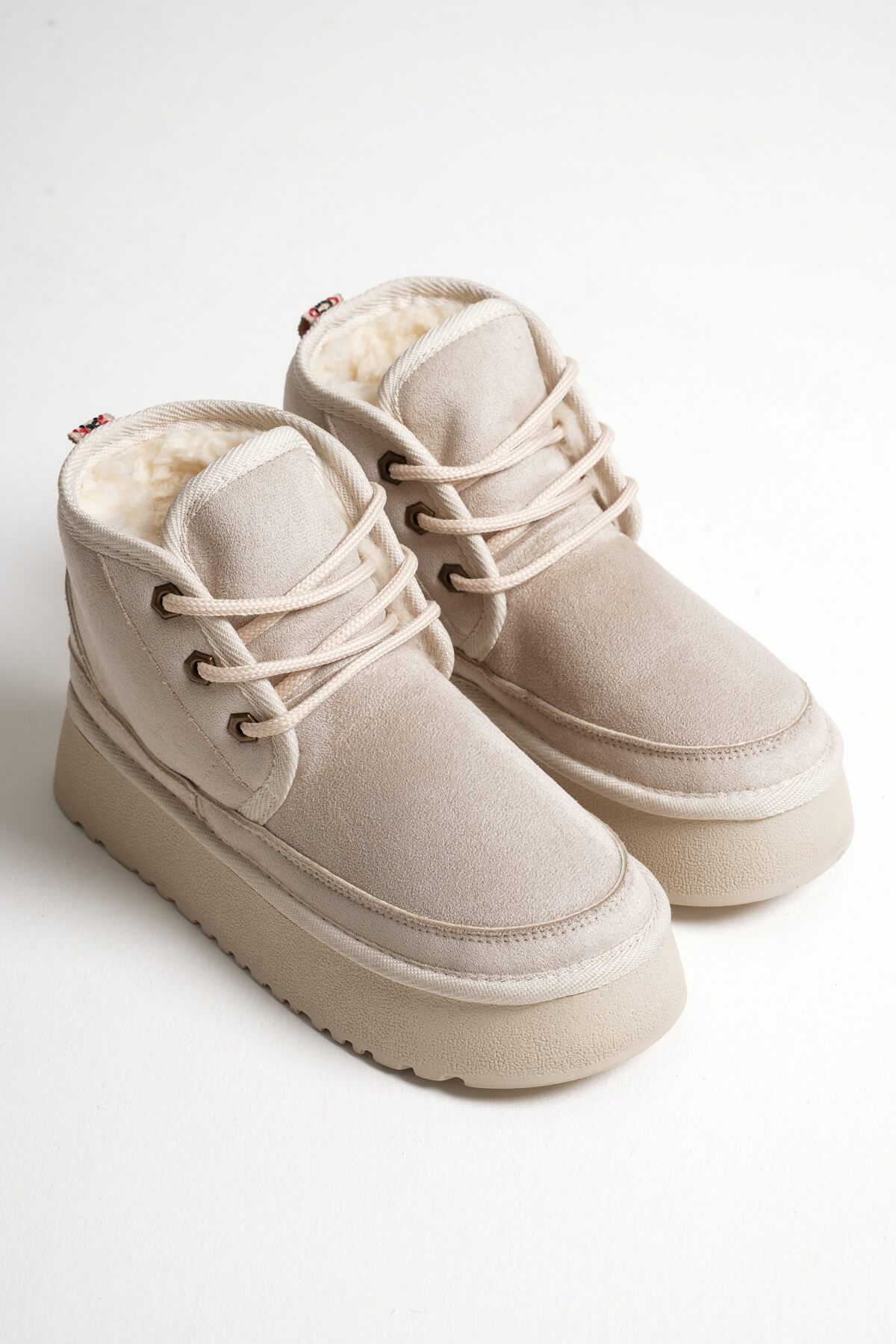 Elena Kadın Bej Kışlık İçi Kürklü Kalın Taban Bot