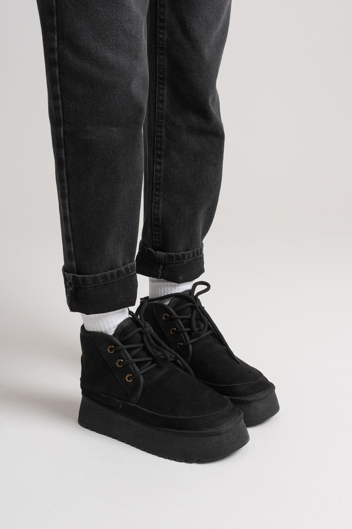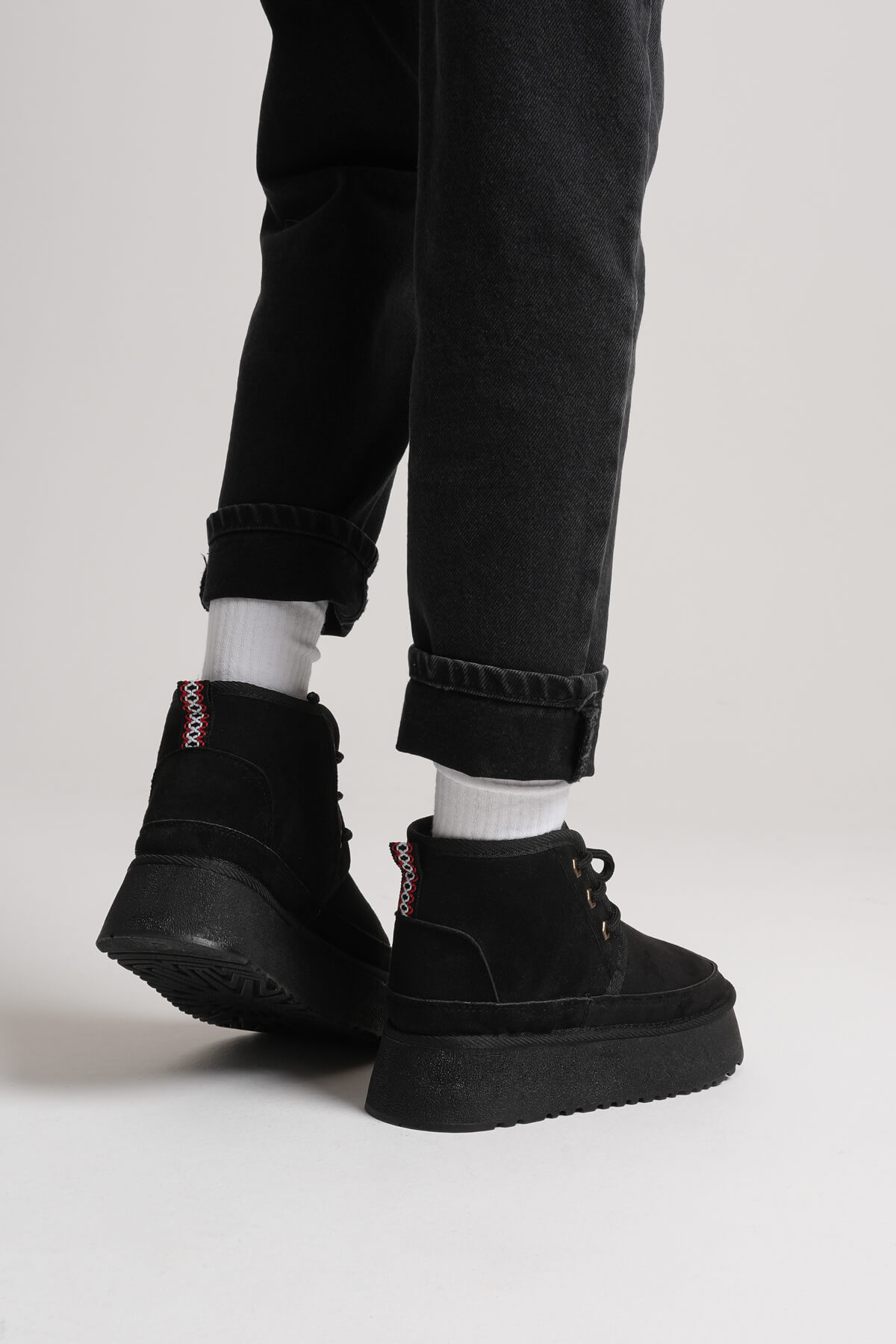 Nadia Kadın Siyah Kışlık İçi Kürklü Kalın Taban Bot