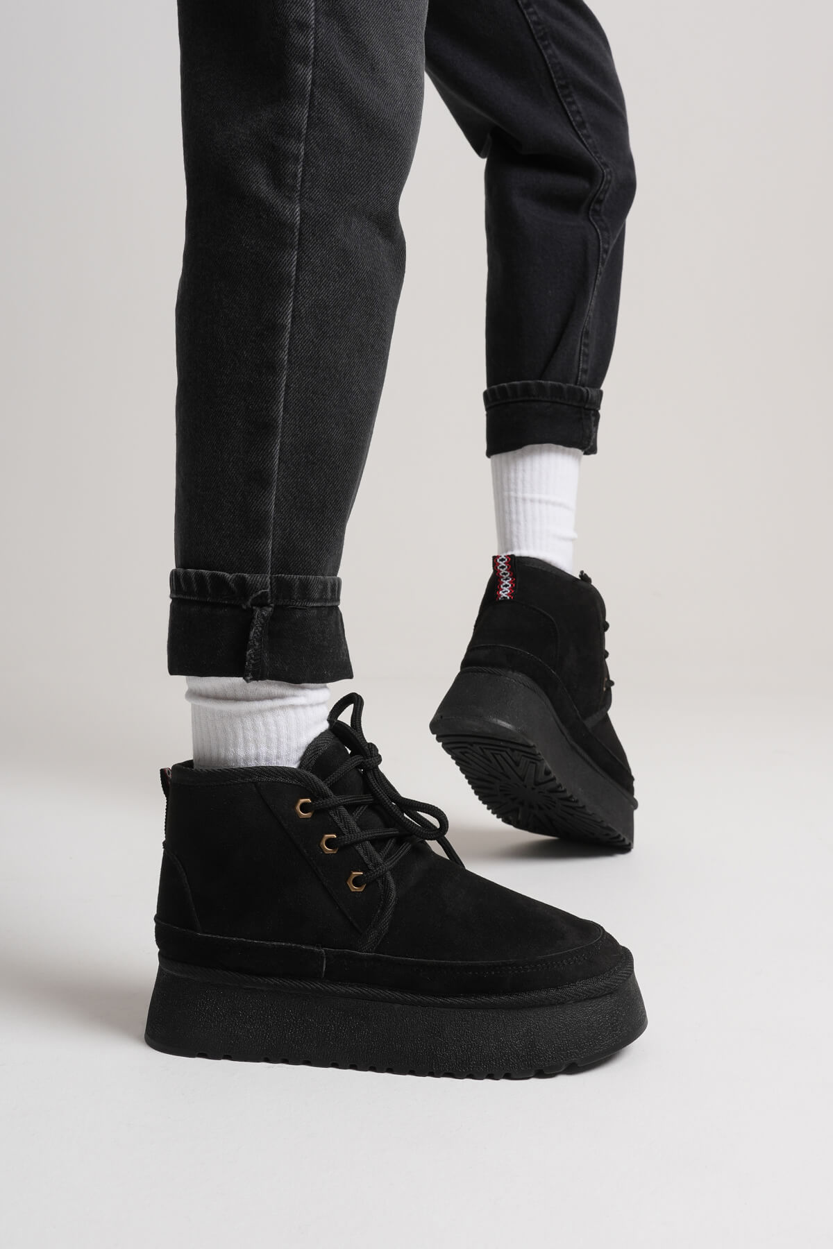 Loana Siyah Kürklü Kadın Kışlık Kalın Tabanlı Bot