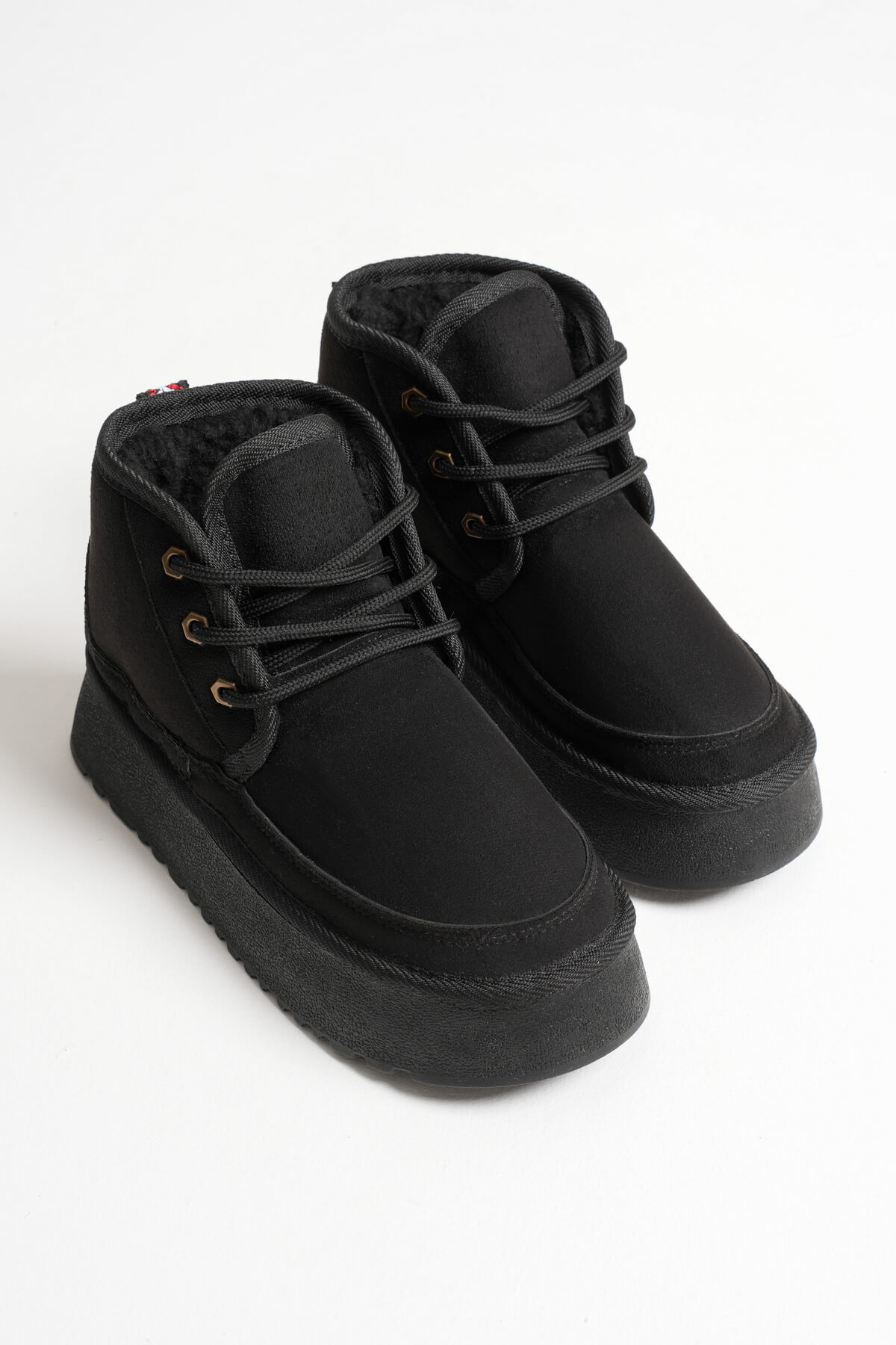 Elena Kadın Siyah Kışlık İçi Kürklü Kalın Taban Bot