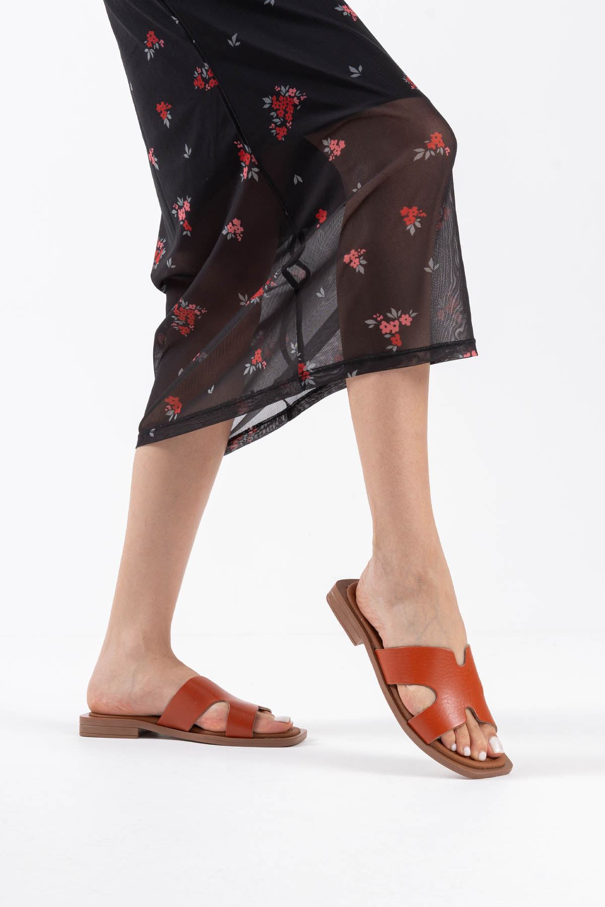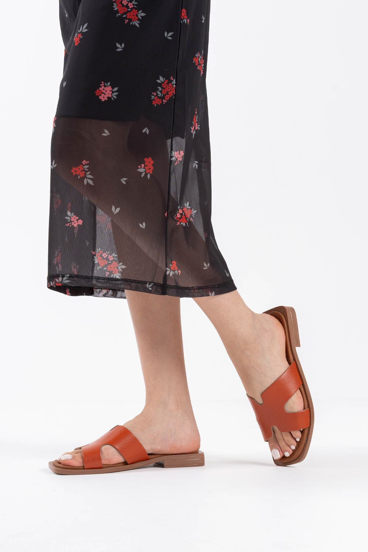 Kares Kiremit Hakiki Deri Terlik