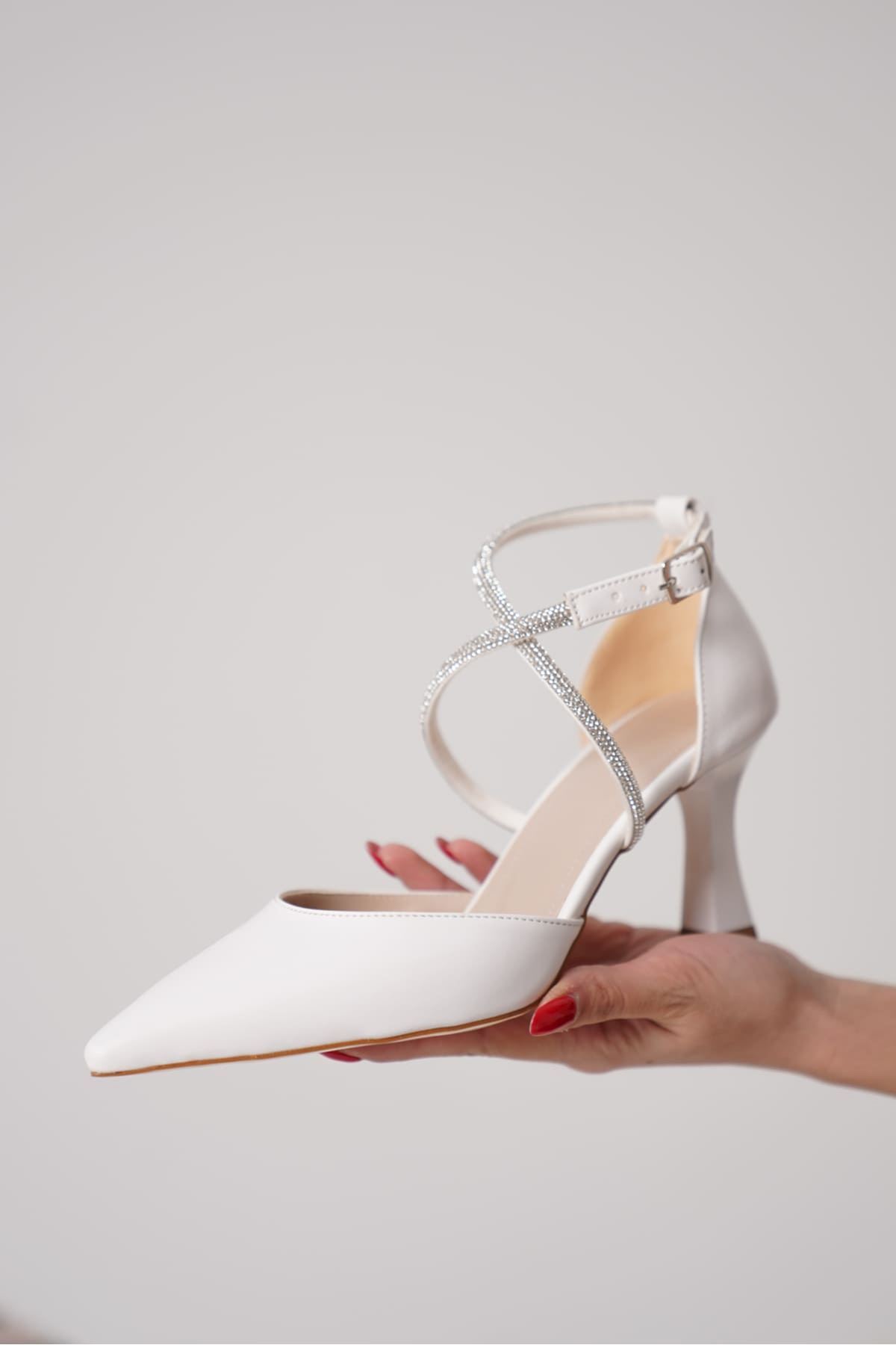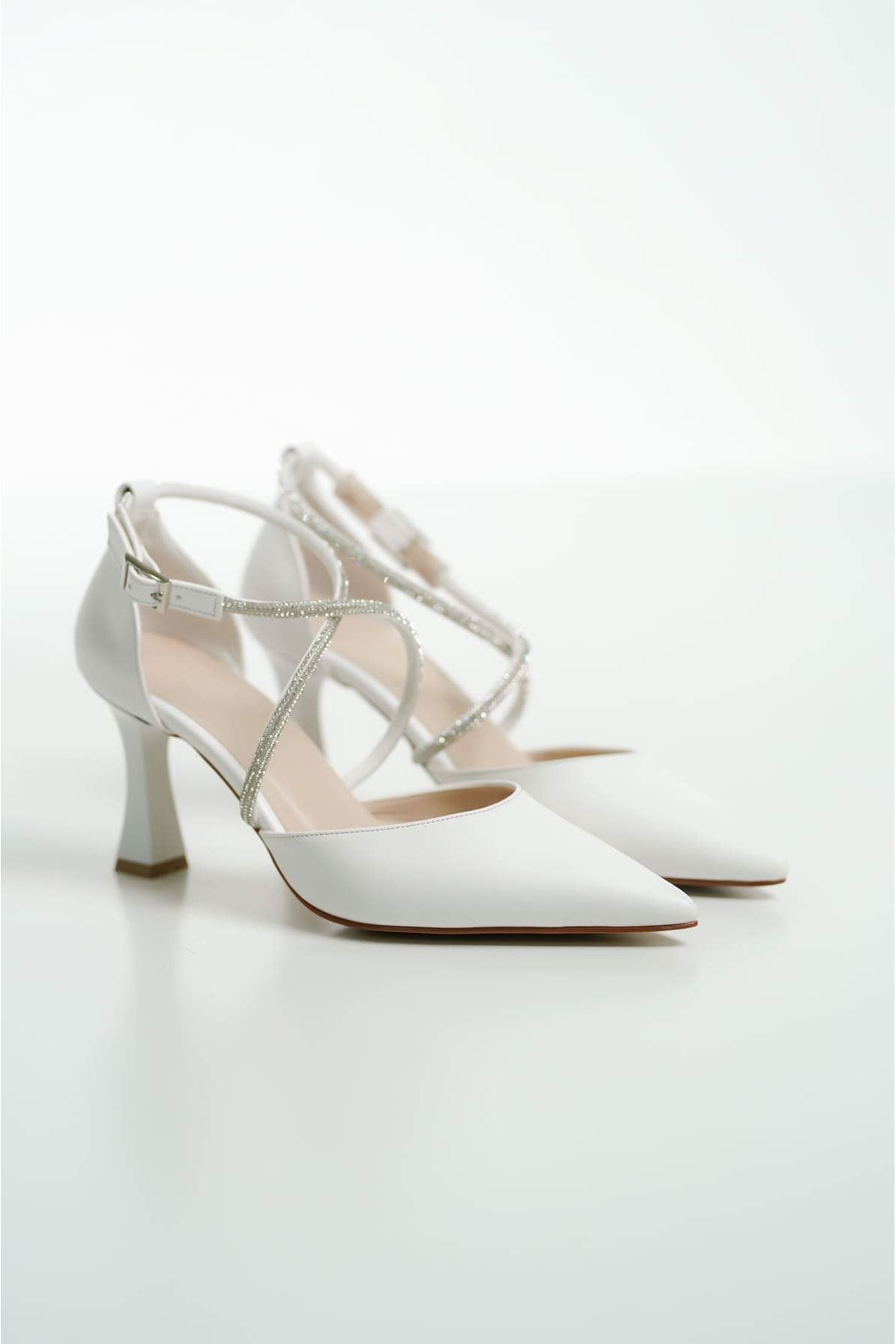 Fiona Taşlı Kadın Beyaz Topuklu Ayakkabı