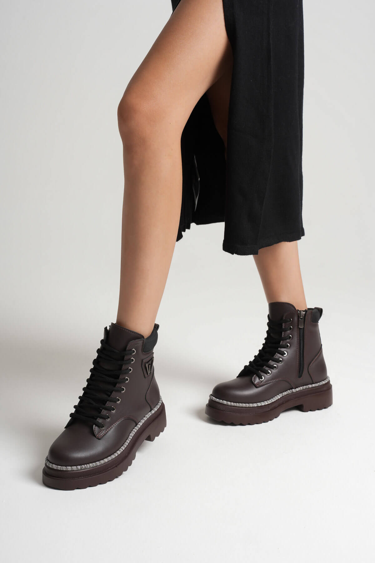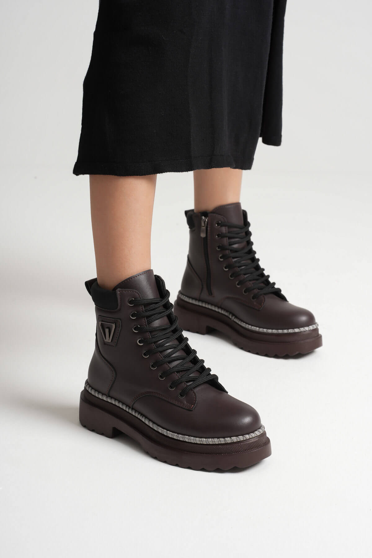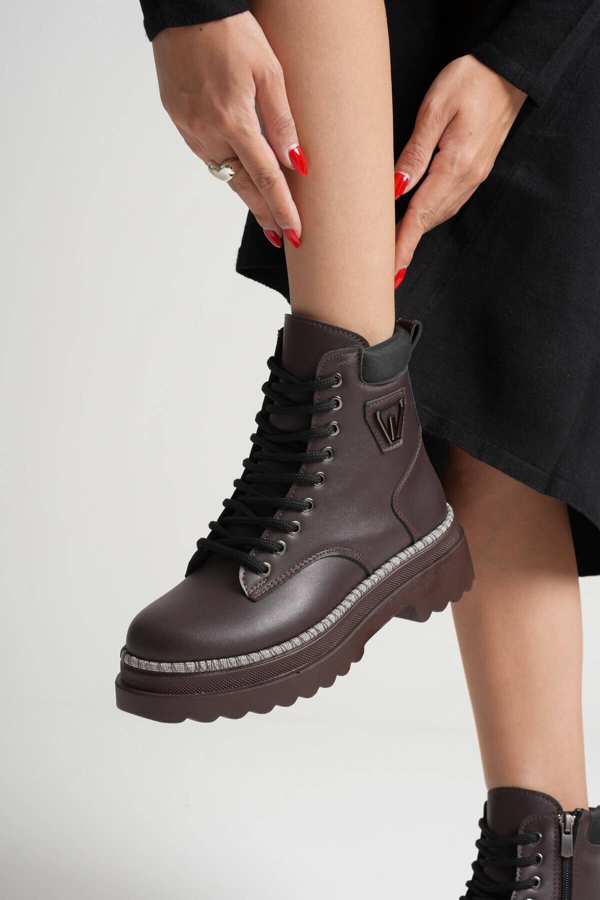 Fiora Özel Tasarım Kadın Kışlık Kalın Tabanlı Acı Kahve Bot