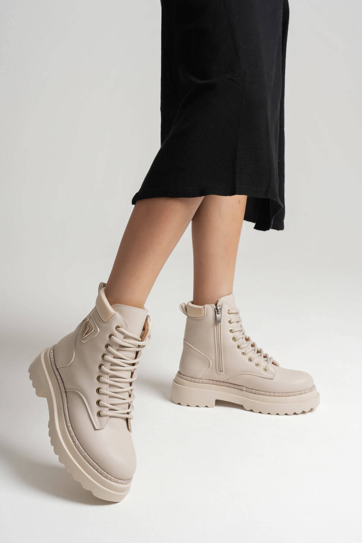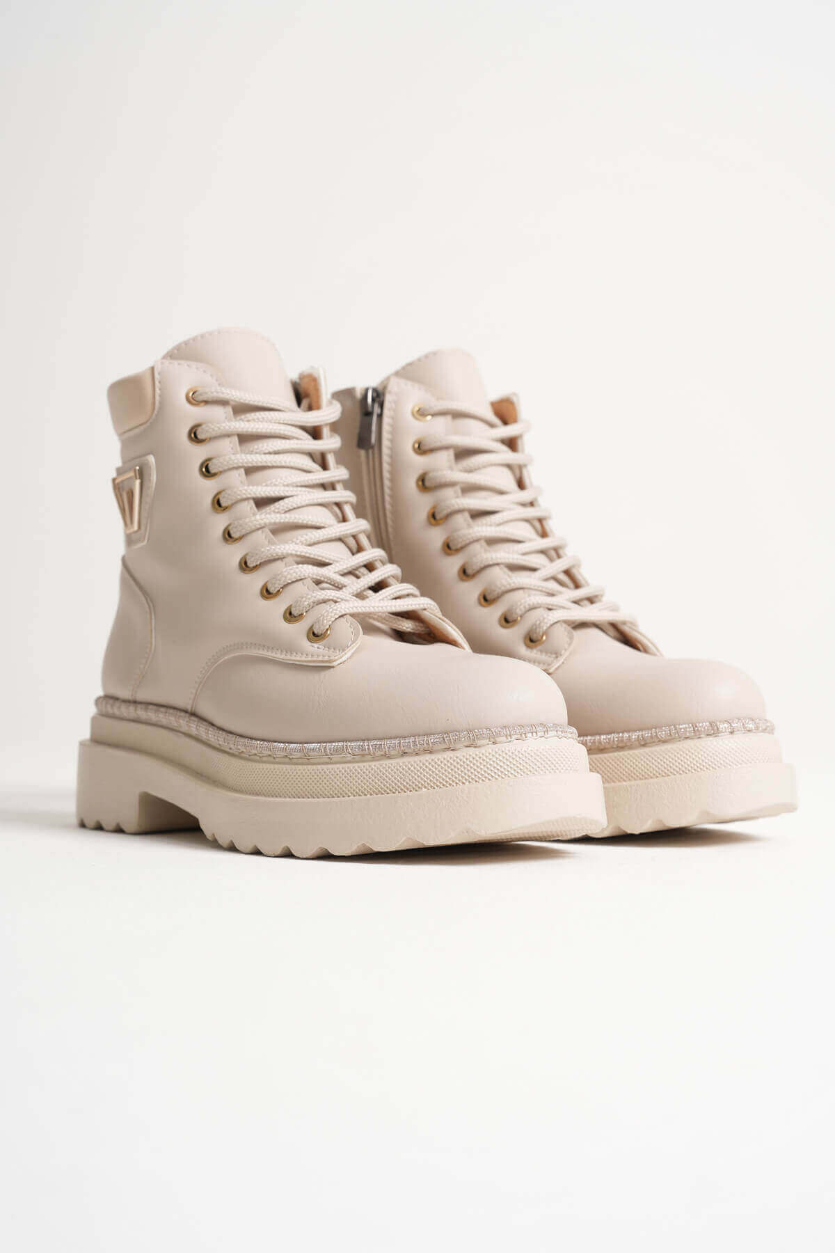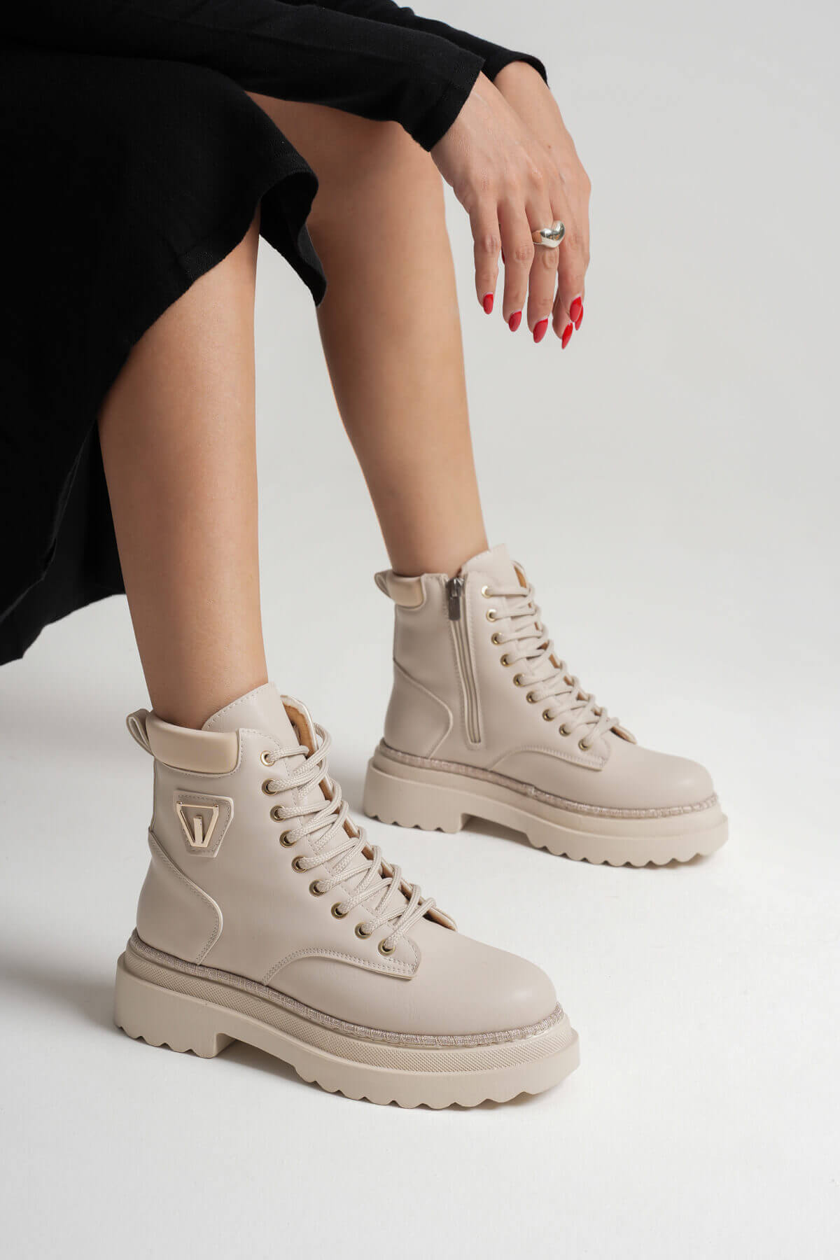 Fiora: Gücün ve zarafetin bej bot hali! Modern tasarımı ve kalın tabanıyla şehirde stilini, doğada adımlarını güçlendir.