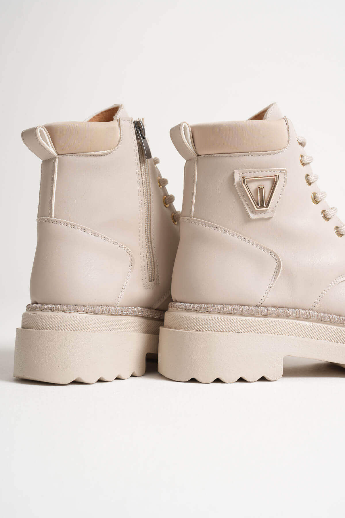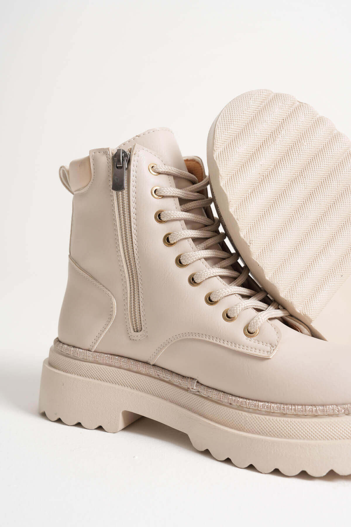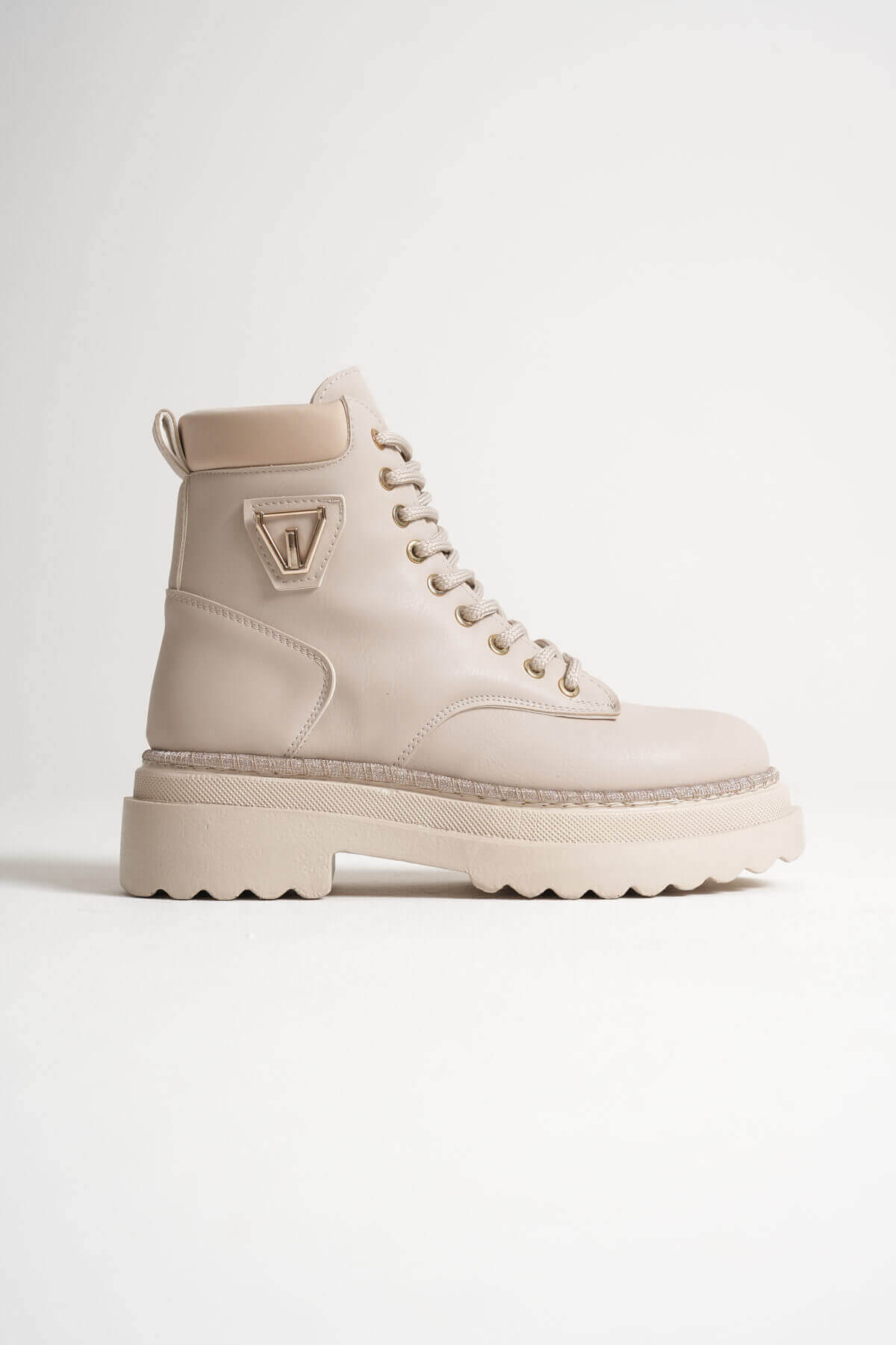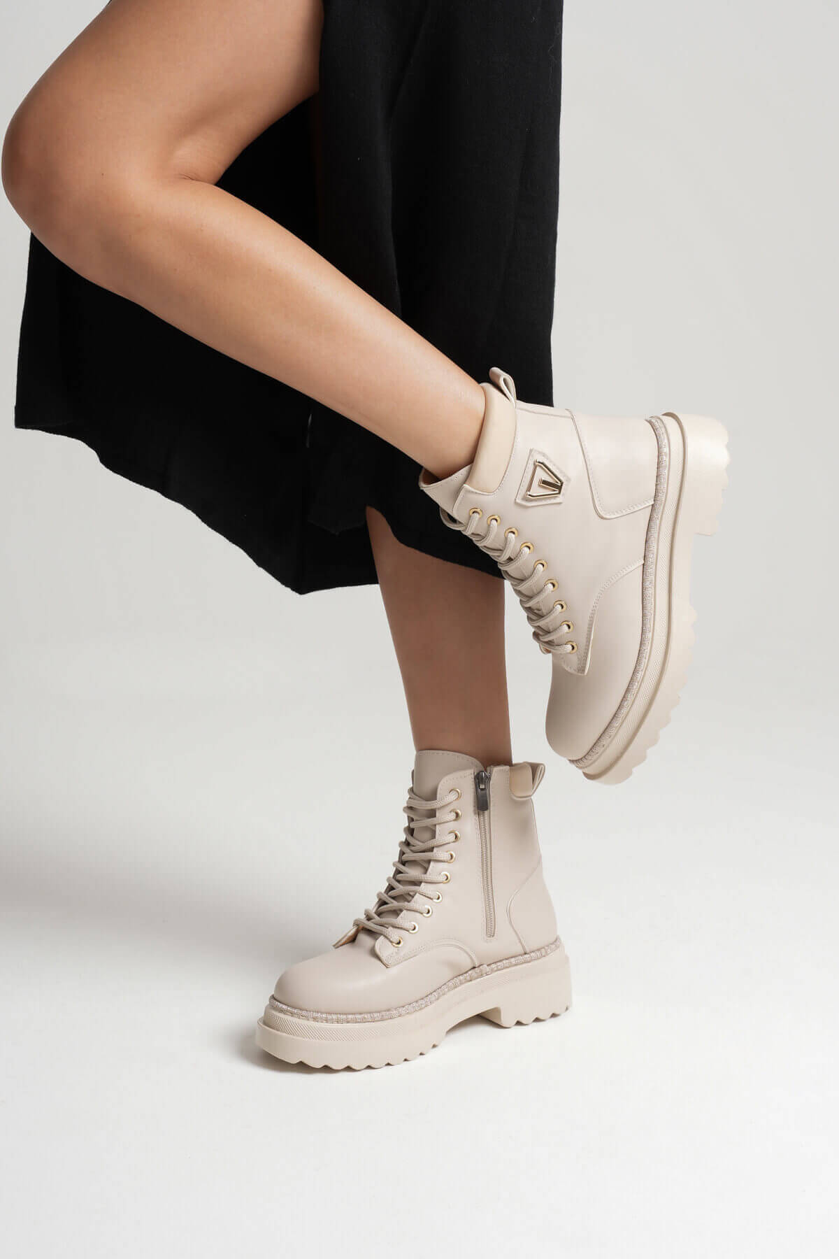 Fiora: Gücün ve zarafetin bej bot hali! Modern tasarımı ve kalın tabanıyla şehirde stilini, doğada adımlarını güçlendir.