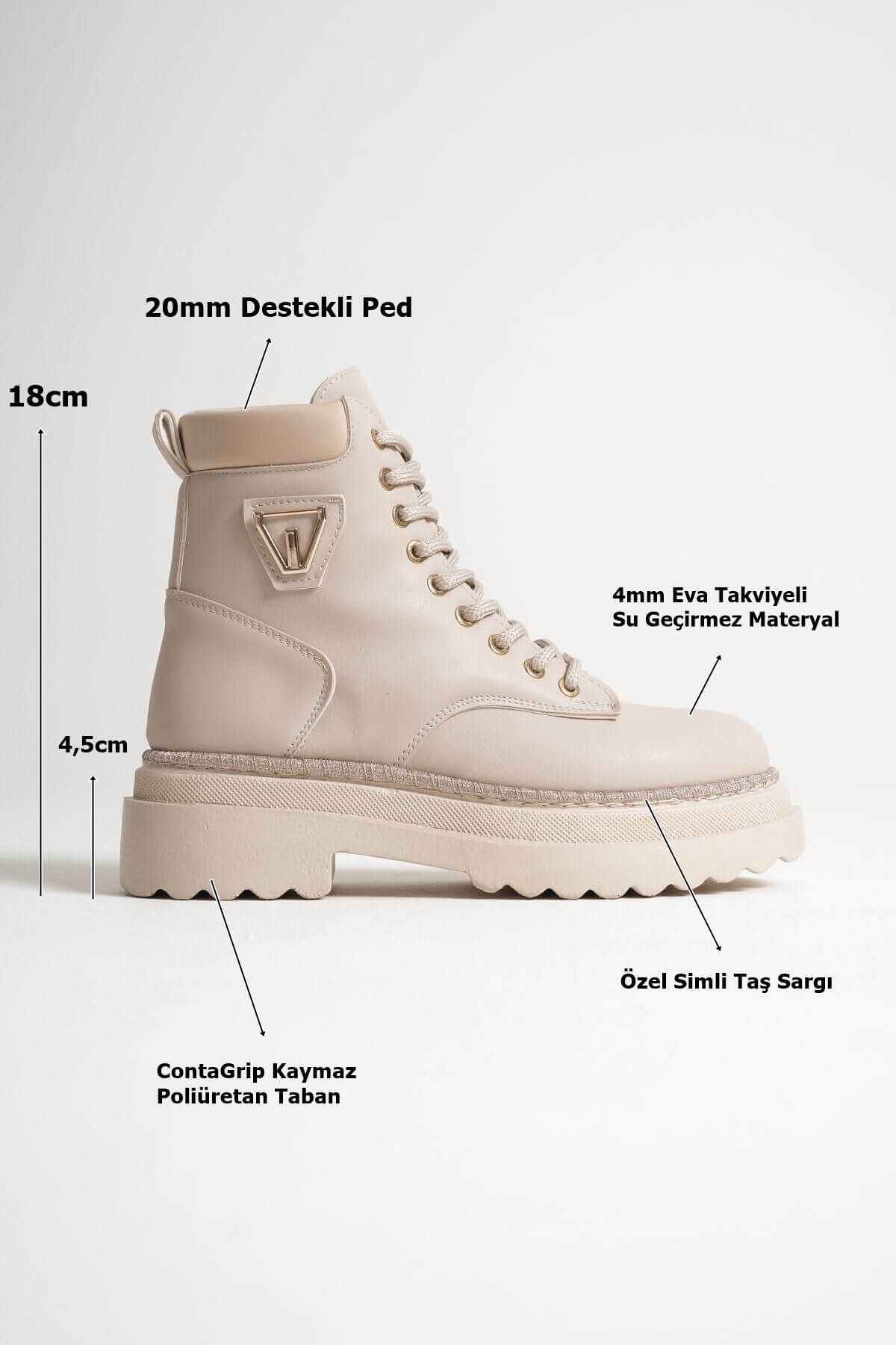 Fiora Özel Tasarım Kadın Kışlık Kalın Tabanlı Bej Bot