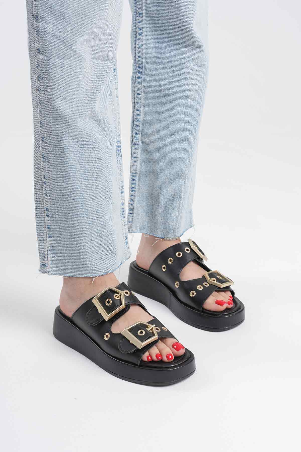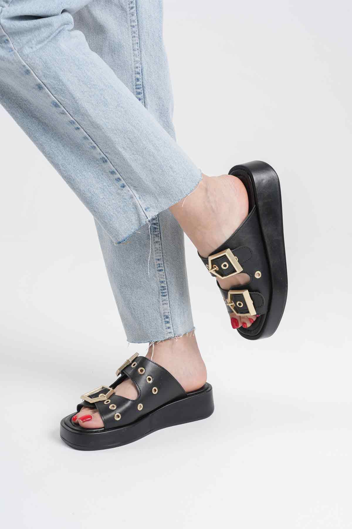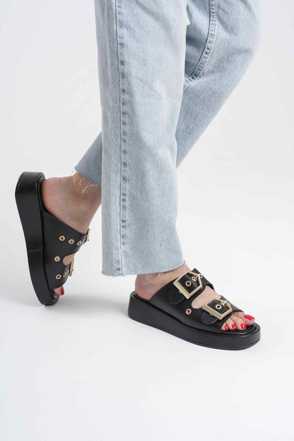 Dennis Kadın Siyah Taş İşlemeli Terlik