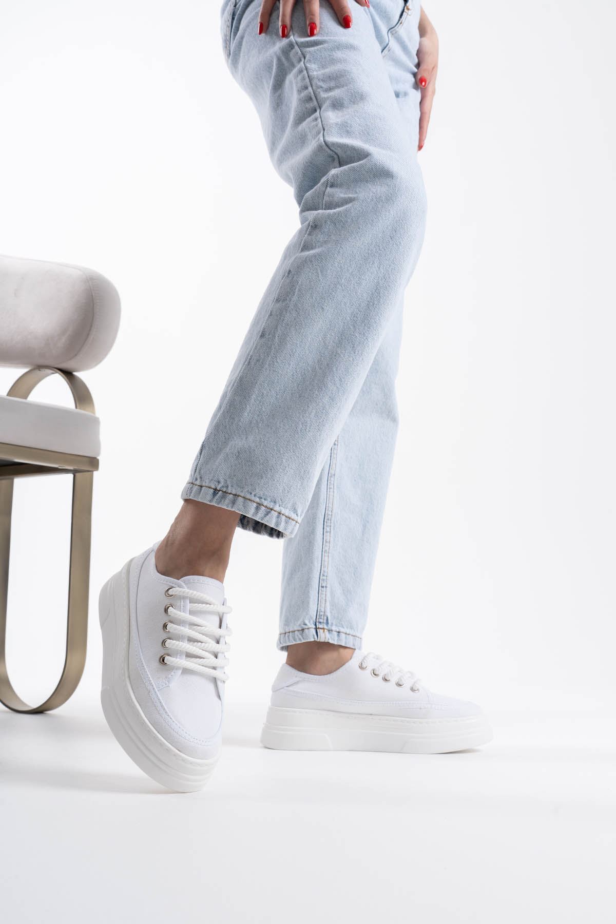 Glown Kadın Beyaz Keten Spor Ayakkabı