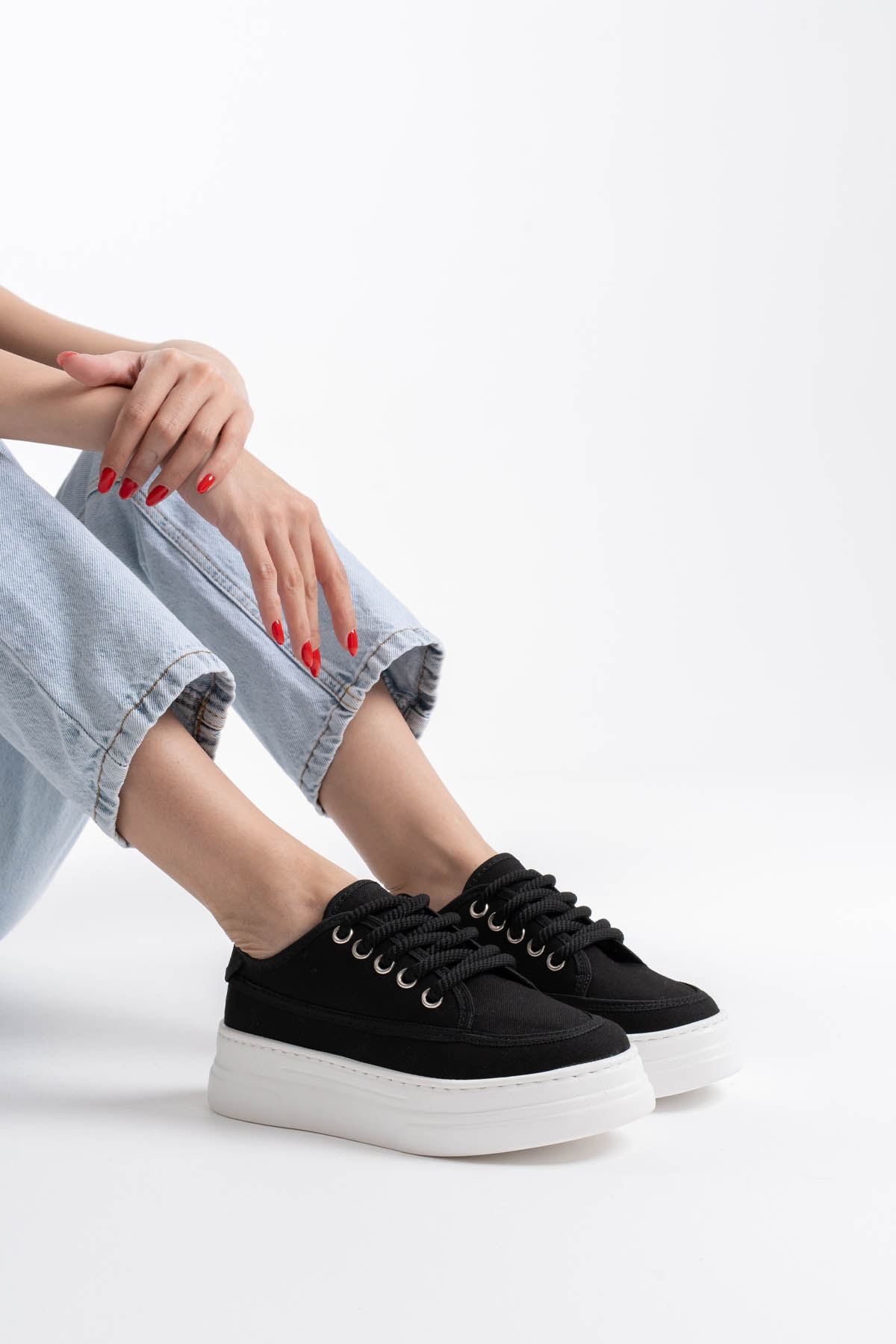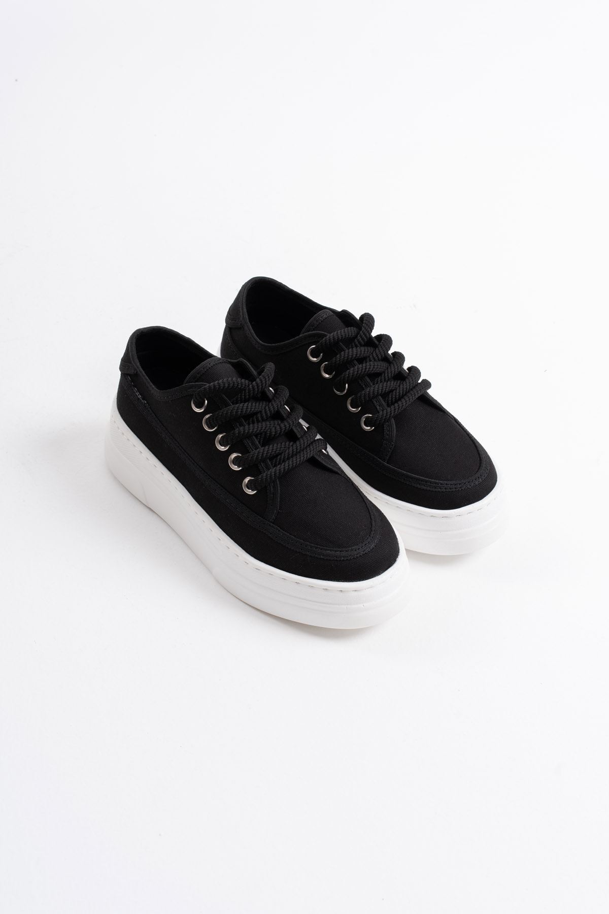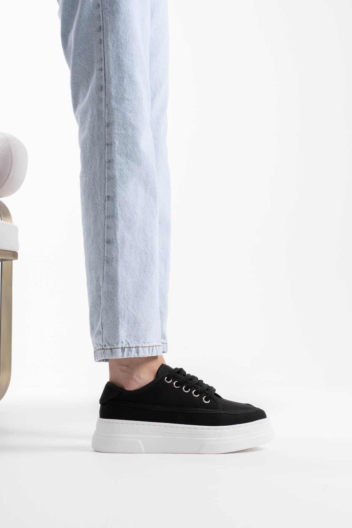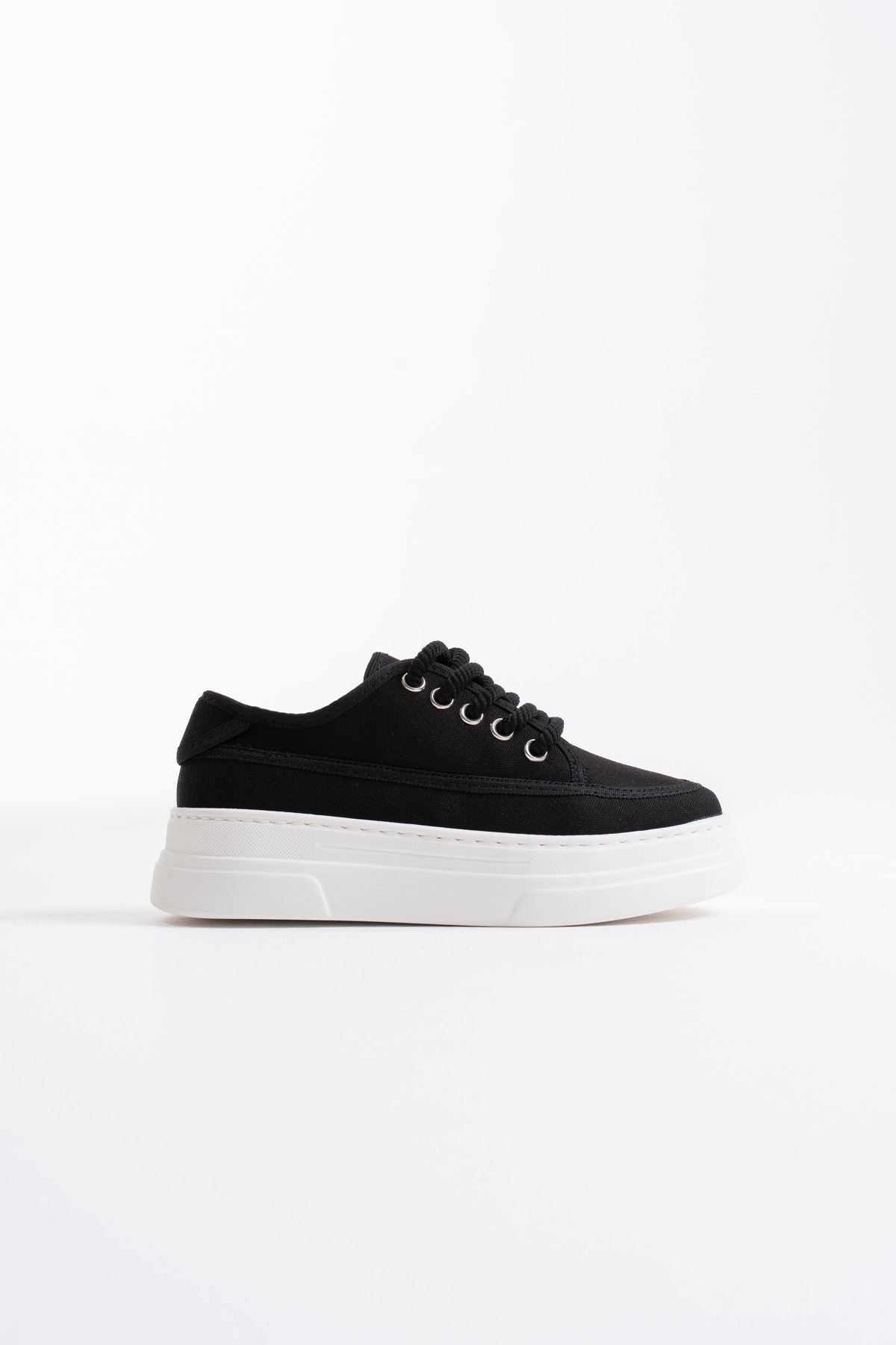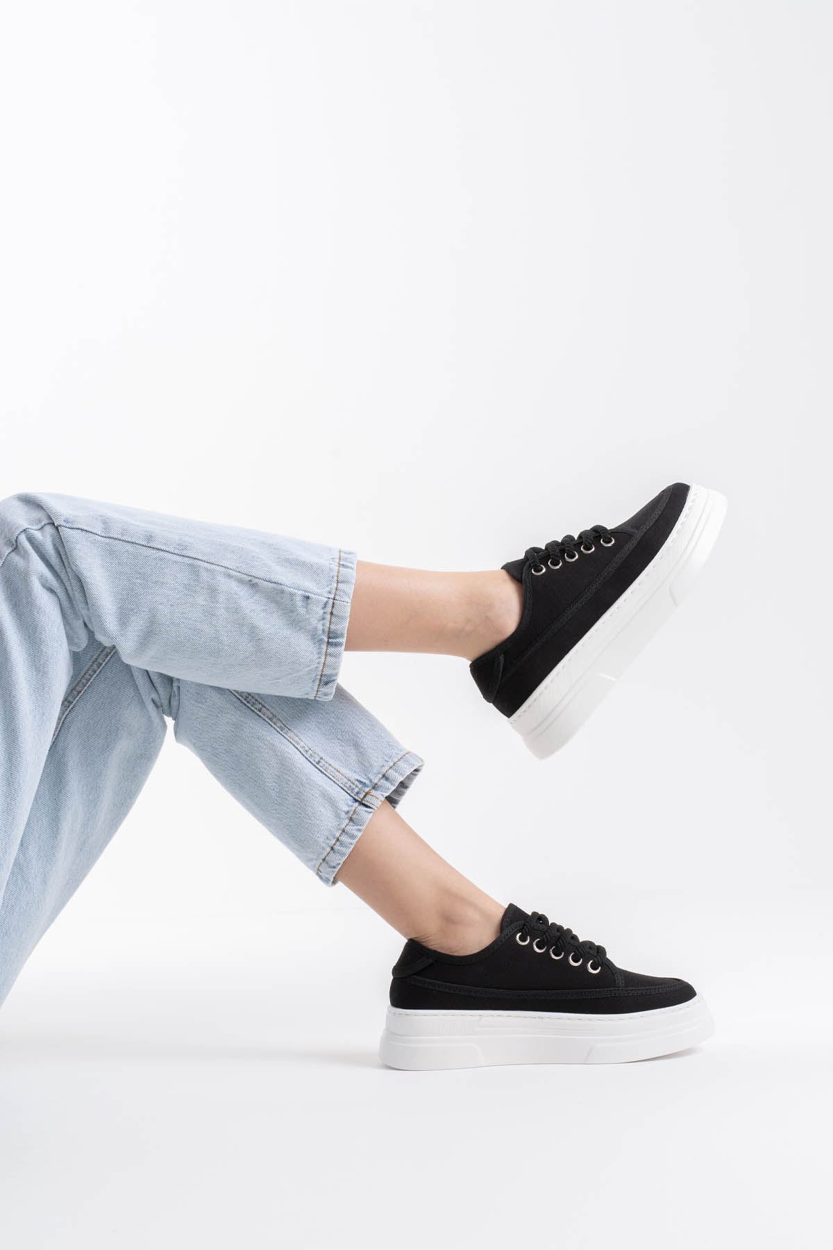 Glown Kadın Siyah Keten Spor Ayakkabı