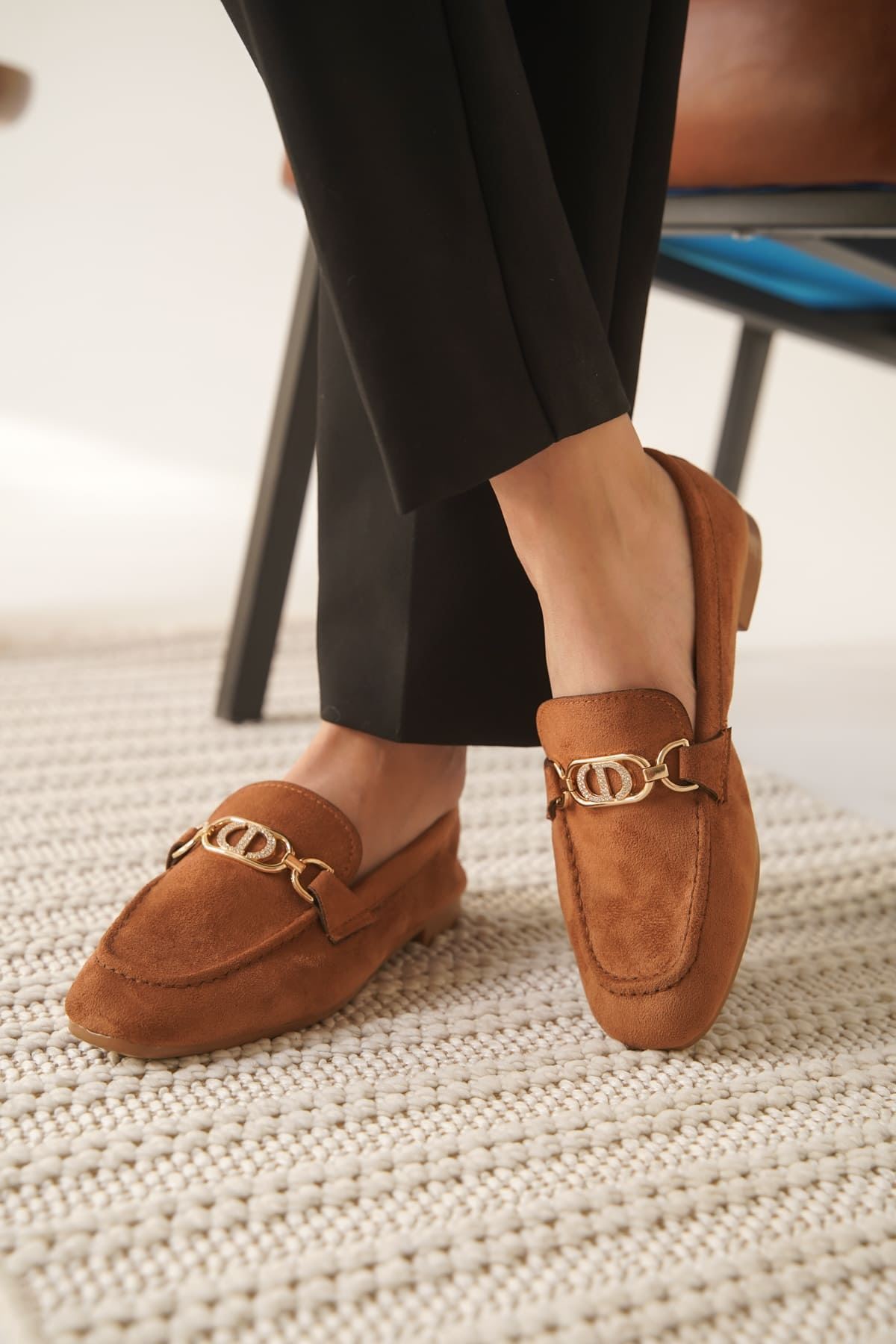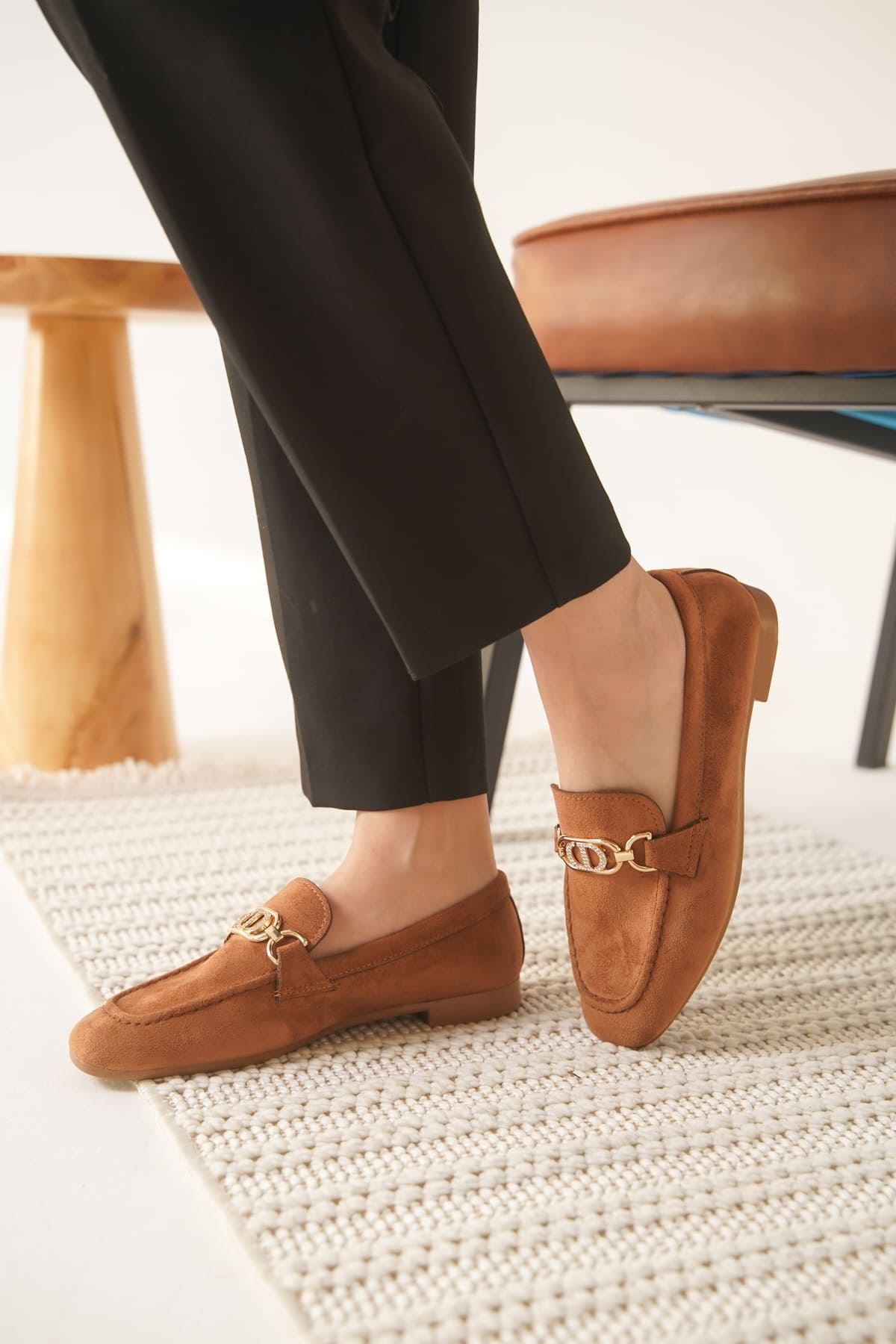 Lara Toka Detaylı Bej Süet Günlük Loafer Ayakkabı