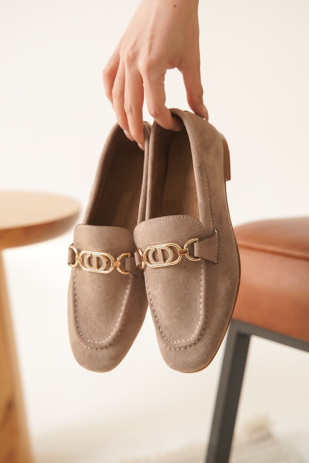 Lara Toka Detaylı Bej Süet Günlük Loafer Ayakkabı