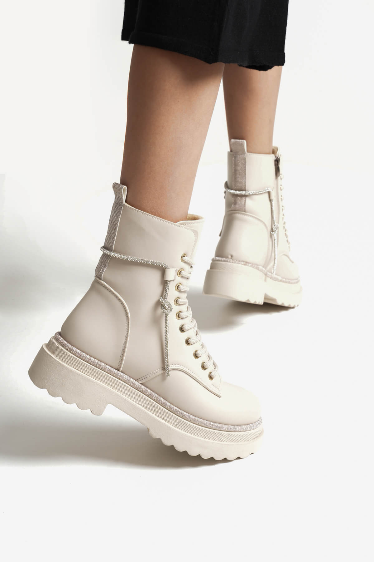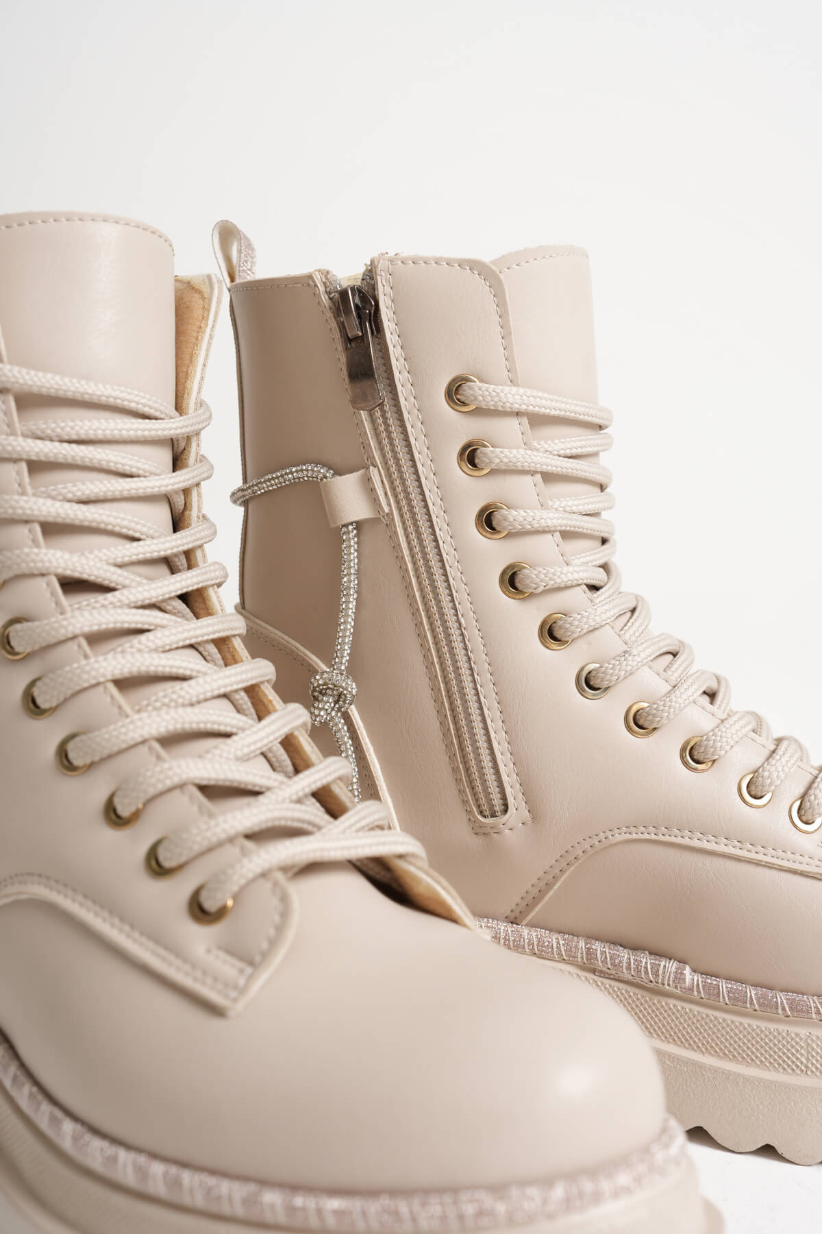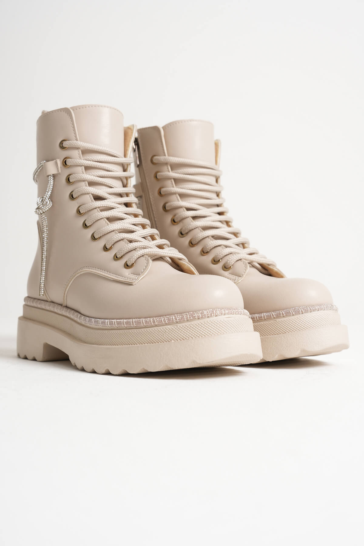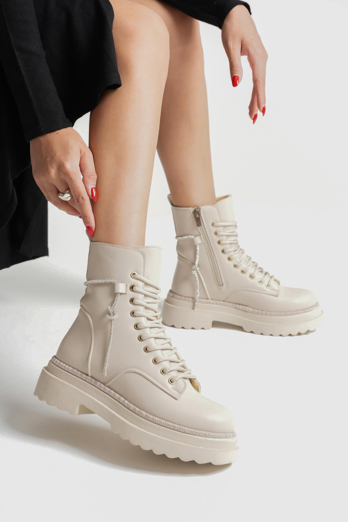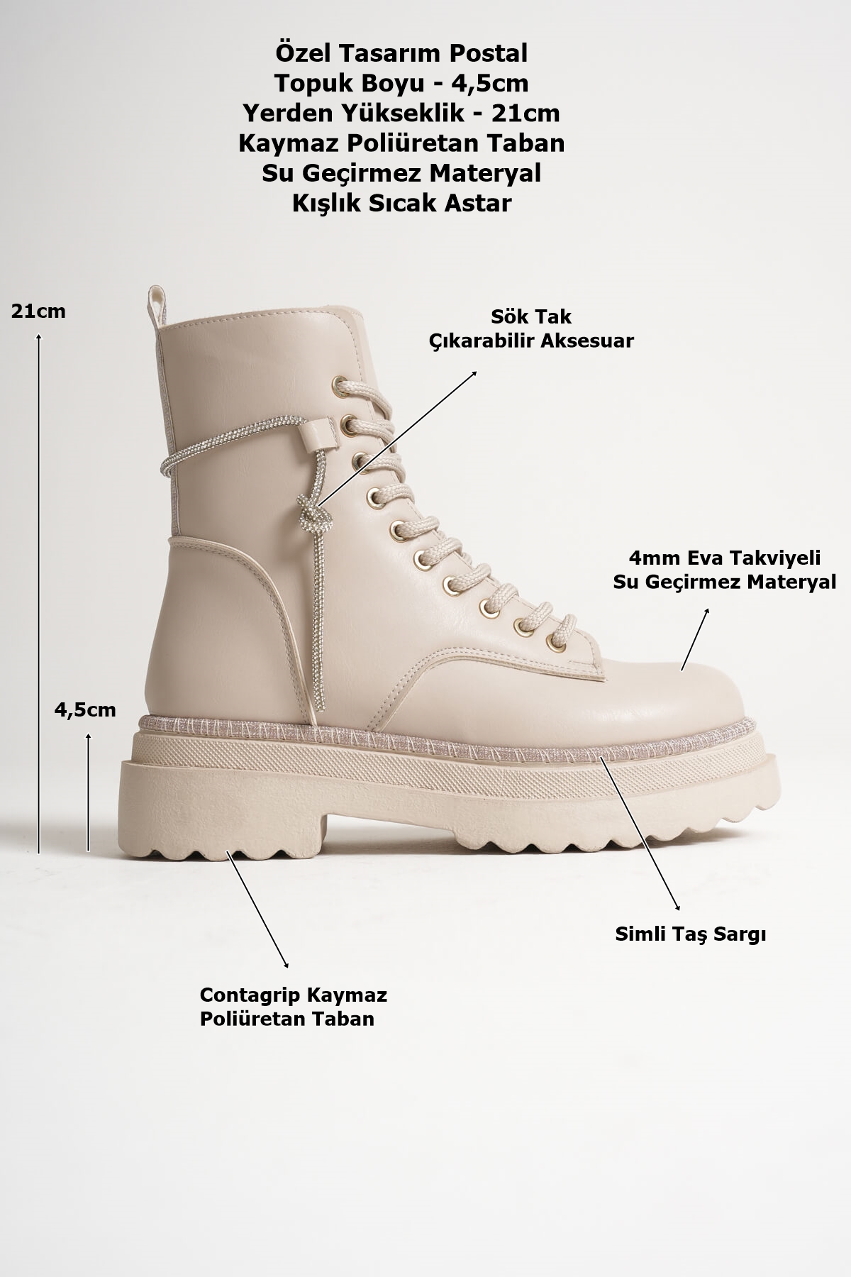 Karma Özel Tasarım Kışlık Bej Kalın Tabanlı Kadın Bot