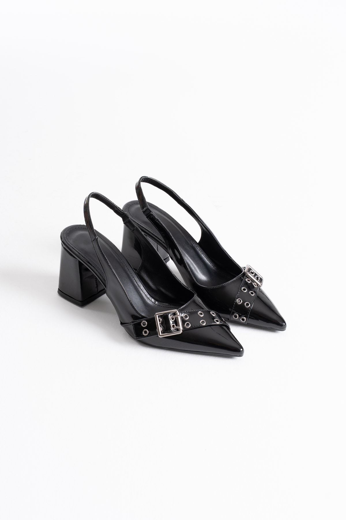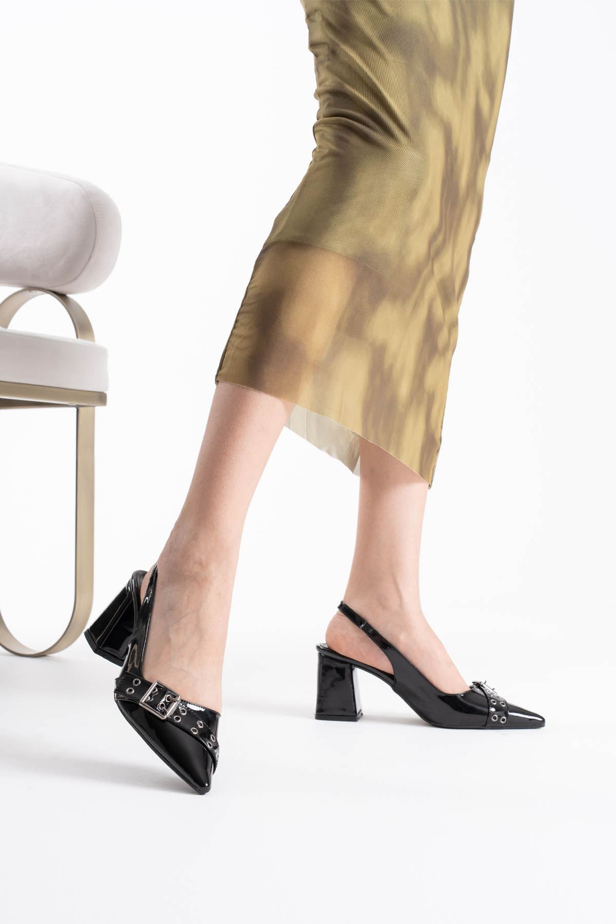 Slay Siyah Cilt Kadın Topuklu Ayakkabı