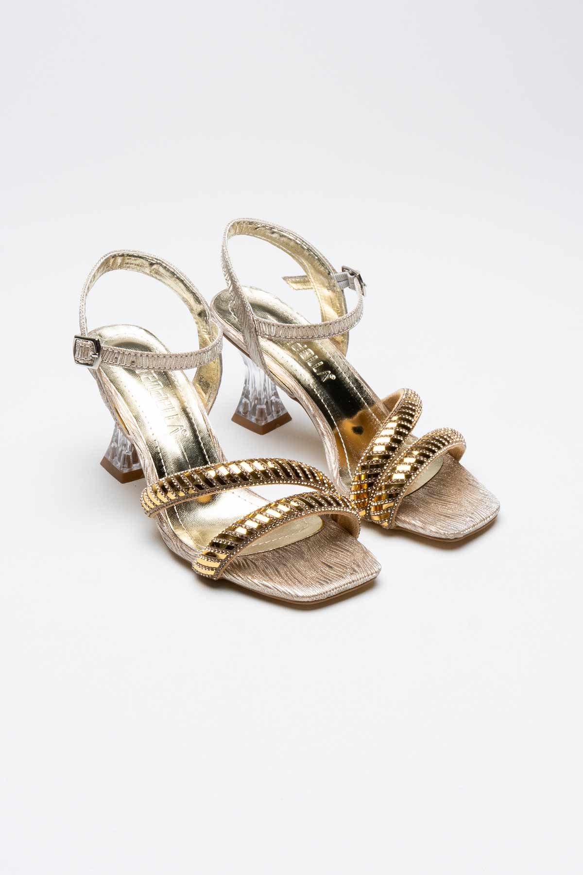Kendy Altın Taşlı Kadın Topuklu Sandalet