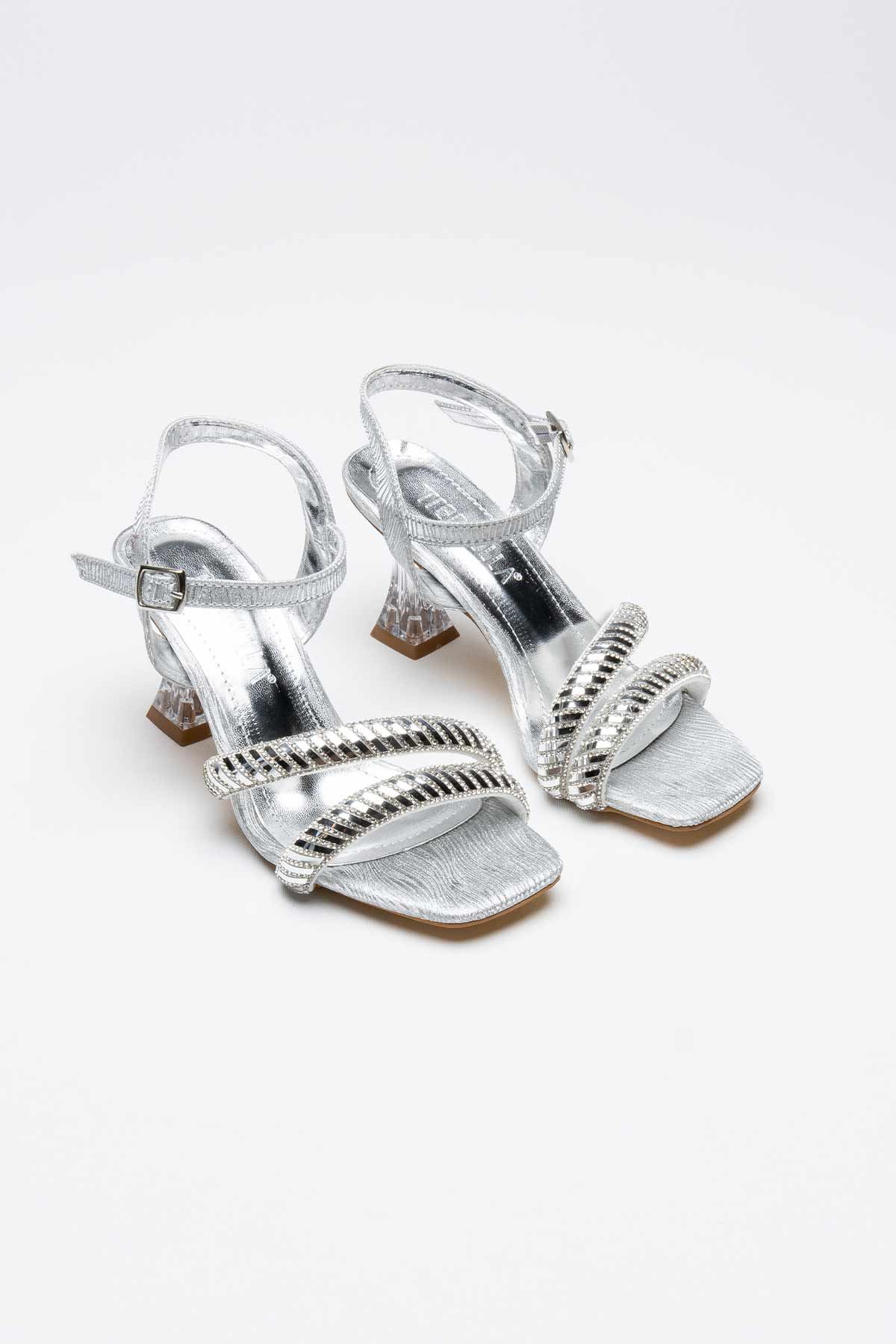 Kendy Gümüş Taşlı Kadın Topuklu Sandalet