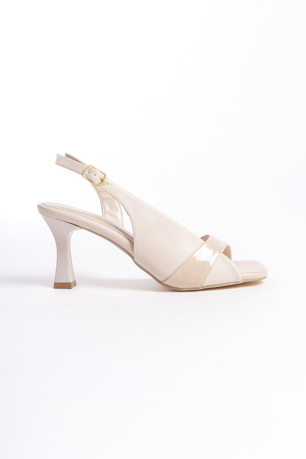 Klein Kadın Bej Rugan Detaylı Topuklu Sandalet
