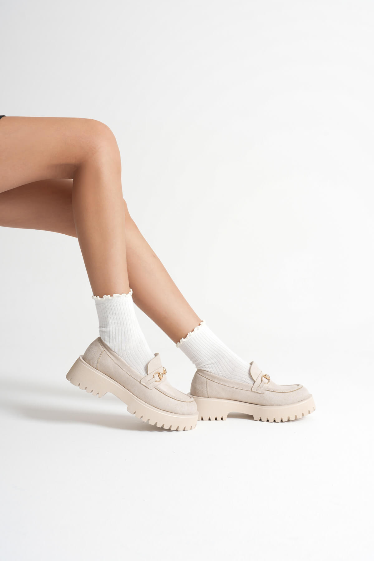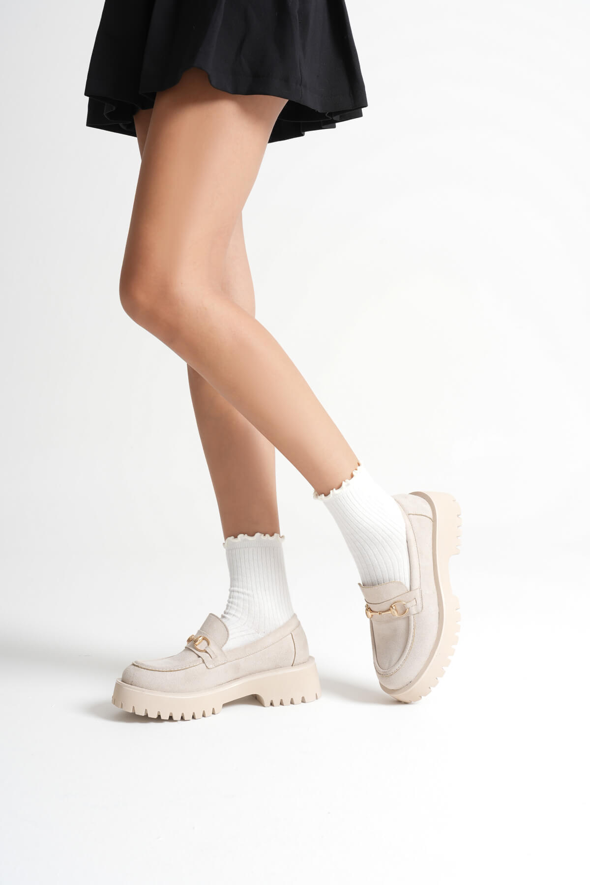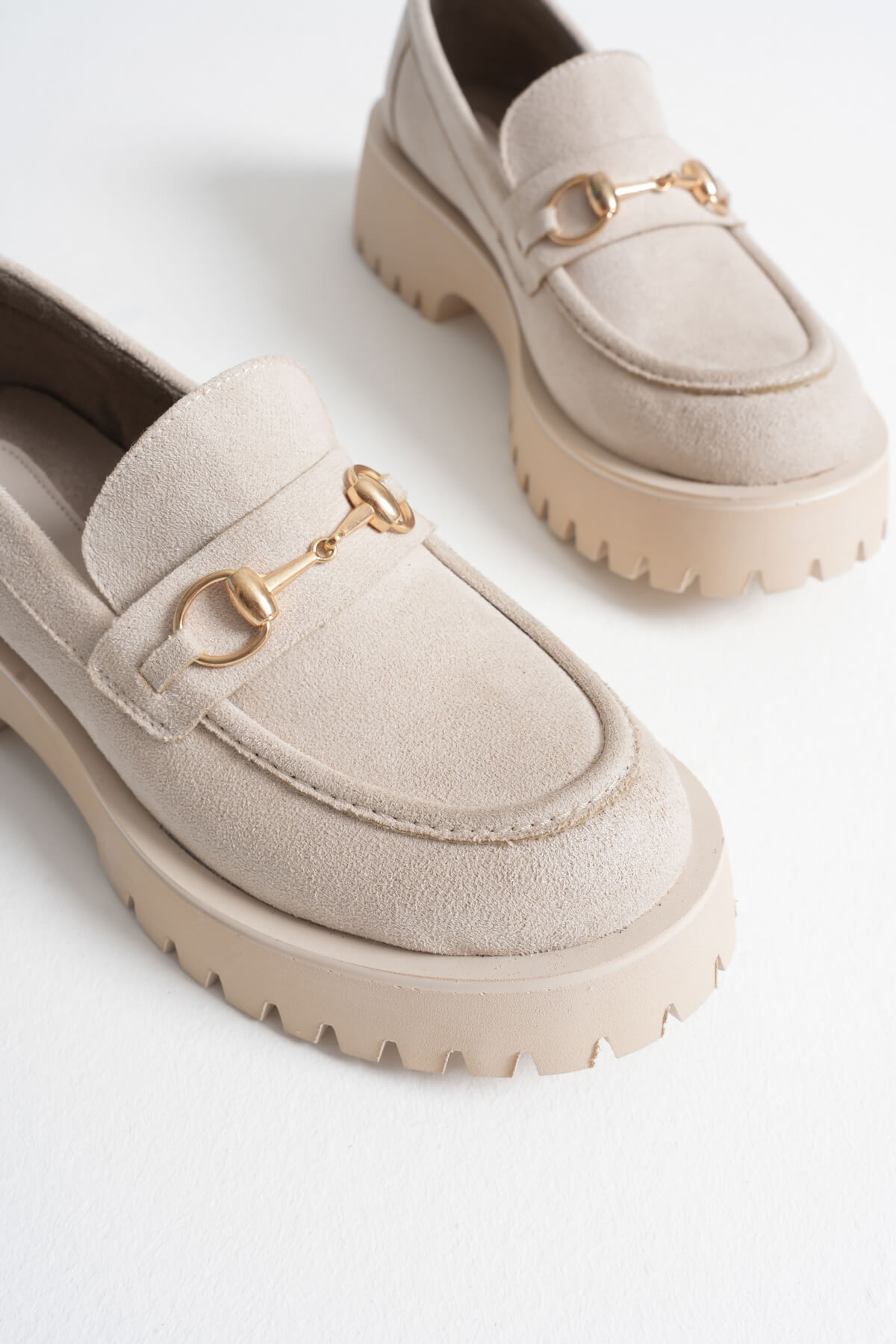 Lara Toka Detaylı Bej Süet Günlük Loafer Ayakkabı