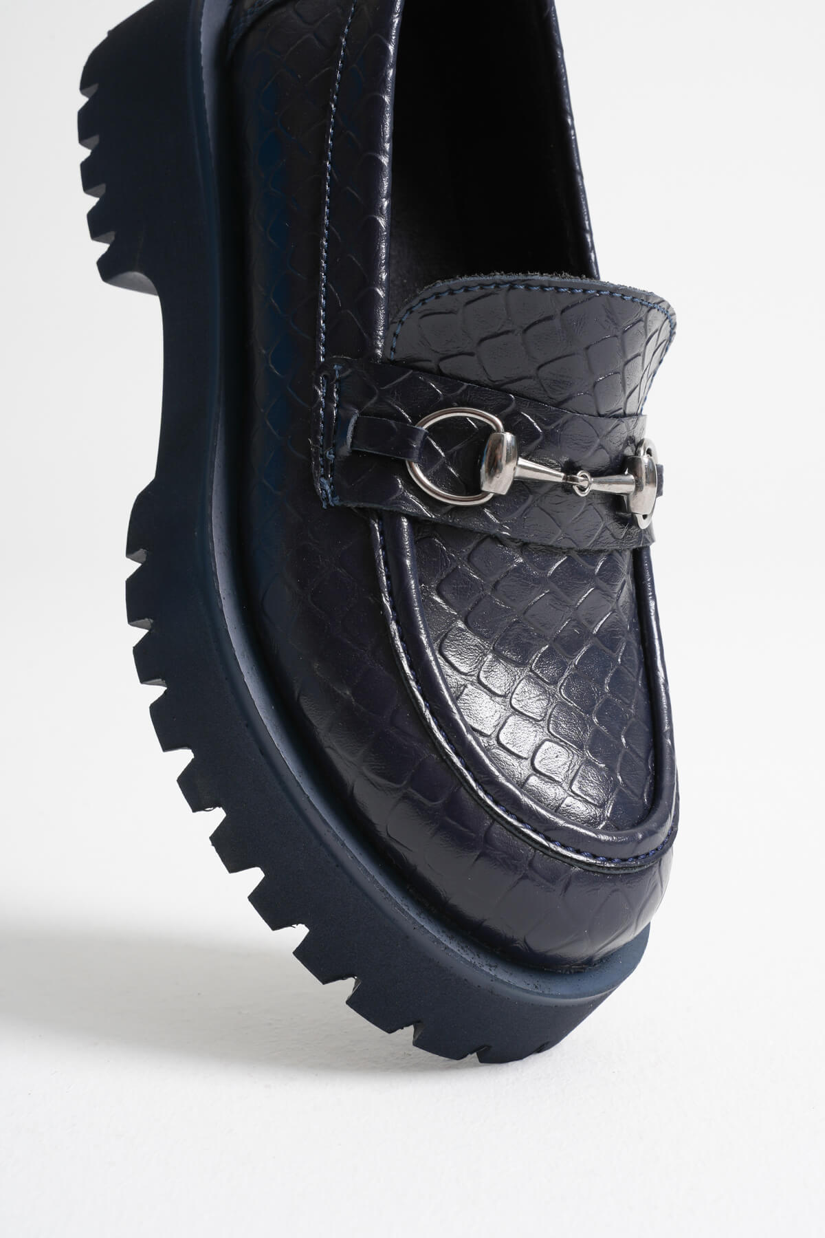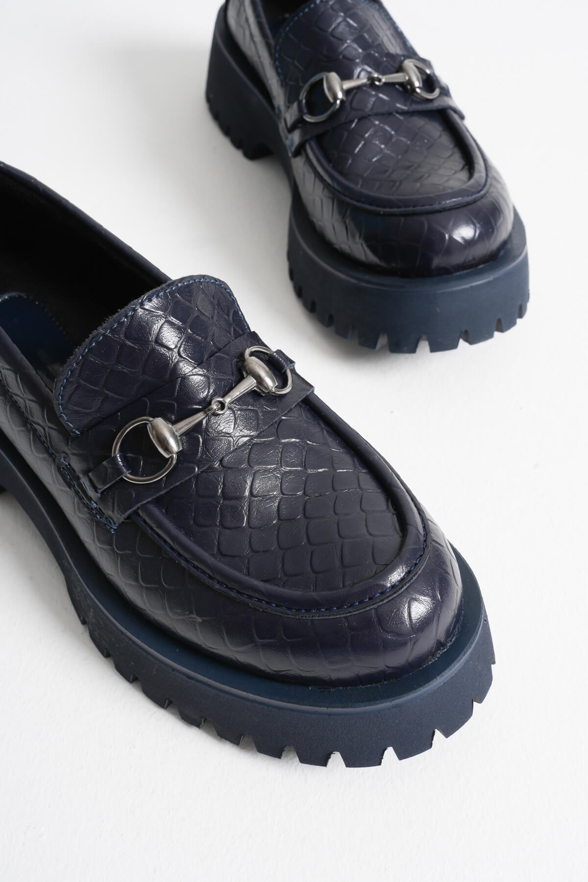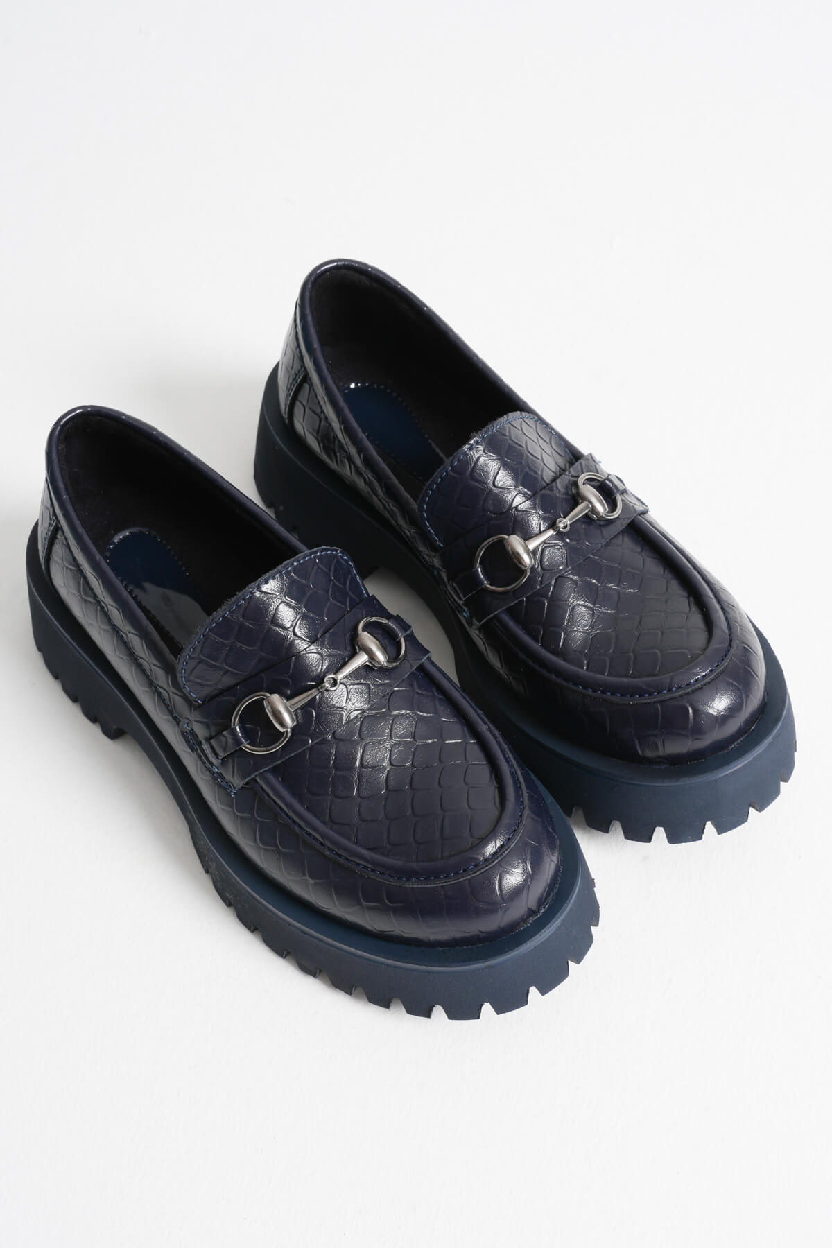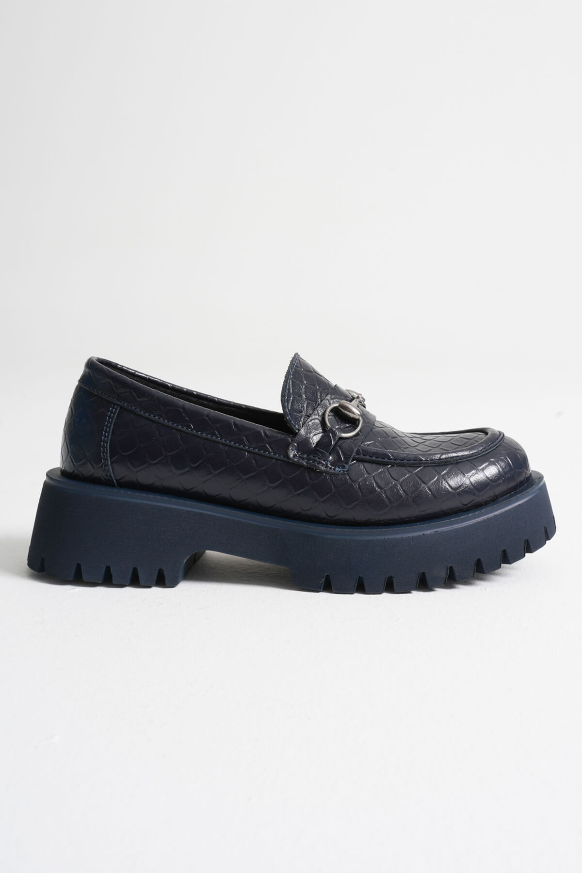 Lara Toka Detaylı Lacivert Kroko Baskılı Günlük Loafer Ayakkabı