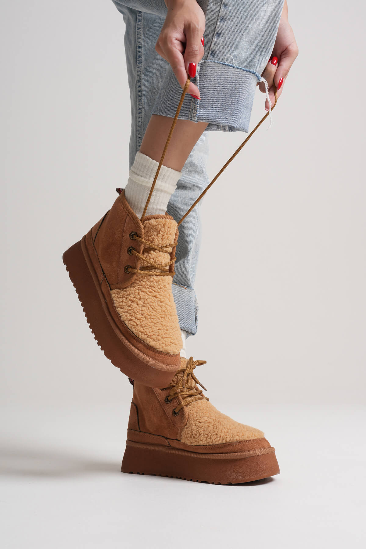 Loana Kadın Kürklü Taba Kışlık Kalın Tabanlı Bot