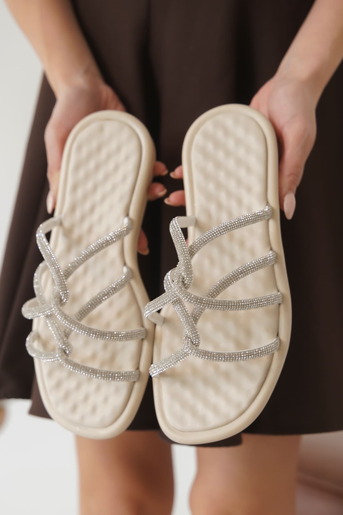 Dennis Kadın Bej Taş İşlemeli Terlik