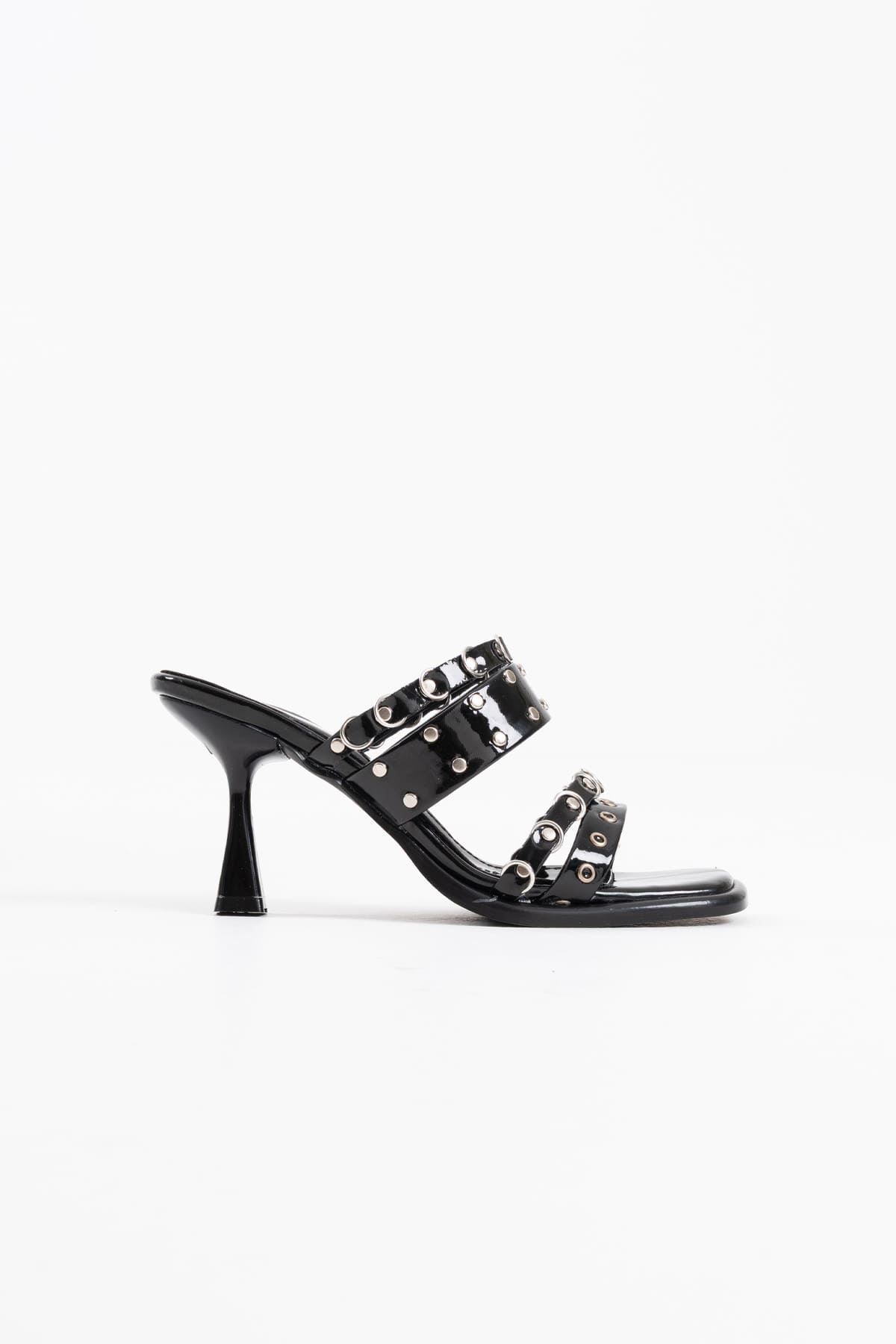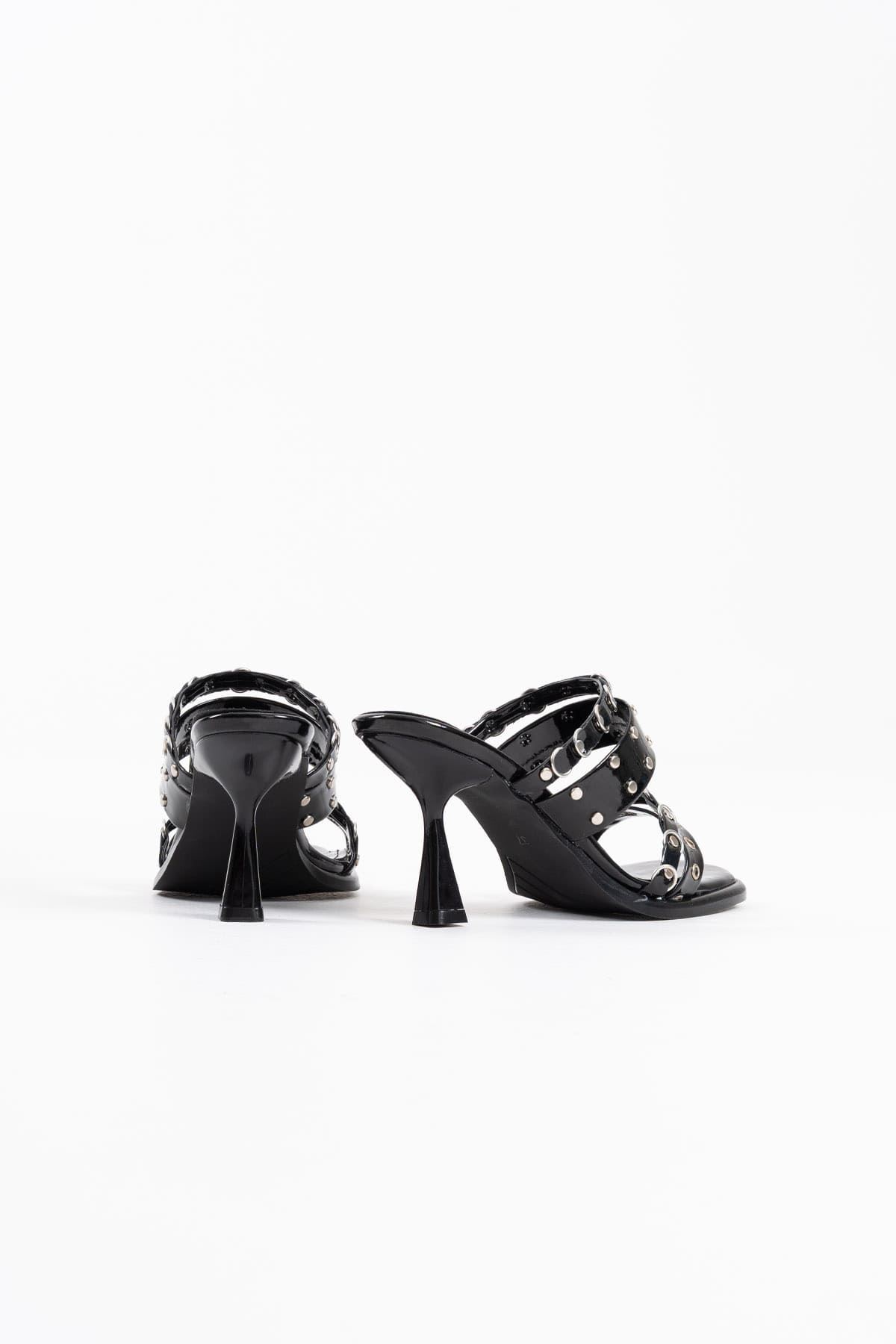 Rossie Kadın Siyah Rugan Topuklu Sandalet