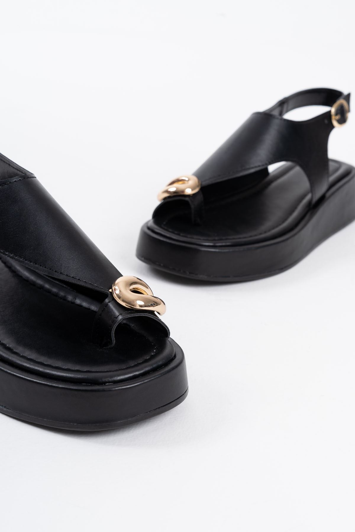 Milena Siyah Cilt Toka Detaylı Sandalet