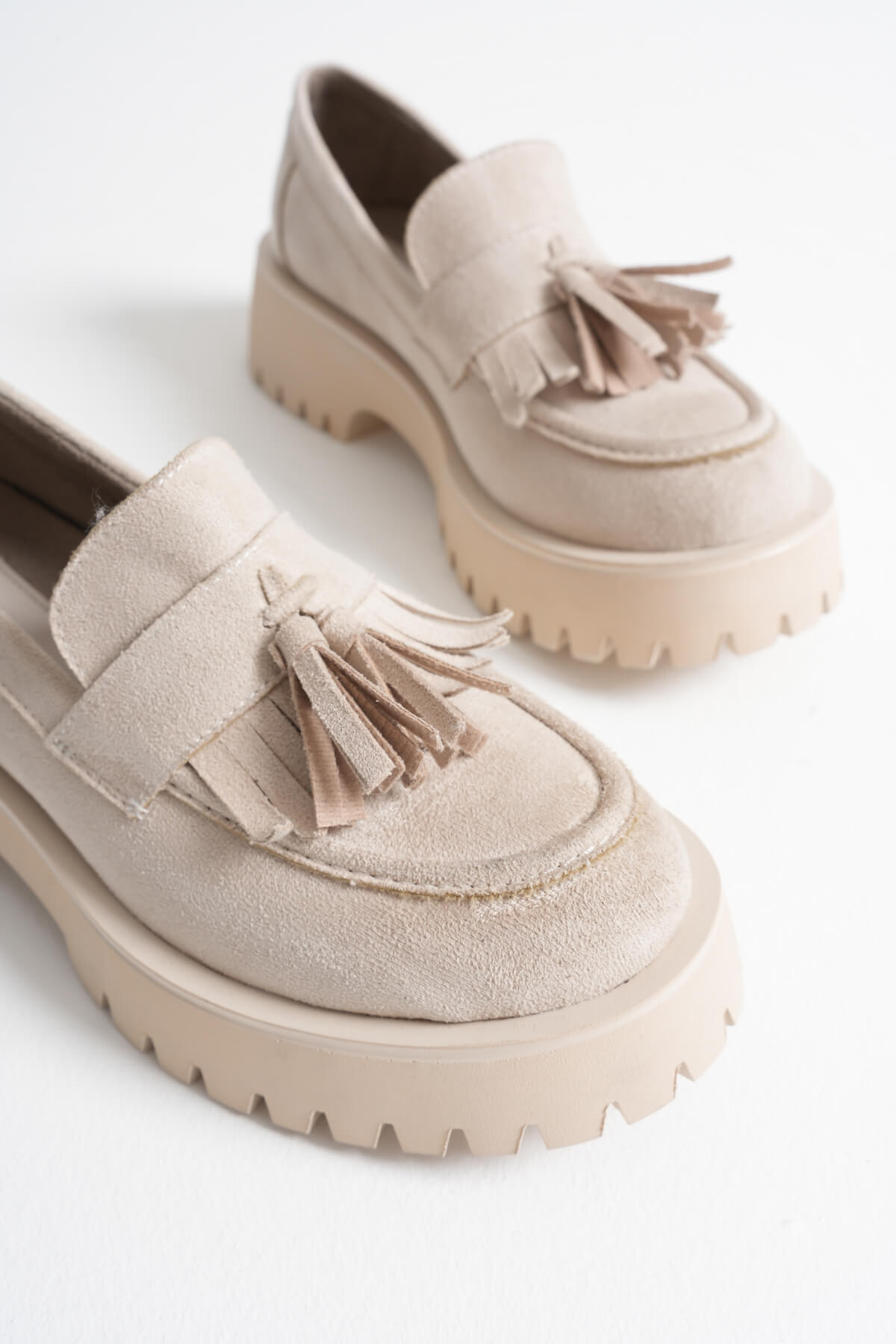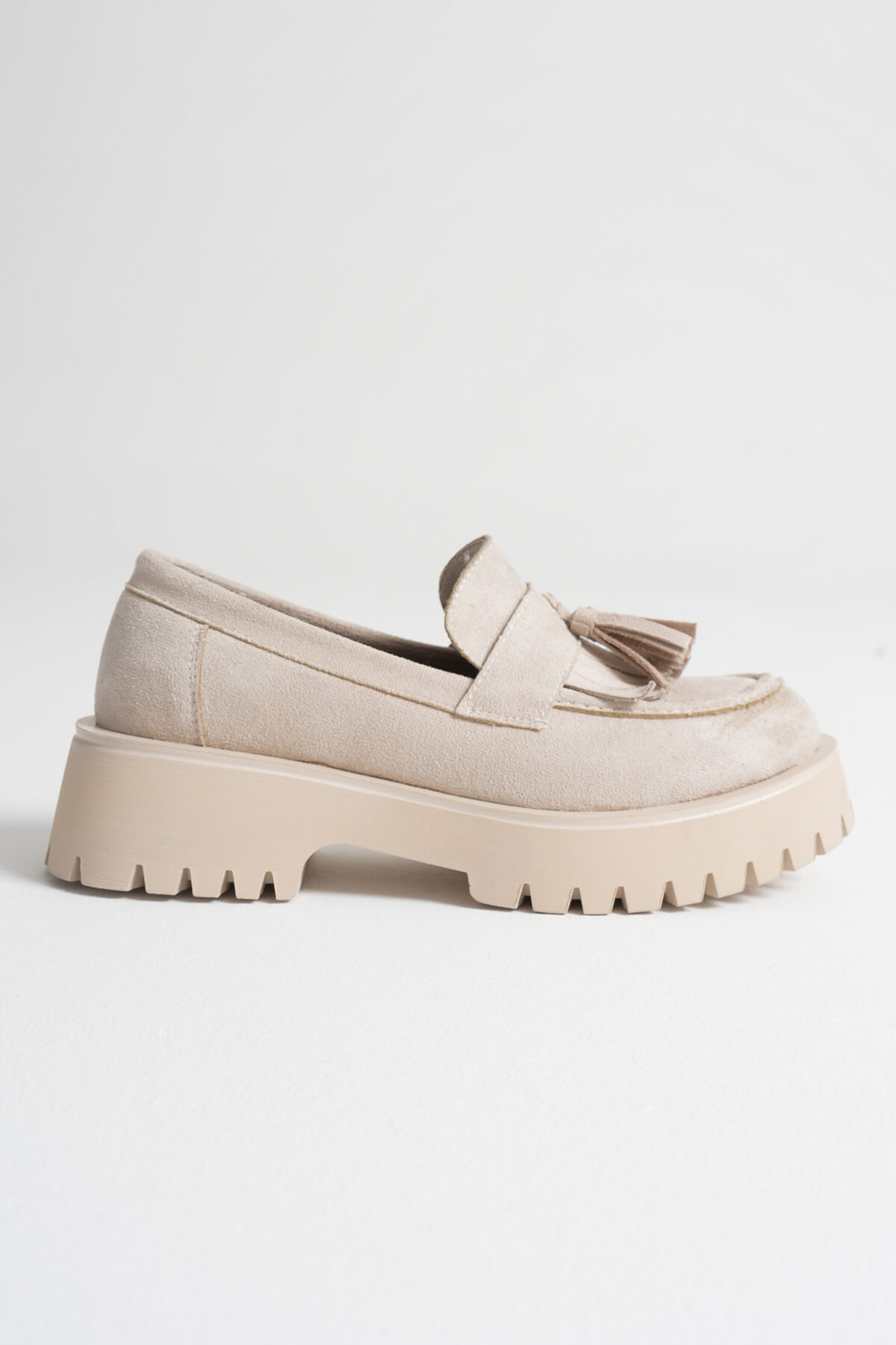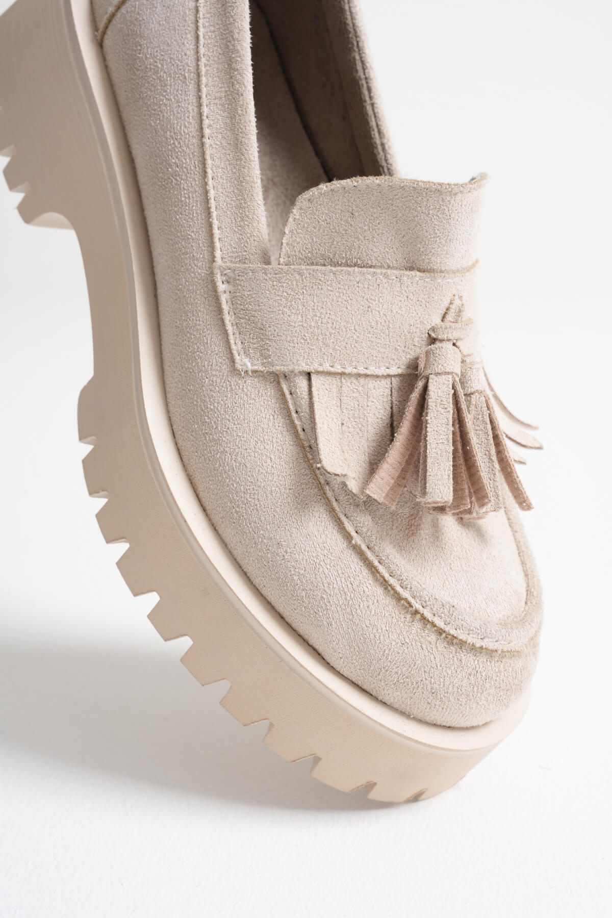 Lara Toka Detaylı Bej Süet Günlük Loafer Ayakkabı