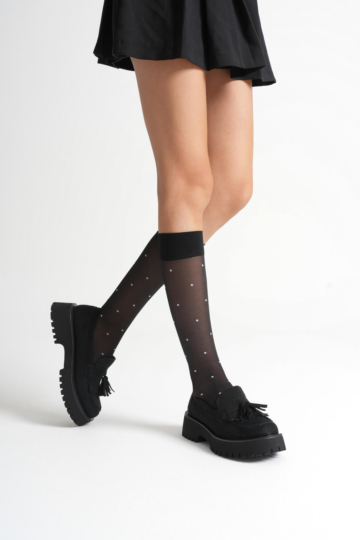 Noir Kadın Günlük Siyah Süet Loafer Ayakkabı