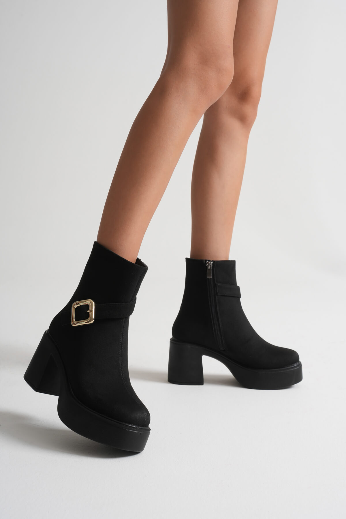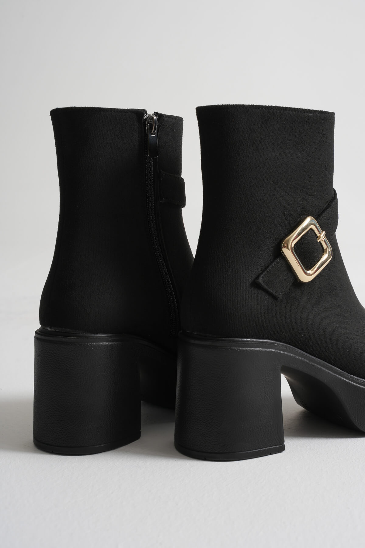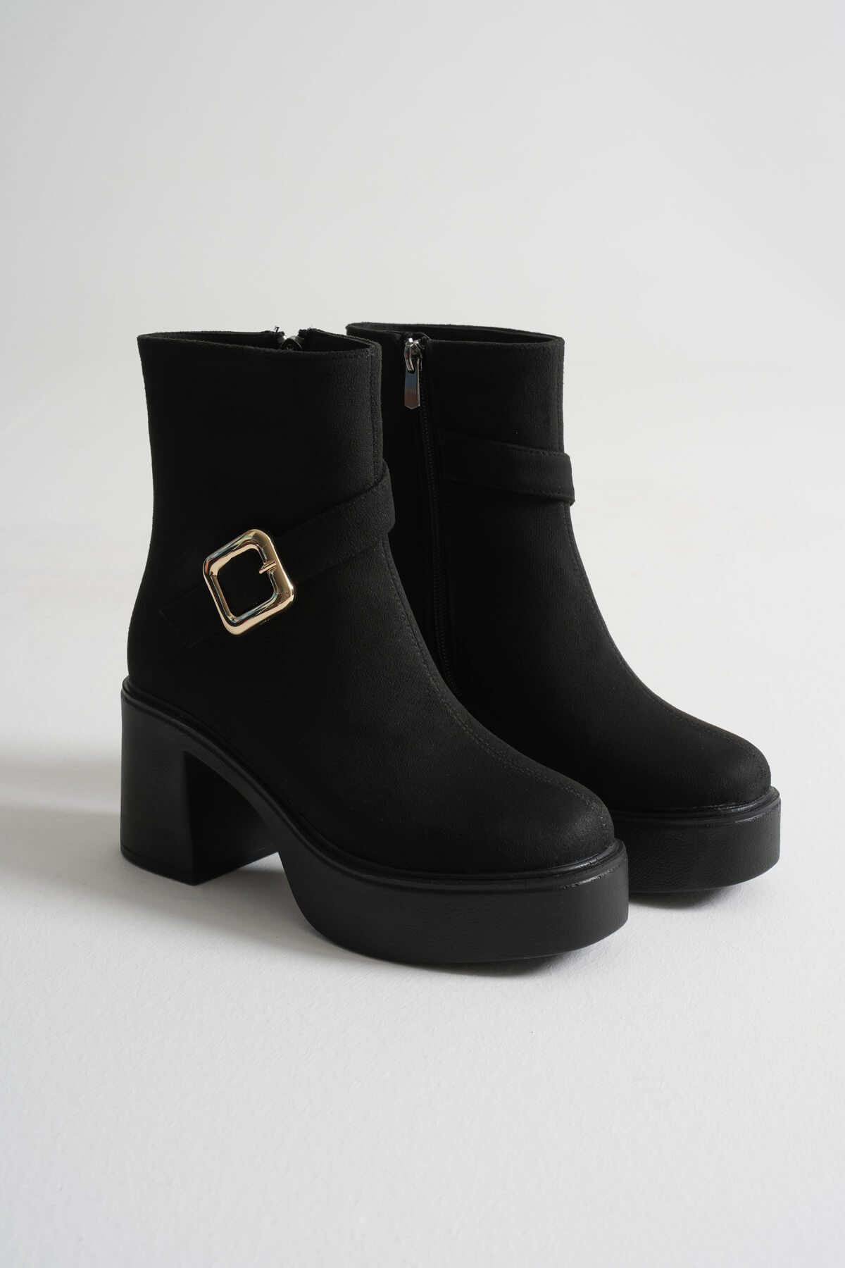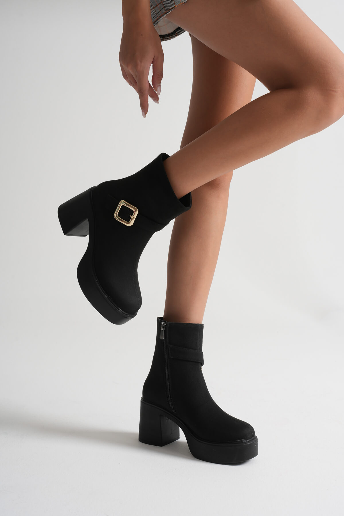 Mona Kadın Siyah Süet Tokalı Topuklu Bot