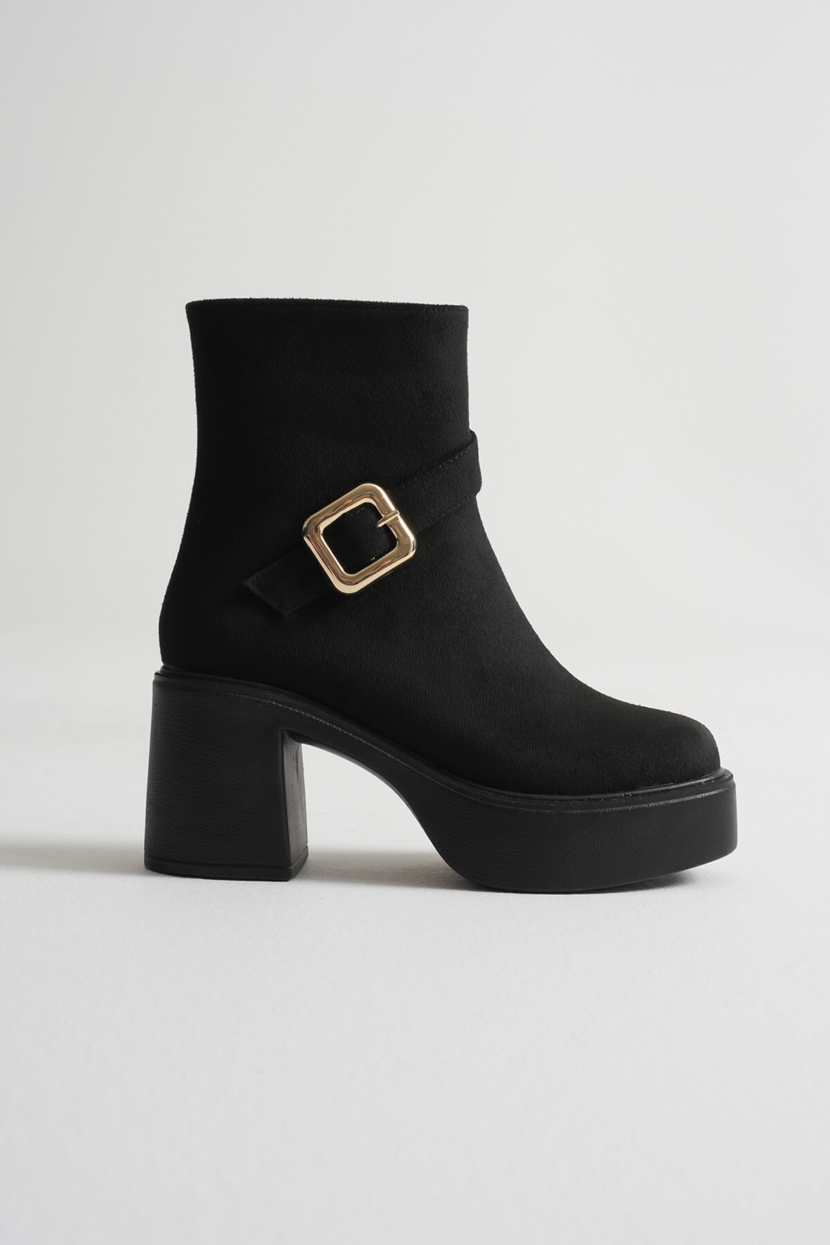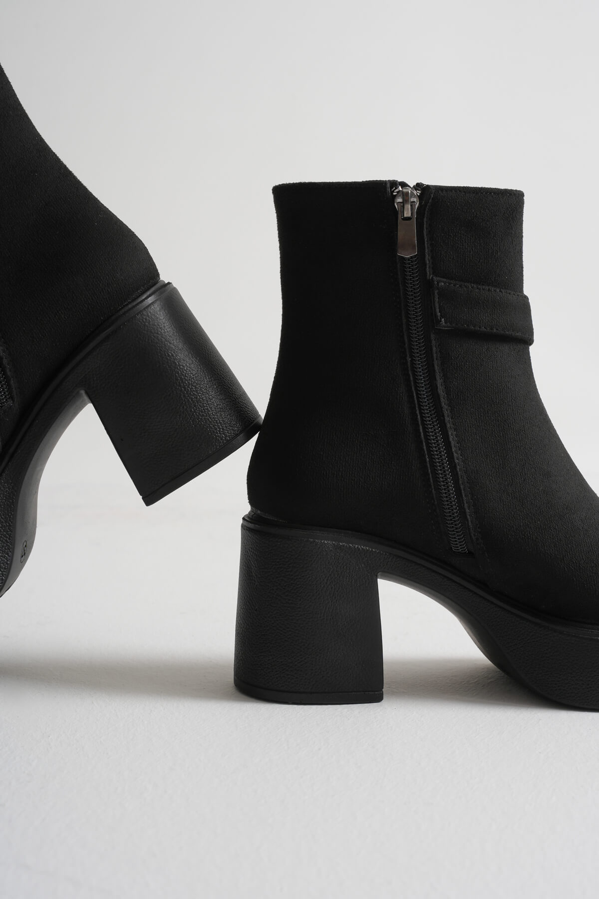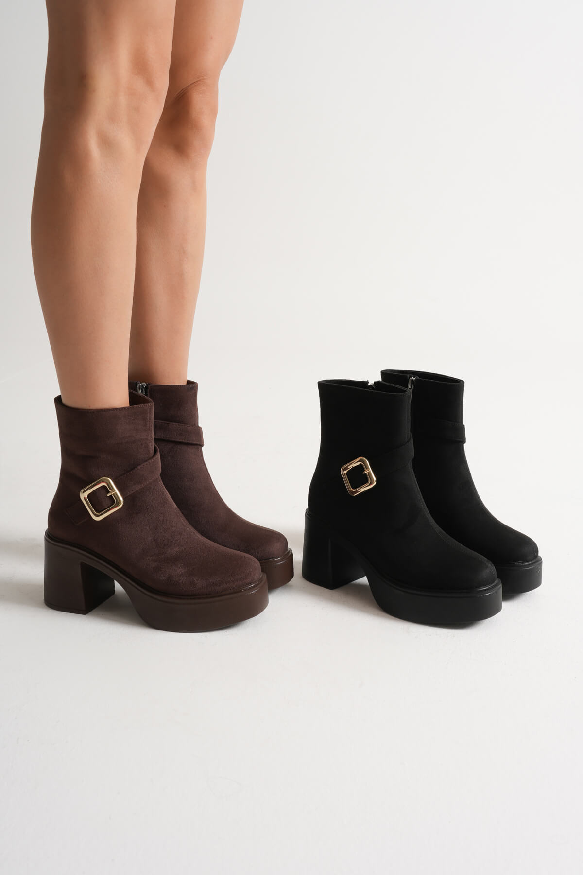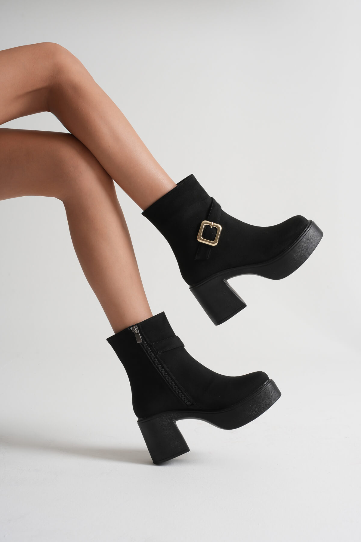 Mona Kadın Siyah Süet Tokalı Topuklu Bot
